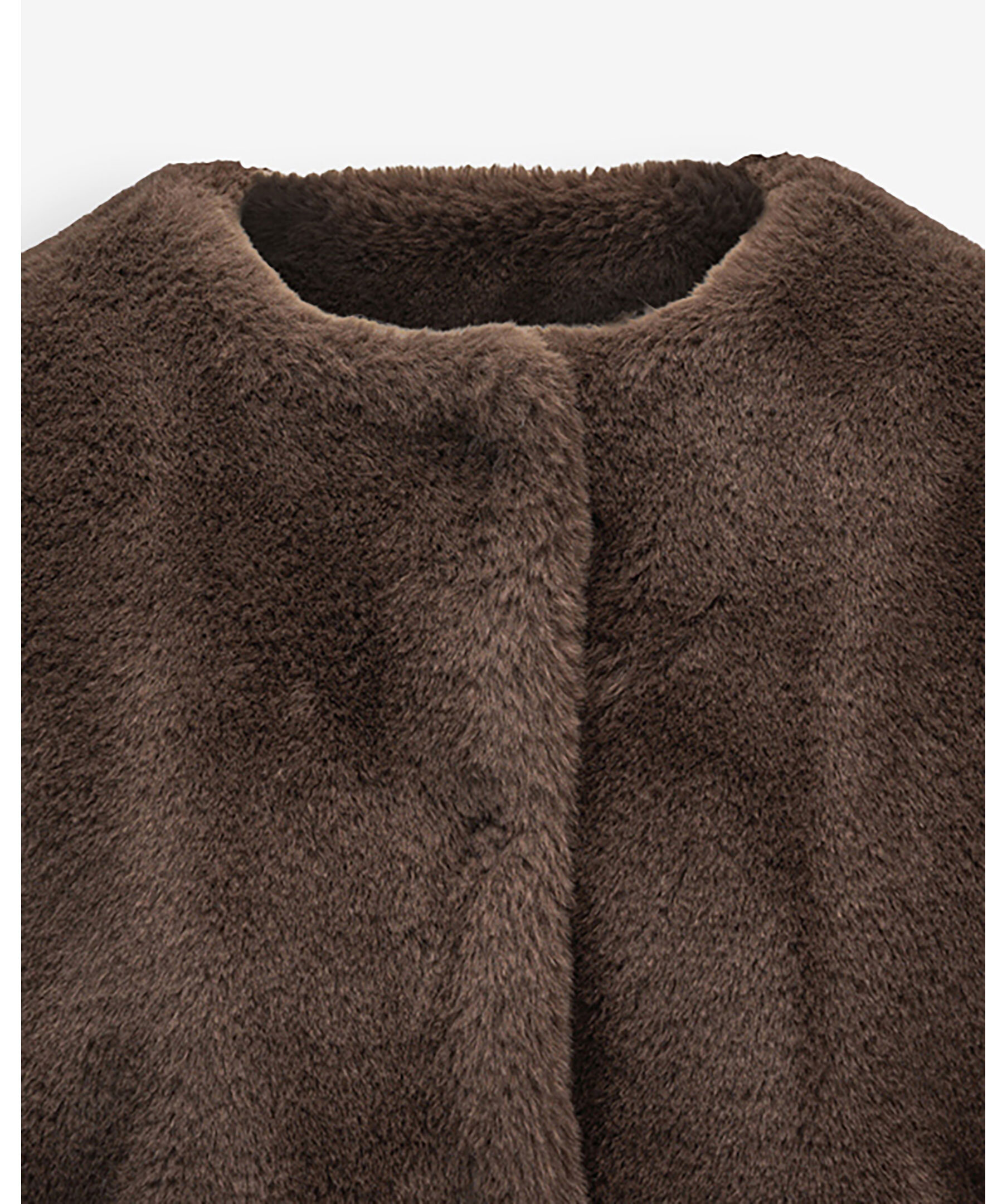 Mörkbrun, kort fuskpälsjacka från ella&il. Jackan har dold tryckknäppsstängning framtill och fickor i sidorna. Perfekt jacka att styla upp och ner beroende på tillfälle. Tillverkad i polyester.