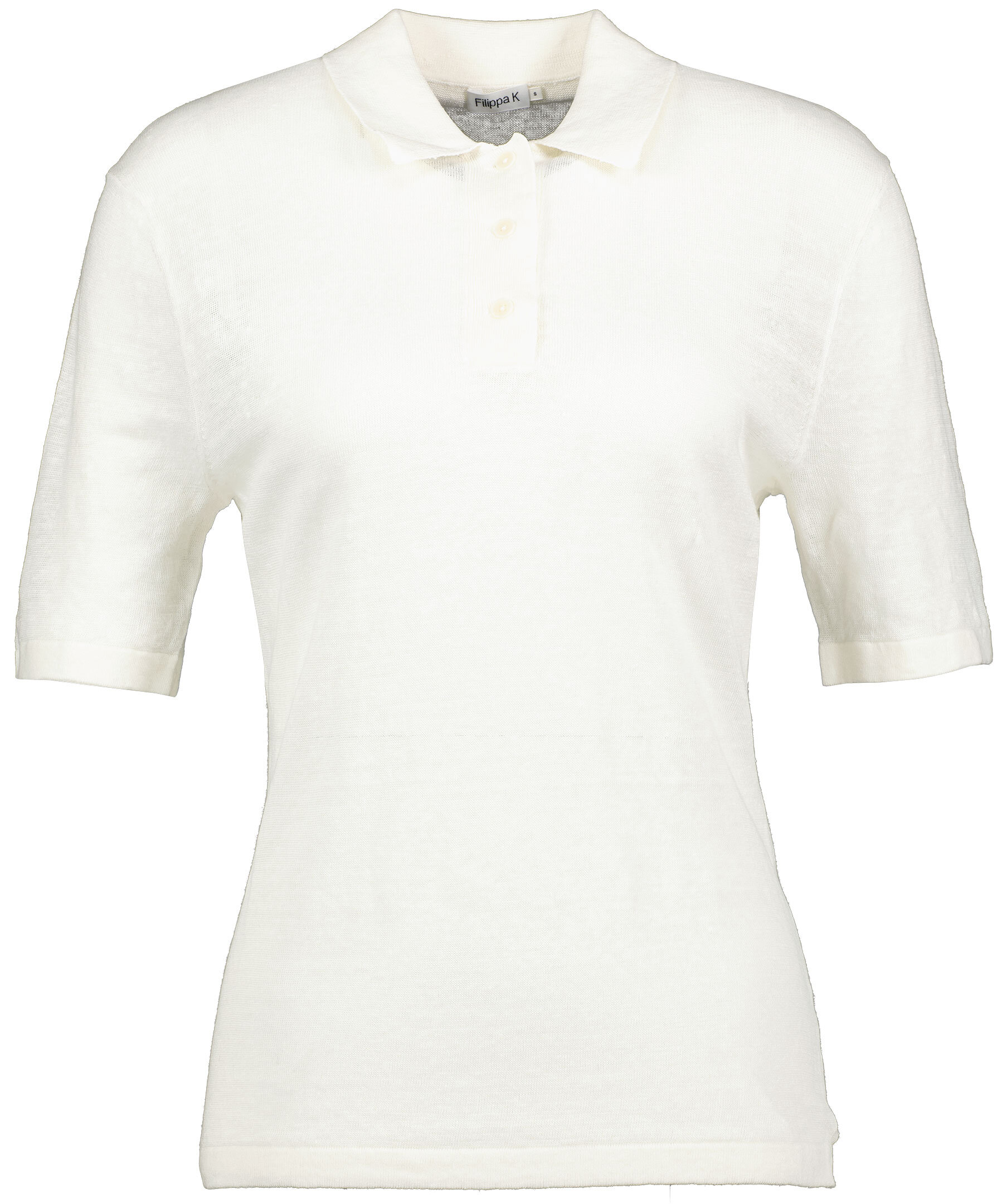 Tunn, vit pikétröja i linne från Filippa K. Tillverkad i 100% linne. Klassisk krage, ljusa knappar, korta ärmar.