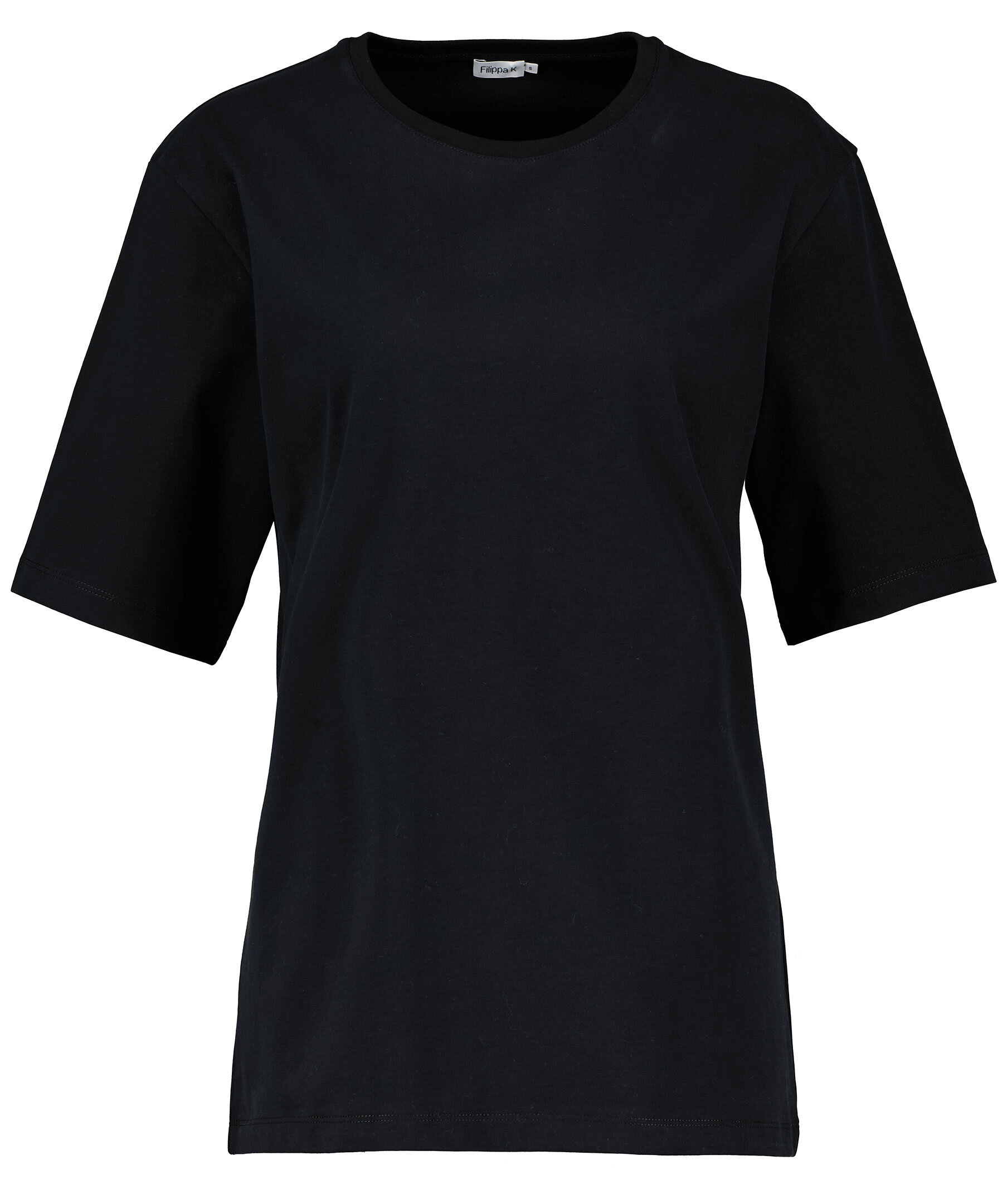 Svart t-shirt i oversize-modell med långa t-shirtärmar från Filippa K. Tillverkad i borstad, mjuk bomull. Rund, enkelribbad halsringning.