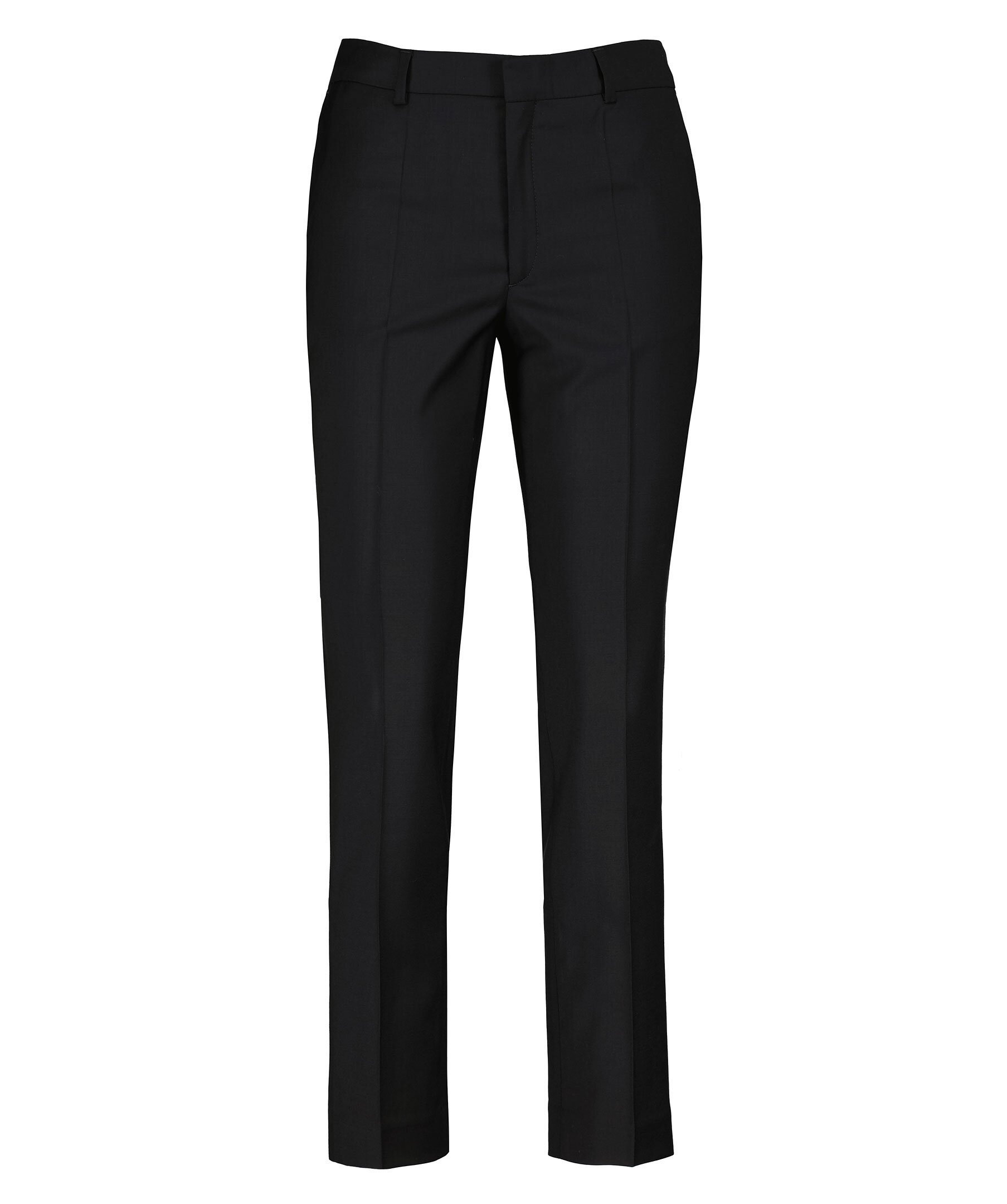 Svarta, croppade kostymbyxor från Filippa K. Rak passform med medelhög midja, croppad längd och avsmalnande byxben. Gylf med dragkedja och hyska och hake fram. Pressade veck fram och bak. Bälteshällor i midjan. Två sidfickor samt två passpoalfickor. Tillverkade i en stretchig ullblandning.