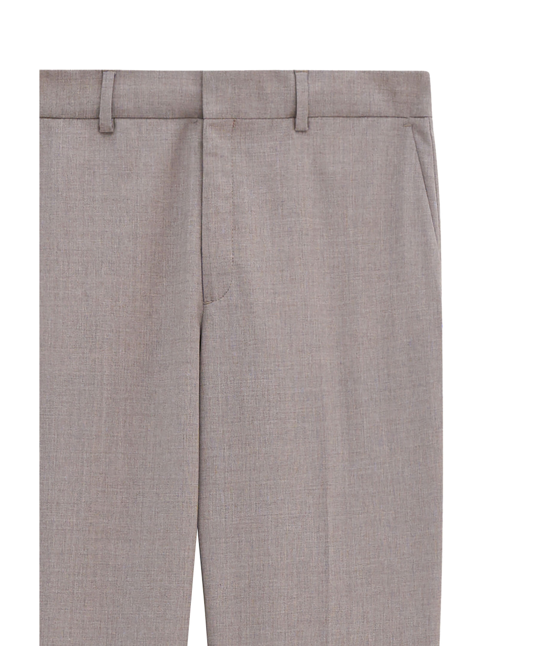 Khakifärgade croppade kostymbyxor från Filippa K. Rak passform med medelhög midja, croppad längd och avsmalnande byxben. Gylf med dragkedja och hyska och hake fram. Pressade veck fram och bak. Bälteshällor i midjan. Två sidfickor samt två passpoalfickor. Tillverkade i en stretchig ullblandning.