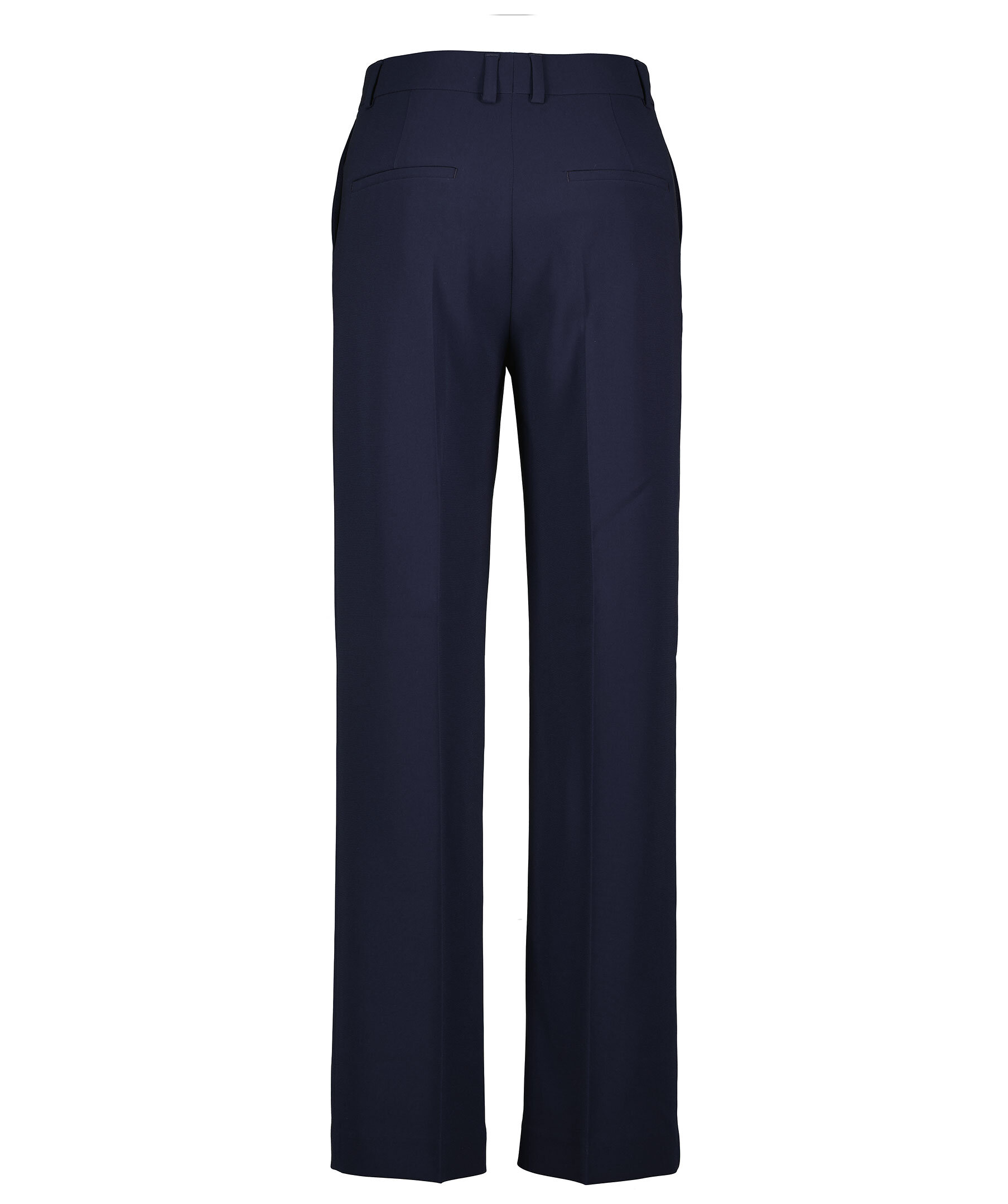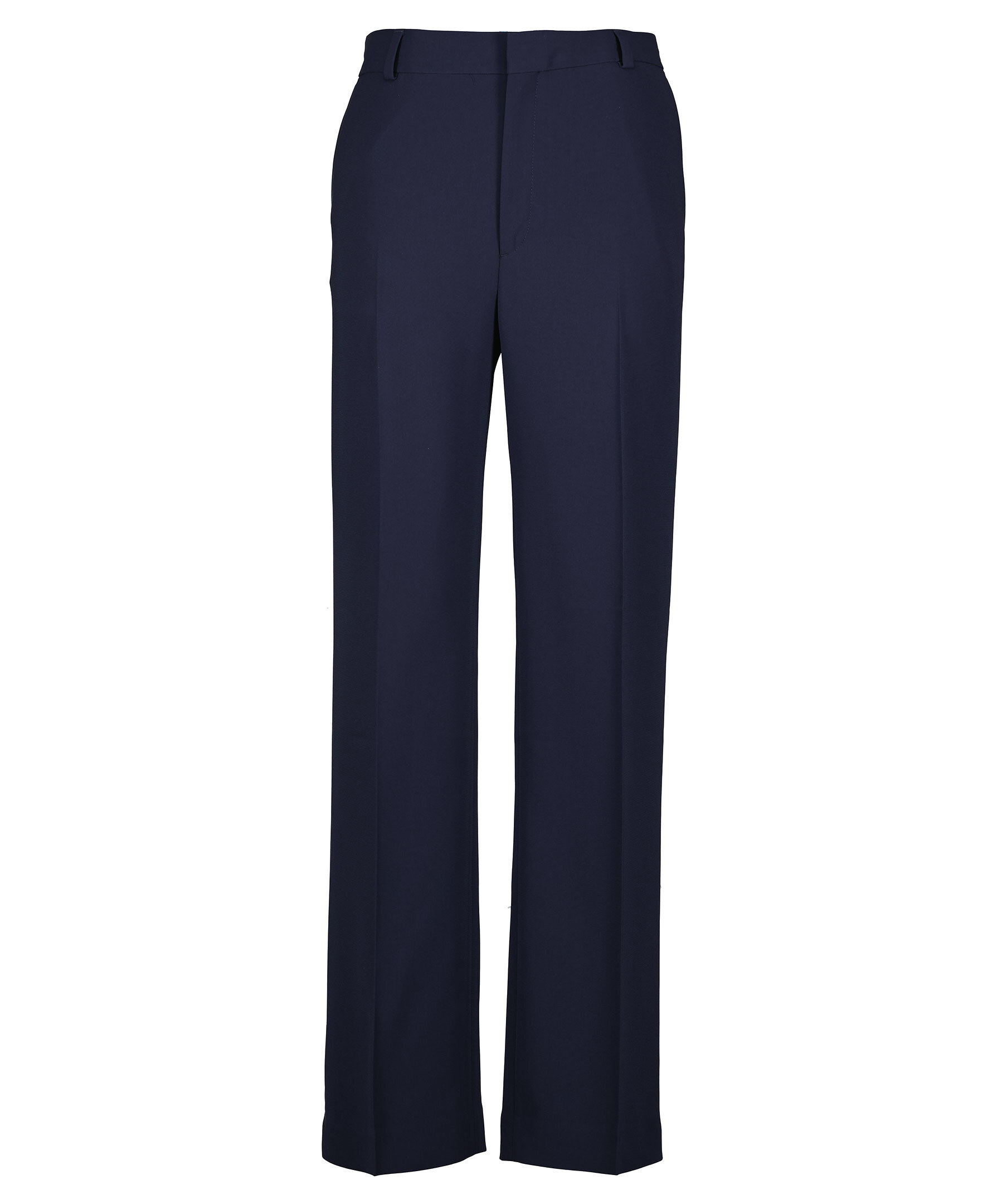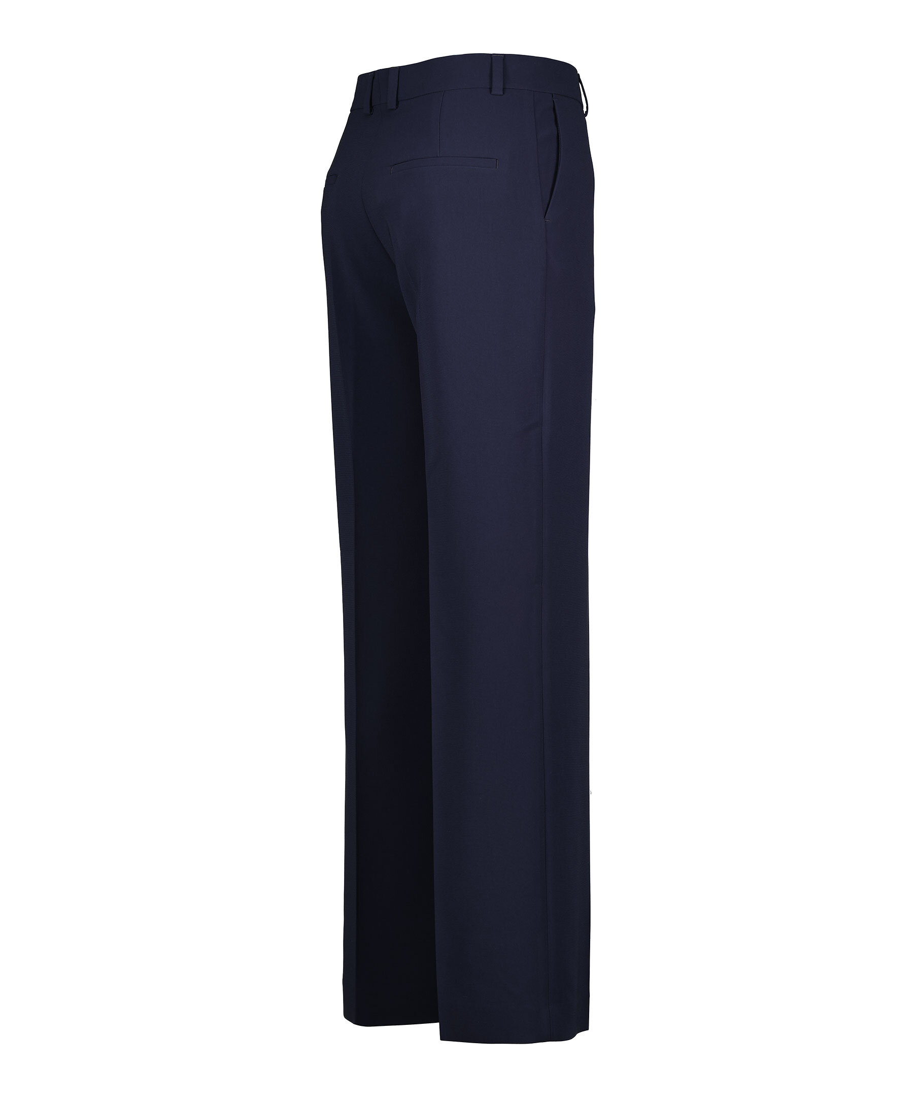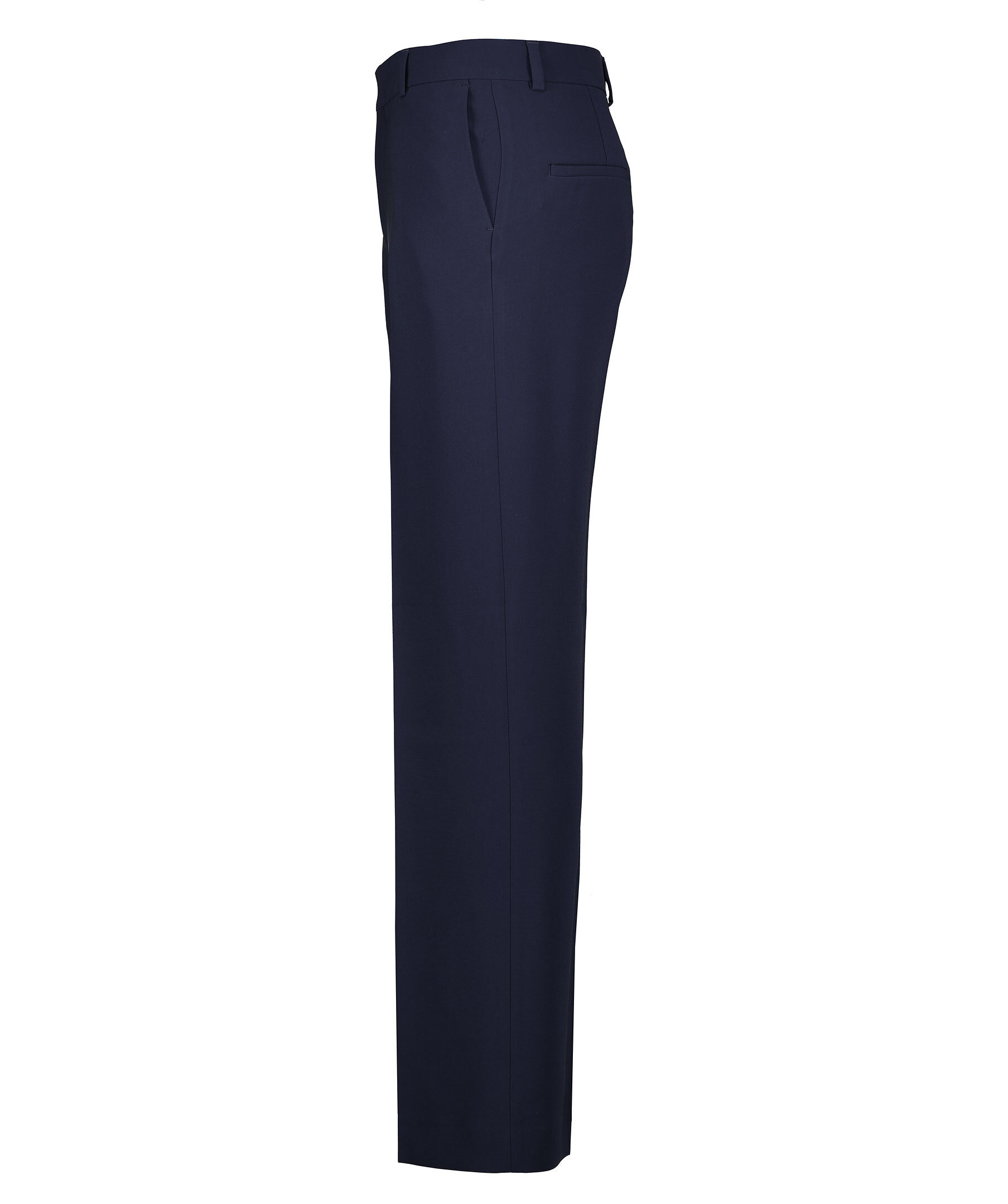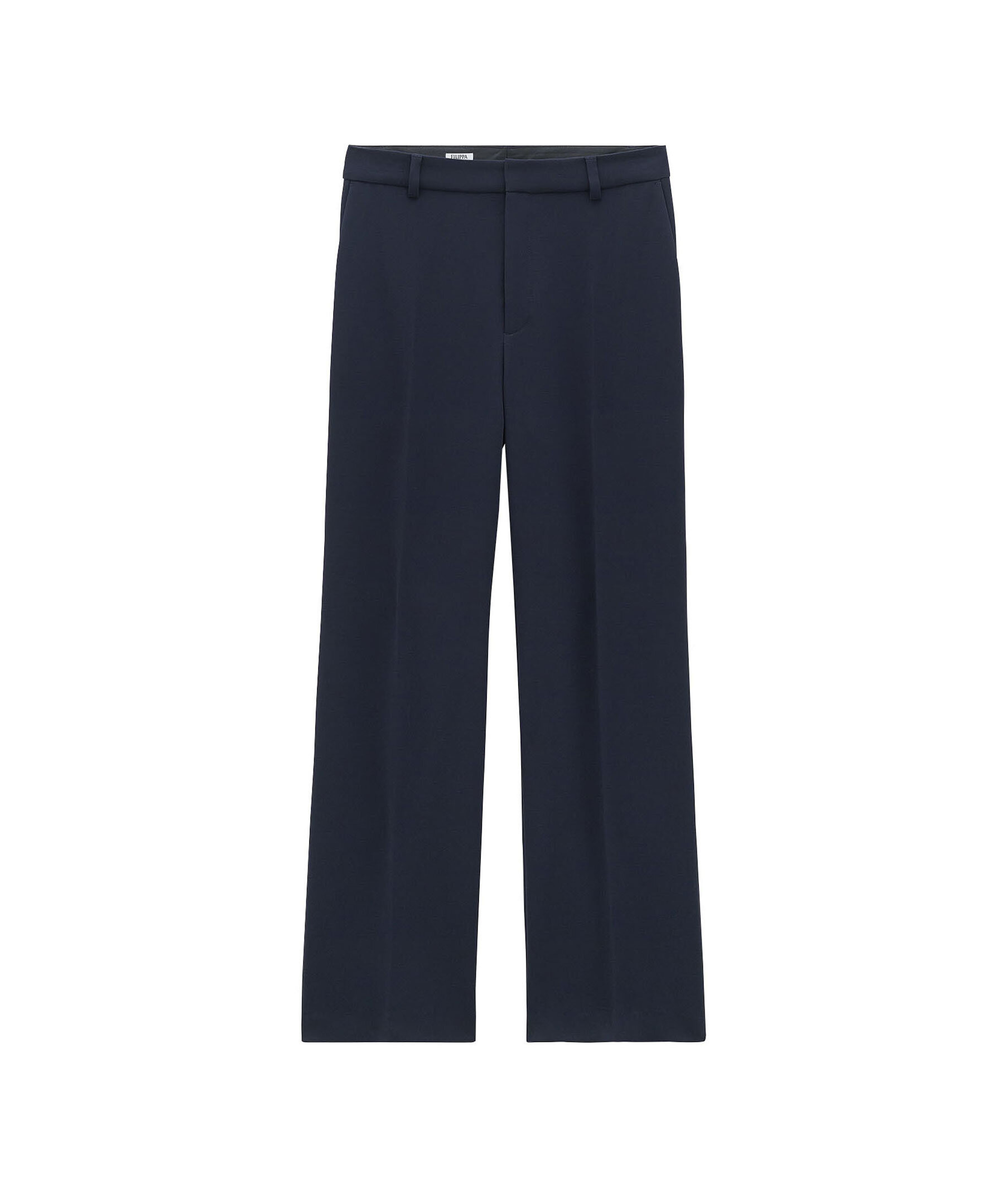 Mörkblåa kostymbyxor från Filippa K. Låg midja med extra lång benlängd och en avslappnad passform. Blir varken skrynkliga eller statiska. Pressade veck fram och bak. Bälteshällor i midjan. Två sidfickor samt två passpoalfickor bak. Något lägre gren, välj en storlek mindre för att få en passform med hög midja. Tillverkade i en polyesterblandning.