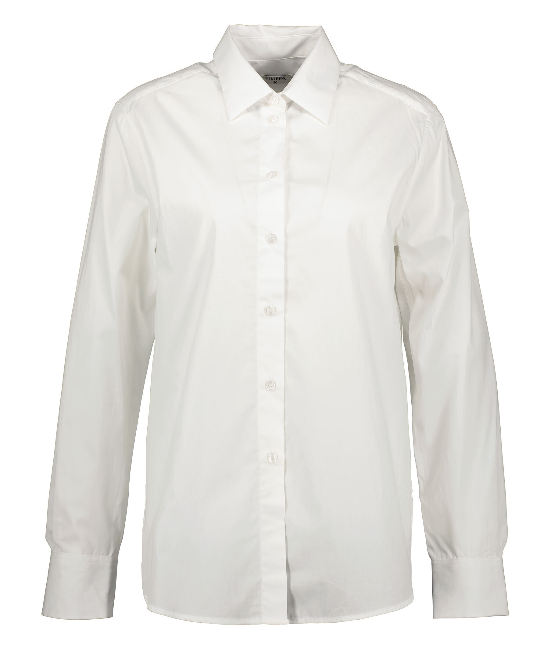 Vit skjorta i ekologisk bomullspoplin från Filippa K. Stängs med knappar framtill och har ok baktill.