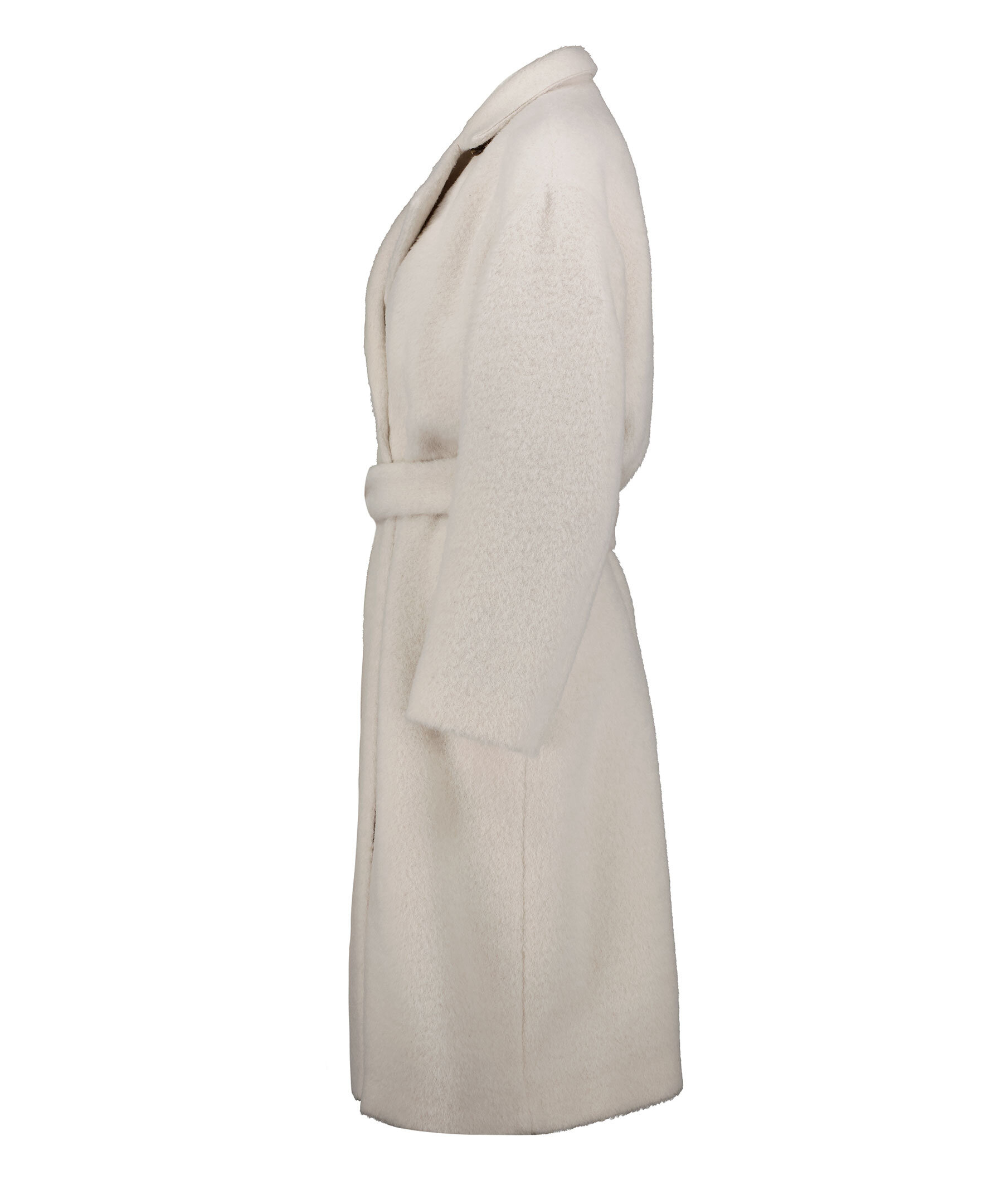 Gråvit kappa från Filippa K. Stängs med knappar och skärp. Tillverkad i ull och alpackablandning. Kappan har en ledig passform och droppad axelsöm. Kappan är knälång. Två fickor framtill.