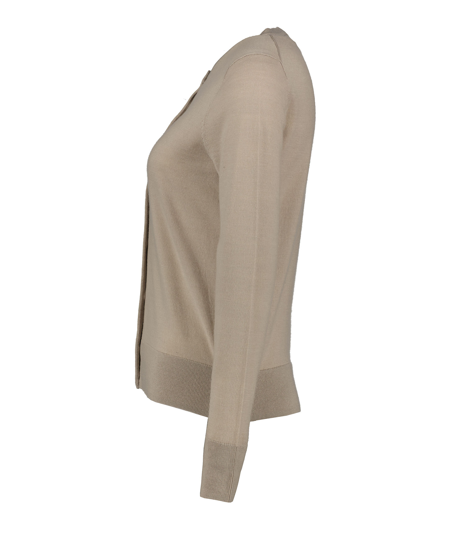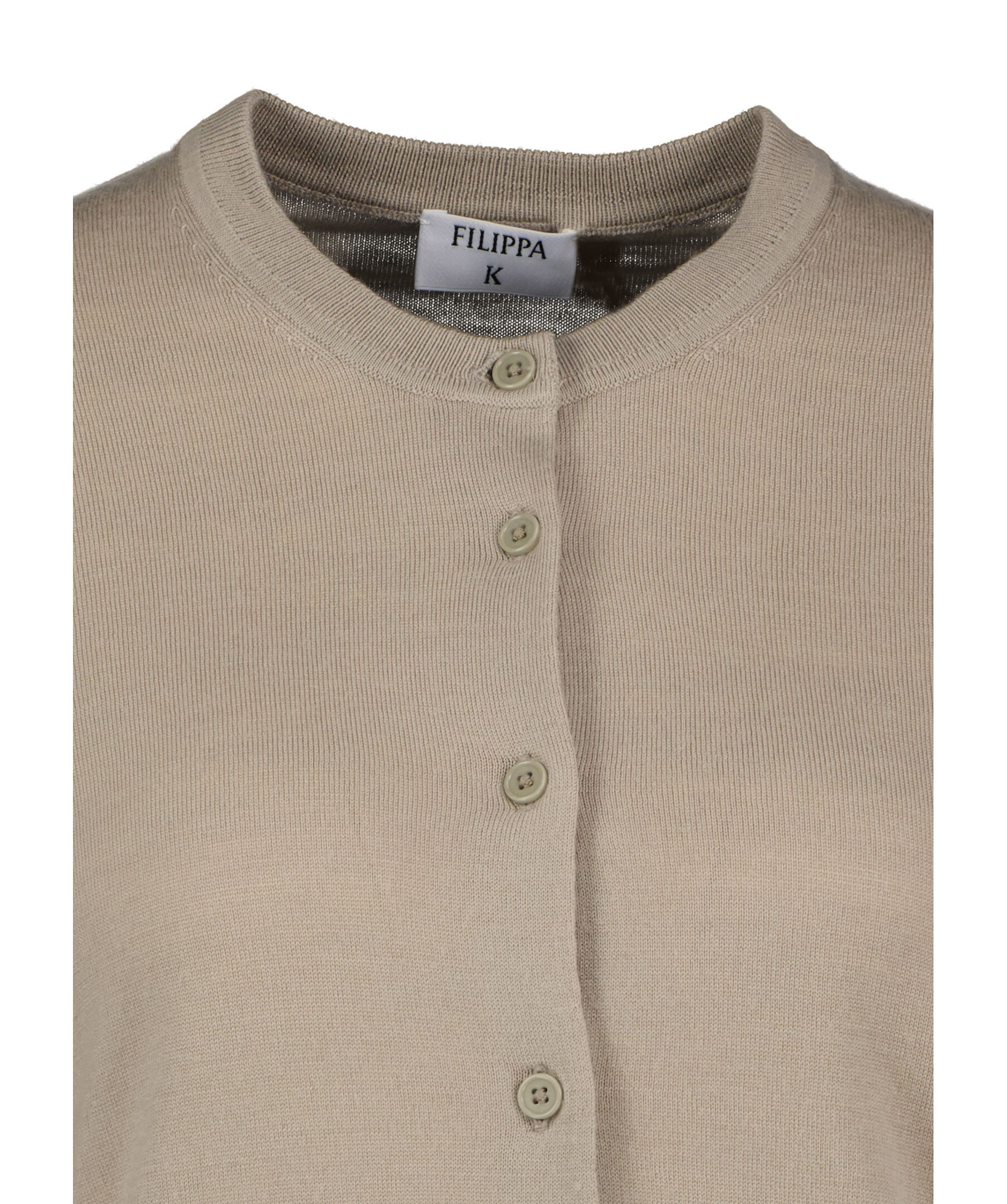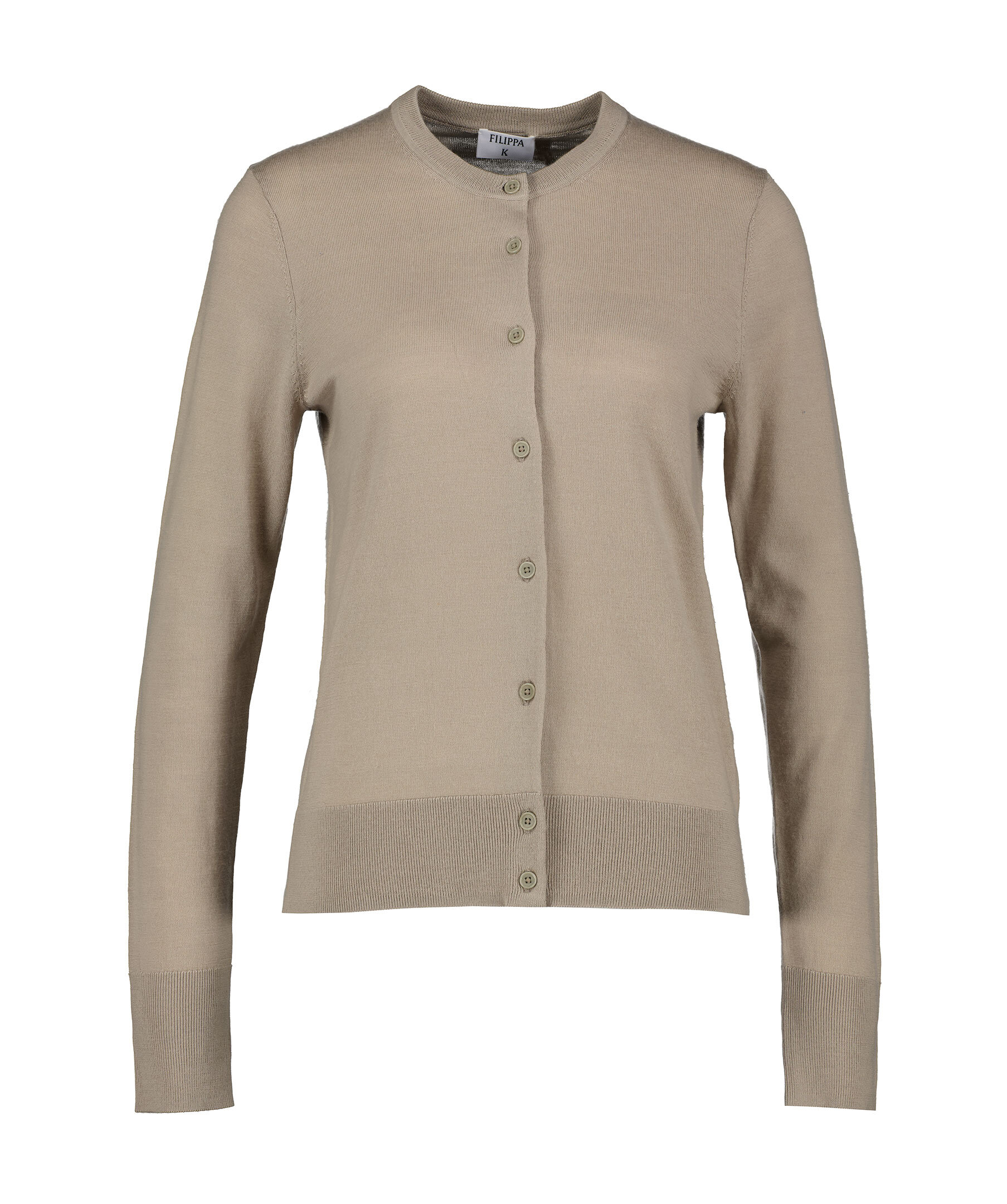 Beige cardigan från Filippa K. Tröjan har knappar framtill och ribbstickad rundad halsringning samt mudd vid tröj- och ärmslut. Tillverkad av 100% ull.