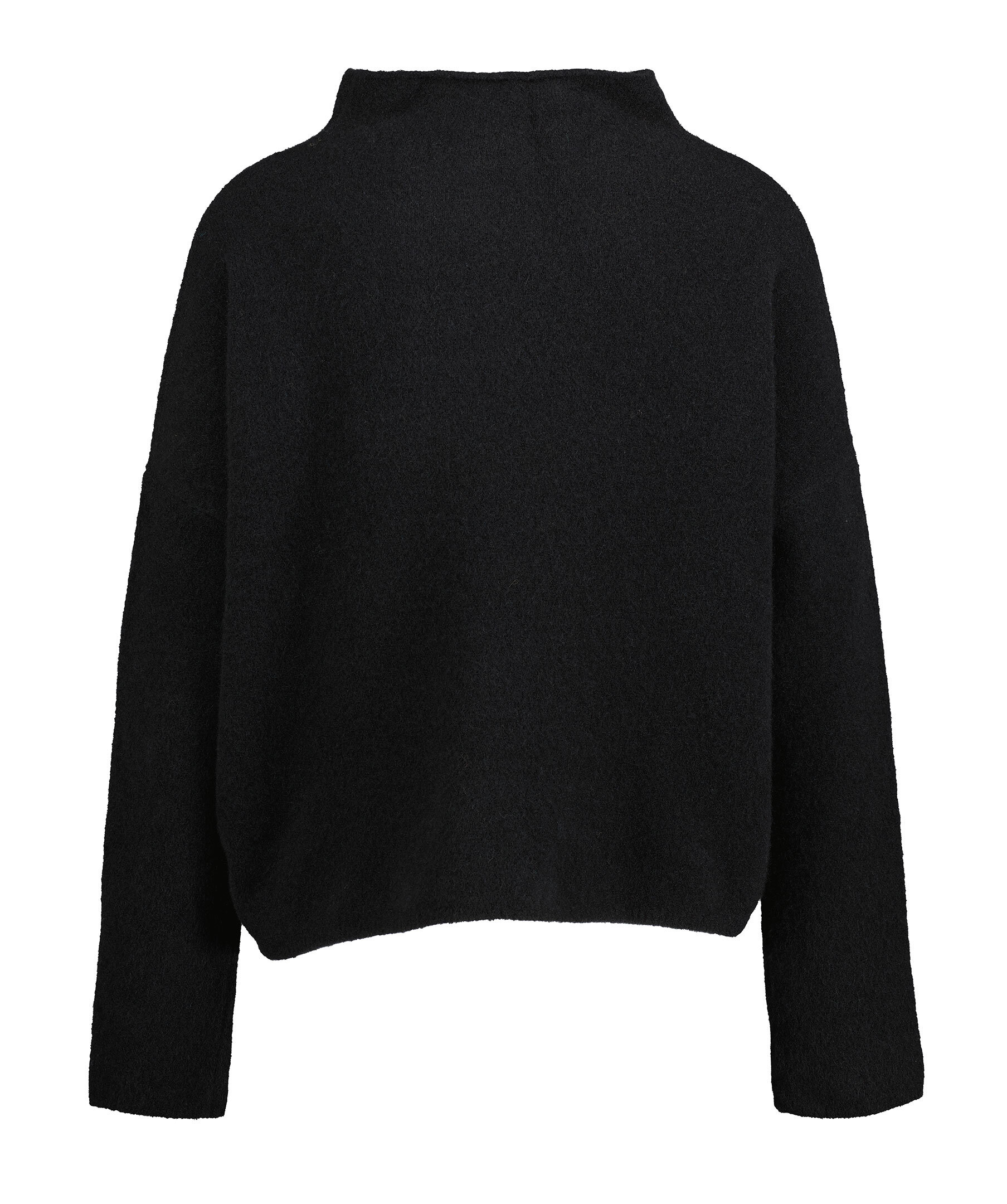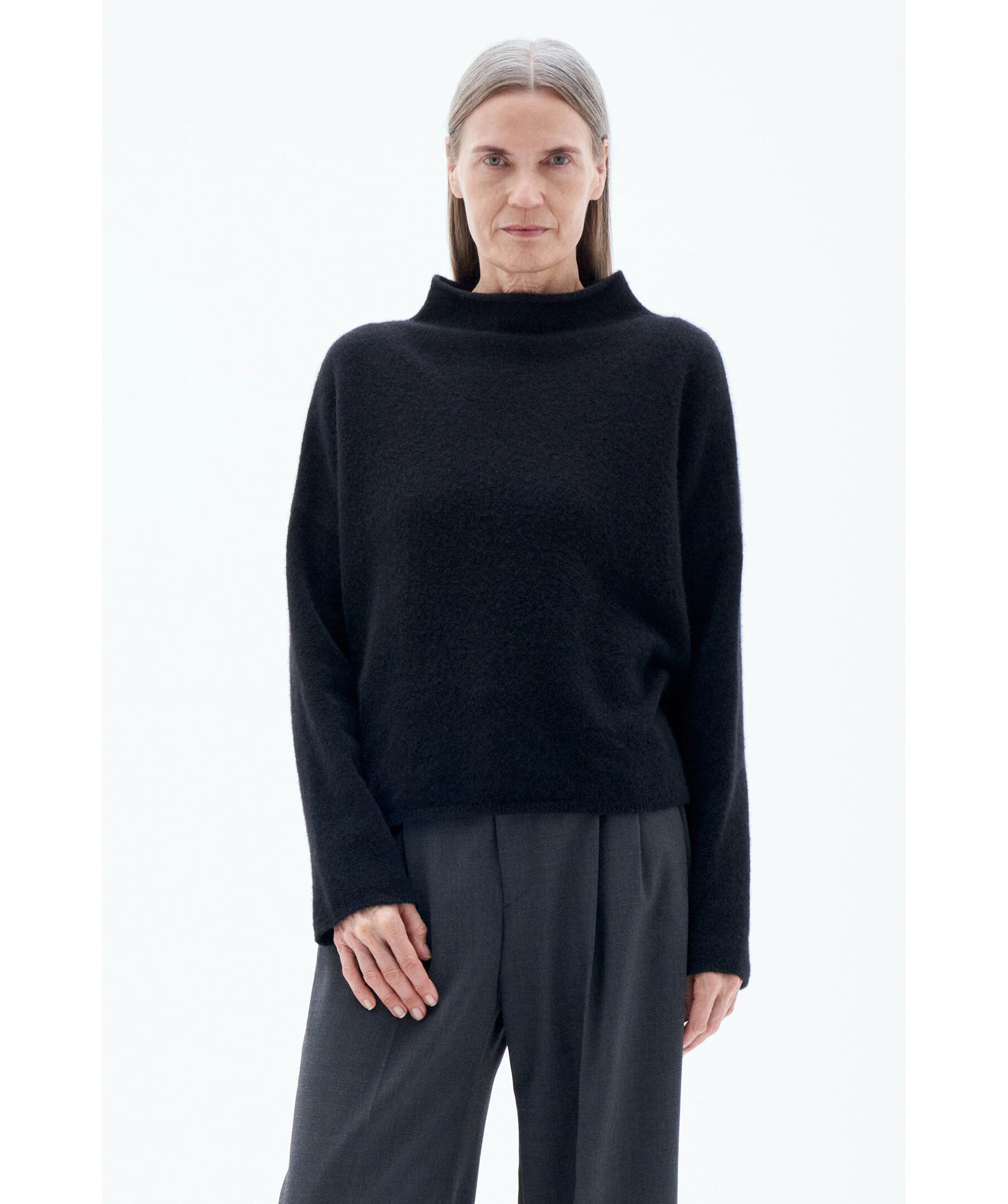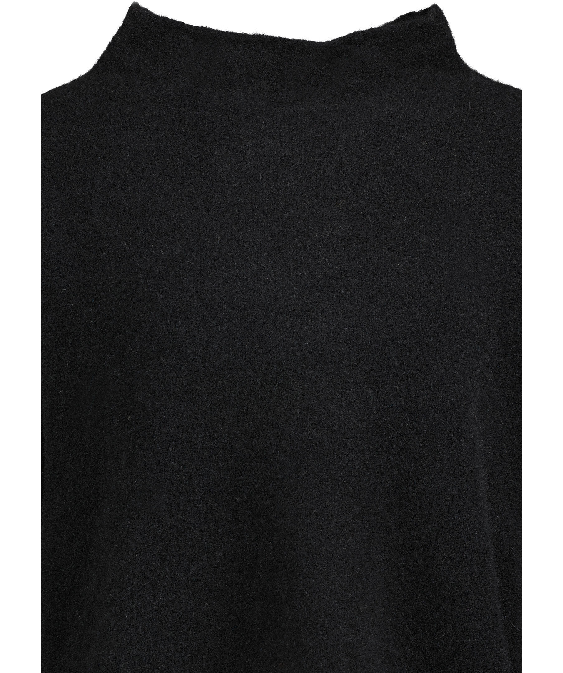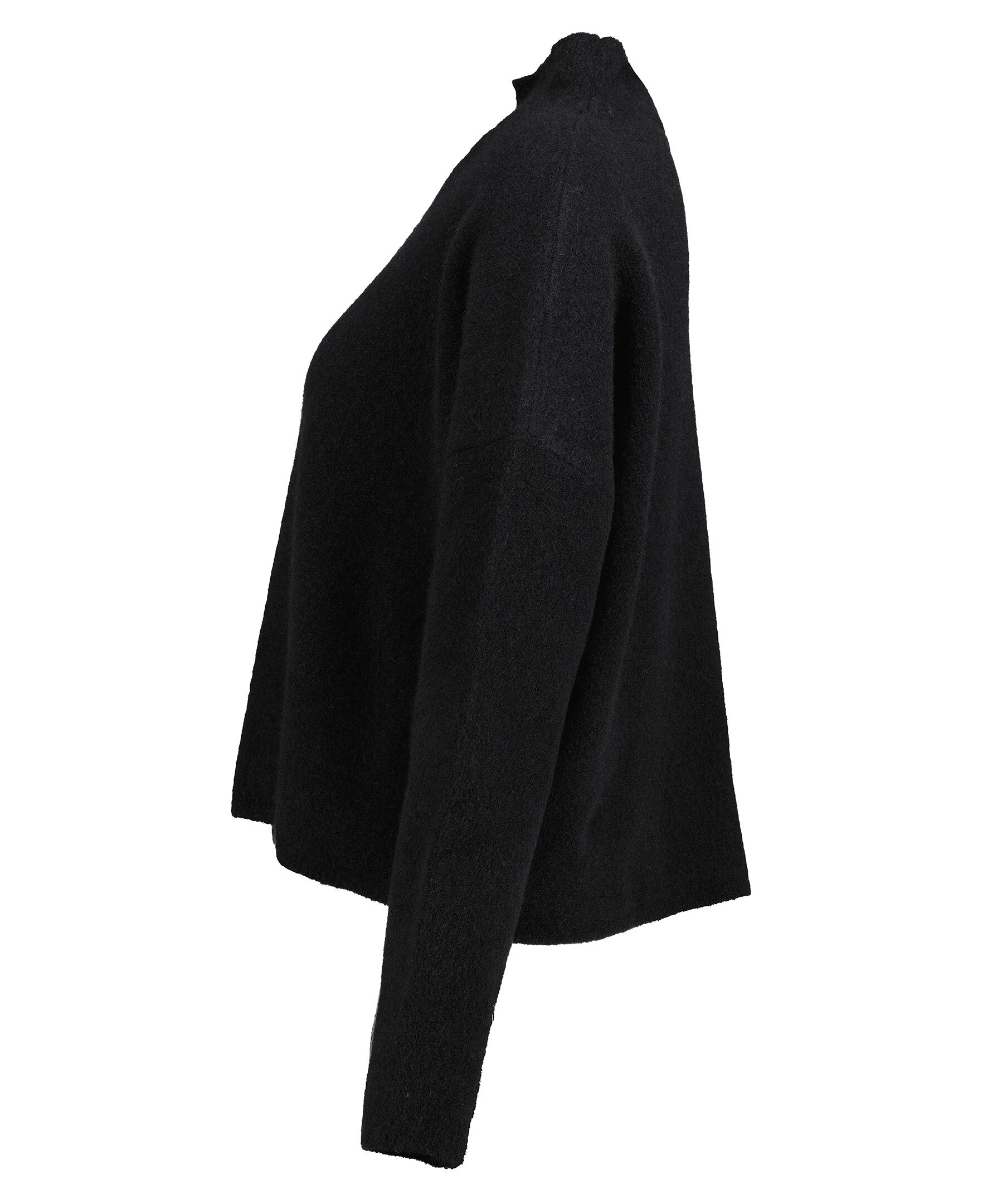 Svart stickad tröja från Filippa K. Tröjan har en hög, bred hals, droppade axlar och en vid passform. Tillverkad i en ullblandning.