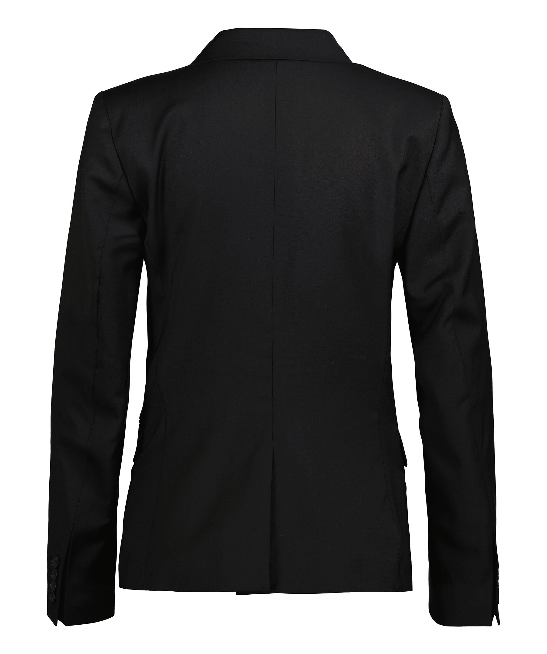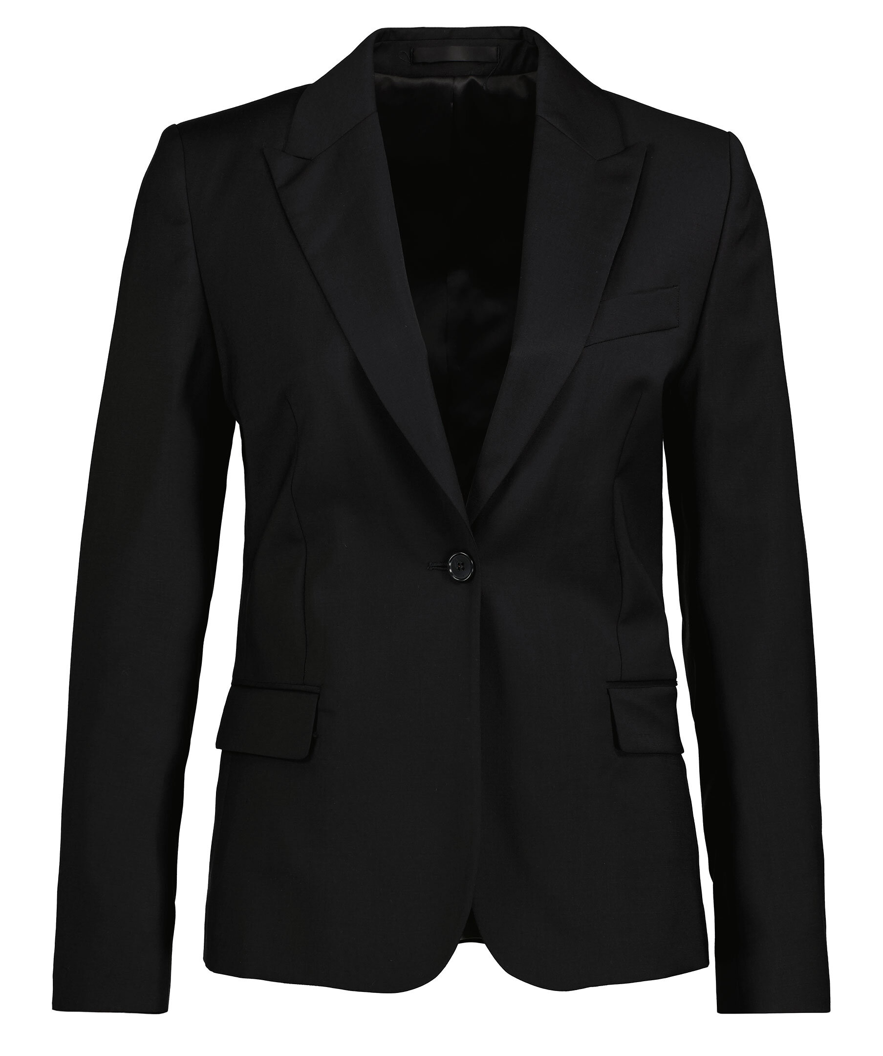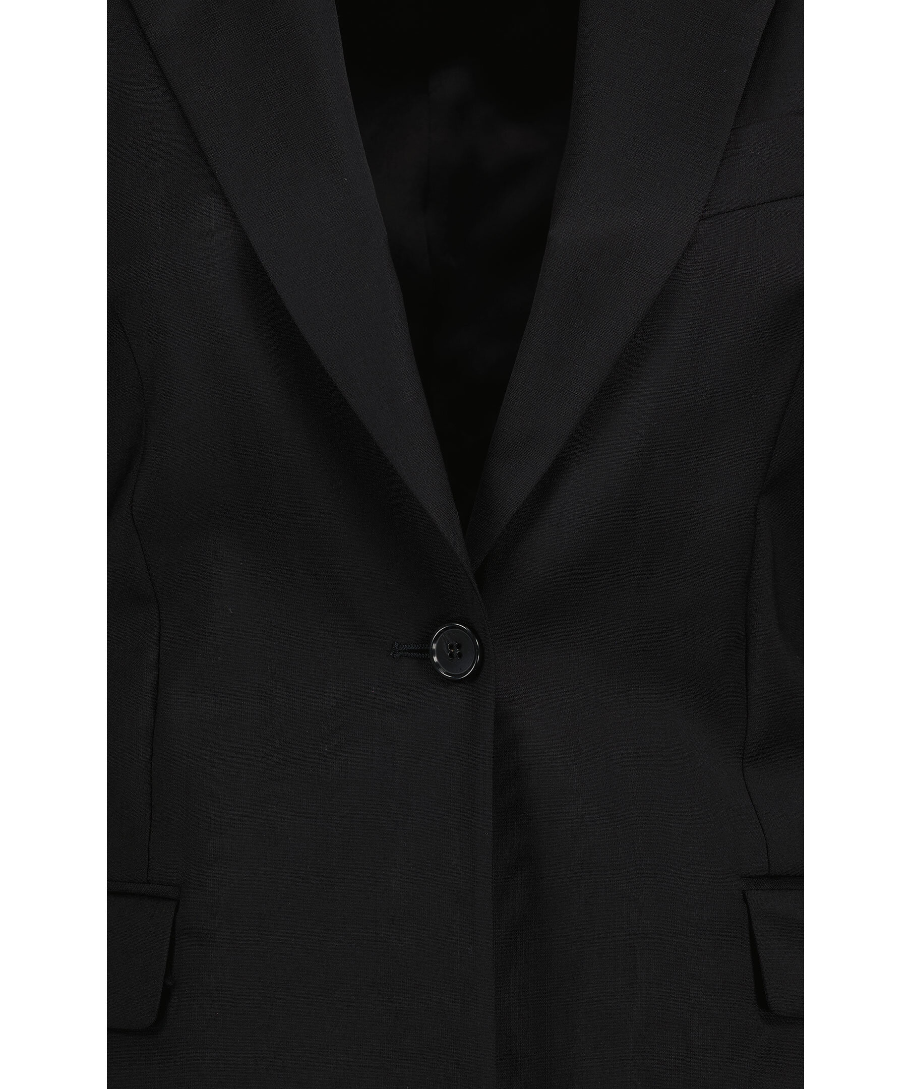 Svart enkelknäppt kavaj från Filippa K. Kavajen är helfodrad och har spetsiga slag. En passpoalficka på bröstet samt två fickor med lock vid midjan. Ärmslut med knappar och sprund baktill. Tillverkad i en ullblandning. Rak passform.