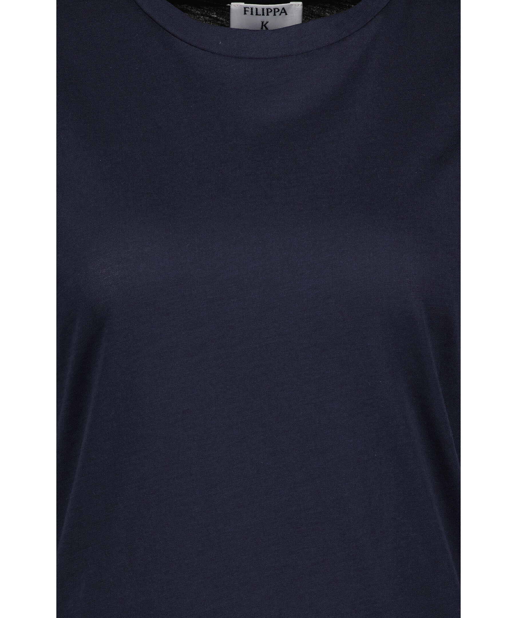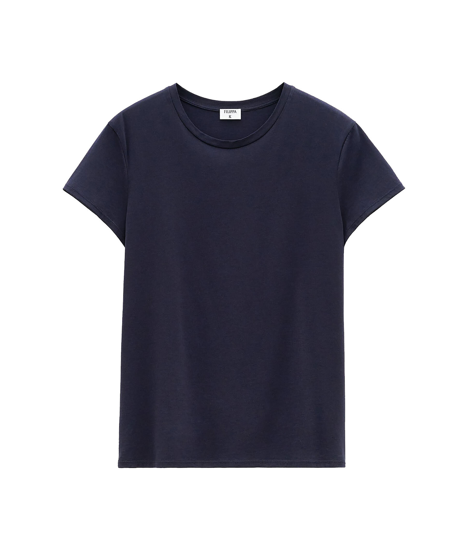 Marinblå t-shirt från Filippa K. Rundad hals. Rak passform. Tillverkad i 100% bomull.