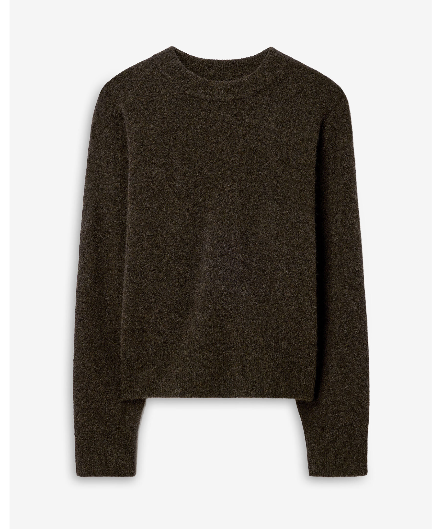 Stickad tröja från Filippa K. Tröjan har en avslappnad passform och är stickad i ett tungt, mjukt garn bestående av en blandning av ull och yak, vilket ger både värme och komfort. Med sin klassiska rundhalsringning passar den utmärkt att bära under kappor eller som ett stilrent lagerplagg.