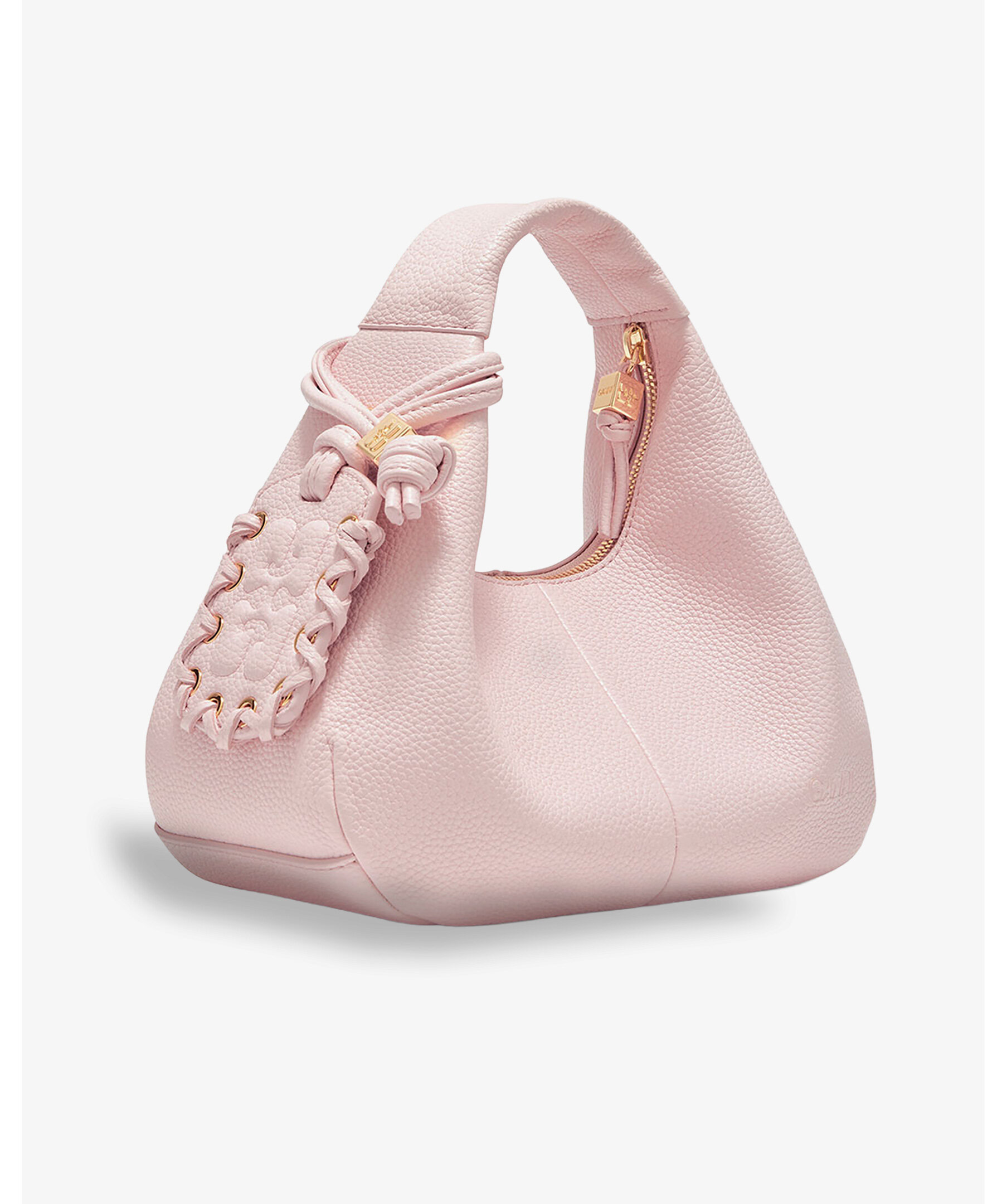 Mini hobo‑väska i rosa från GANNI med topphandtag, justerbar och avtagbar axelrem samt dragkedjestängning. Väskan har ett innerfack och spegel‑hängtag, vilket gör den till ett stilrent och praktiskt accessoarval för vardag och fest.
