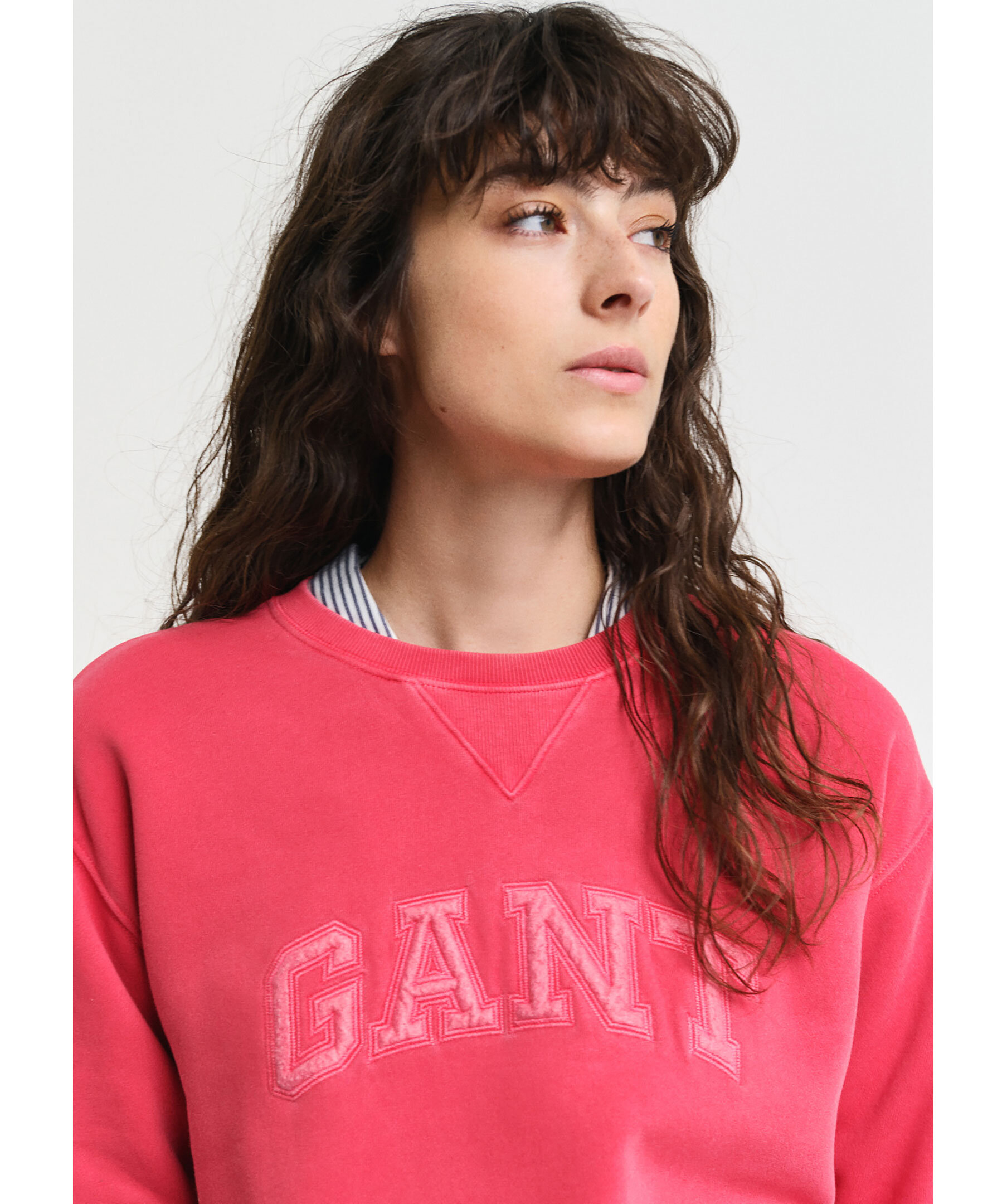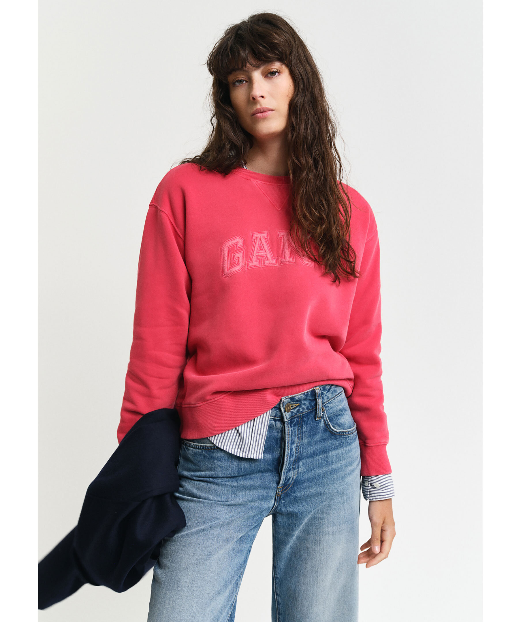 Röd sweatshirt i en urtvättad vintagelook från Gant. Tröjan har ribbstickad, rundad halsringning samt ribbstickade muddar vid ärm- och plaggslut. Insida i borstad frotté. GANT-logotyp i filttyg placerad på bröstet. Tillverkad i bomull.