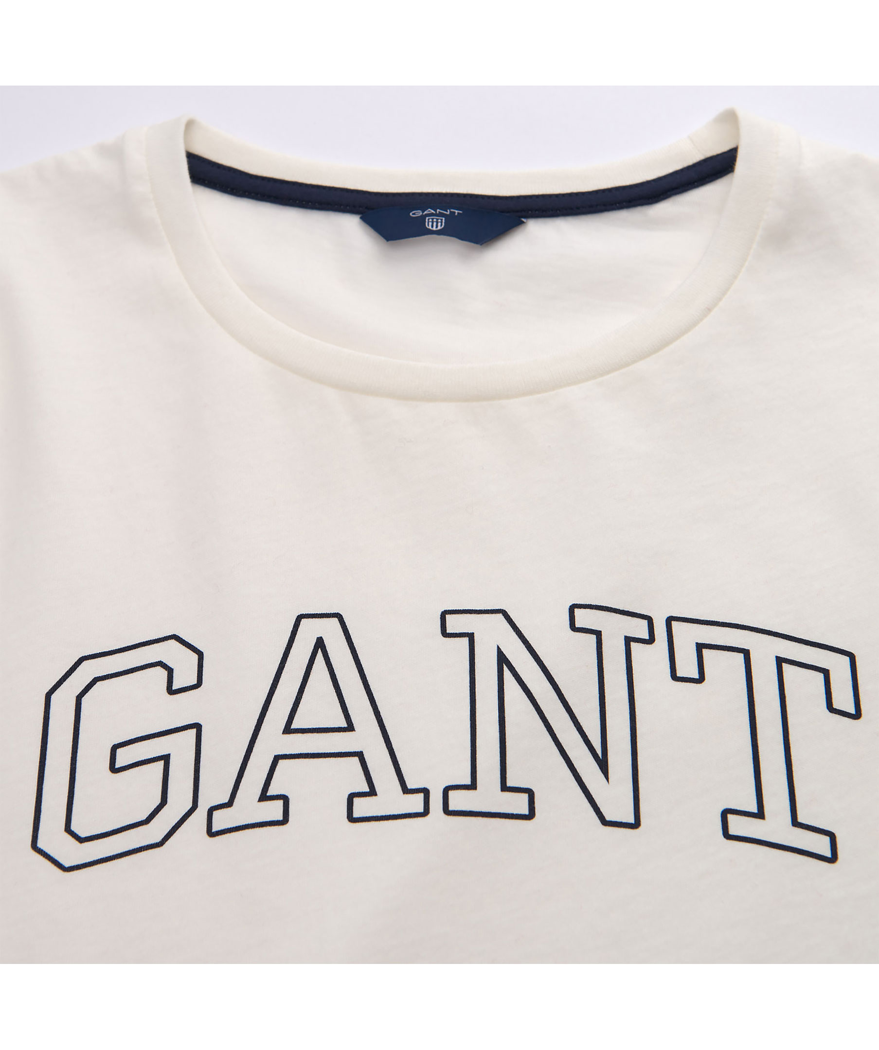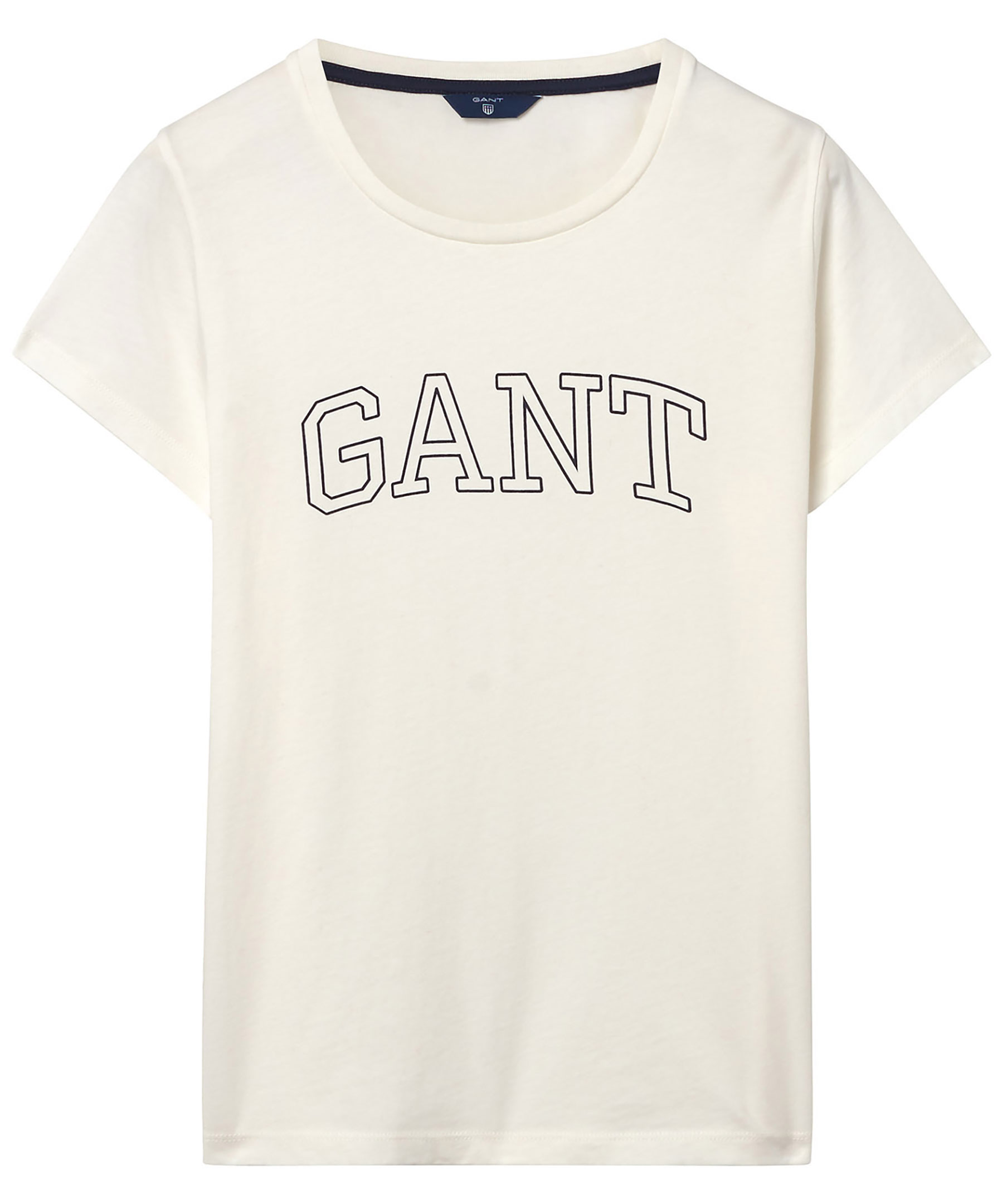Vit t-shirt i 100% bomull från Gant. Rund halsringning och rak modell. Marinblått, tryckt logotyp mitt på bröstet. * Rundad halsringning * Broderad logotyp * 100% bomull