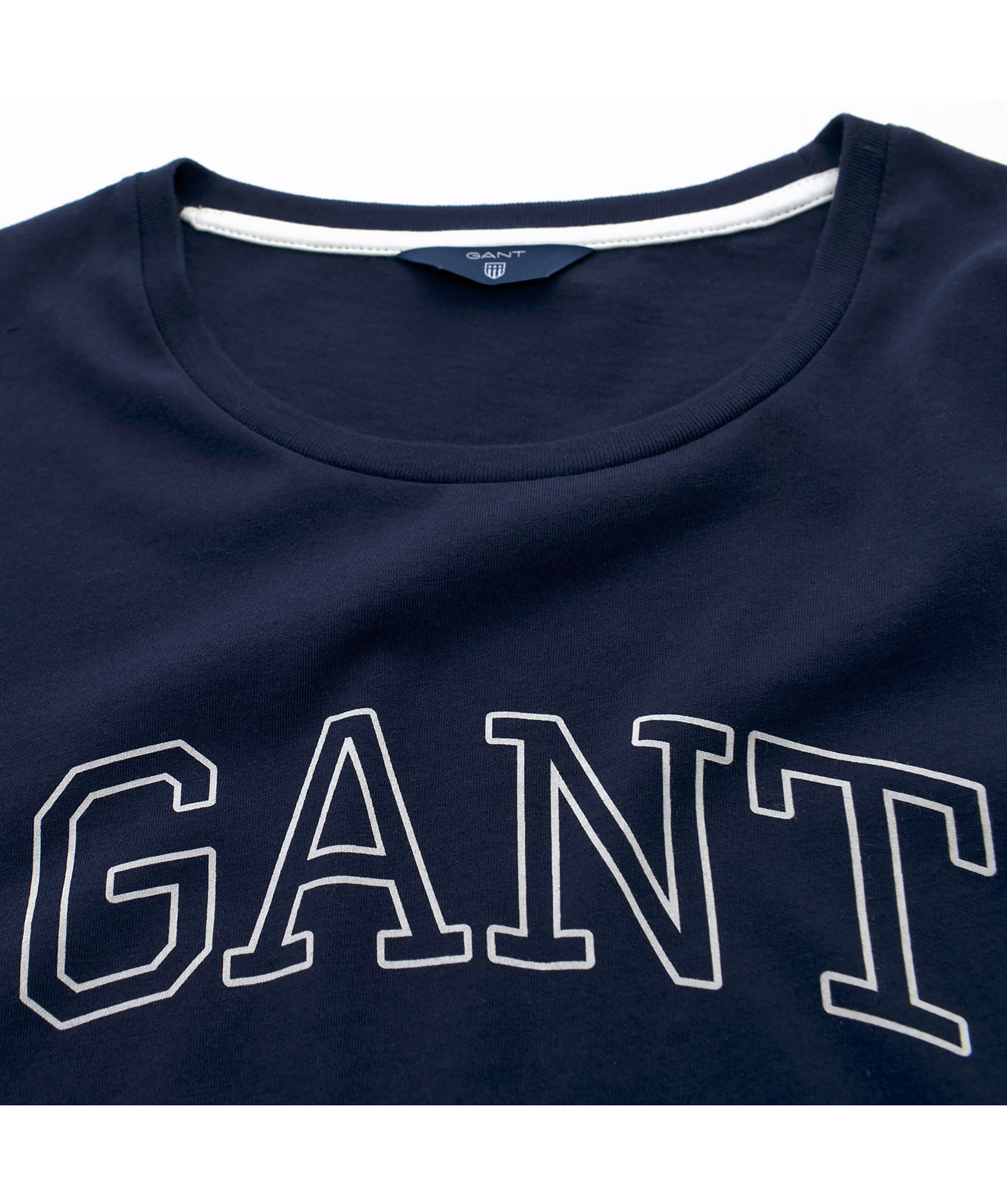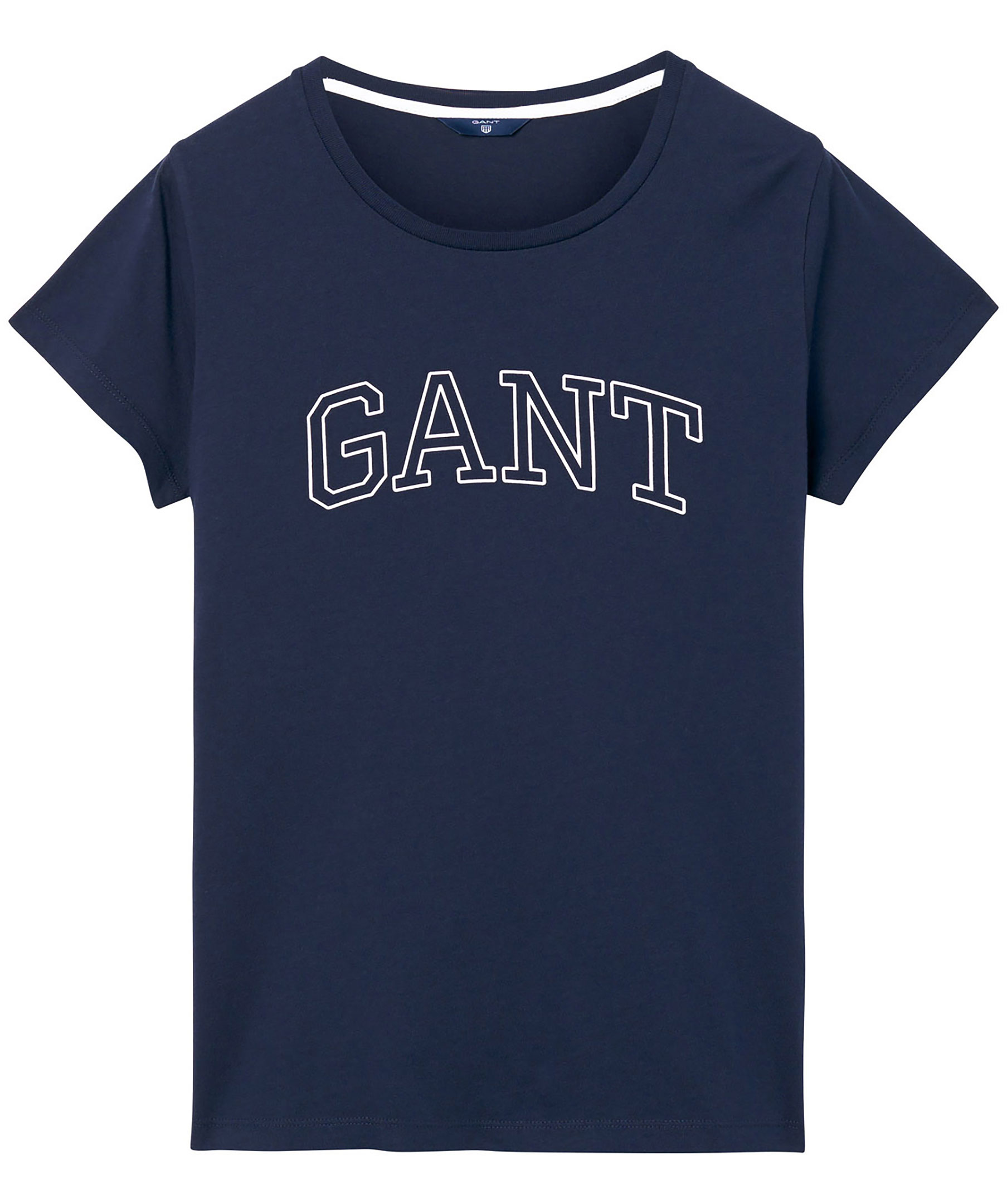 Marinblå t-shirt i 100% bomull från Gant. Rund halsringning och rak modell. Vit, tryckt logotyp mitt på bröstet. * Rundad halsringning * Broderad logotyp * 100% bomull