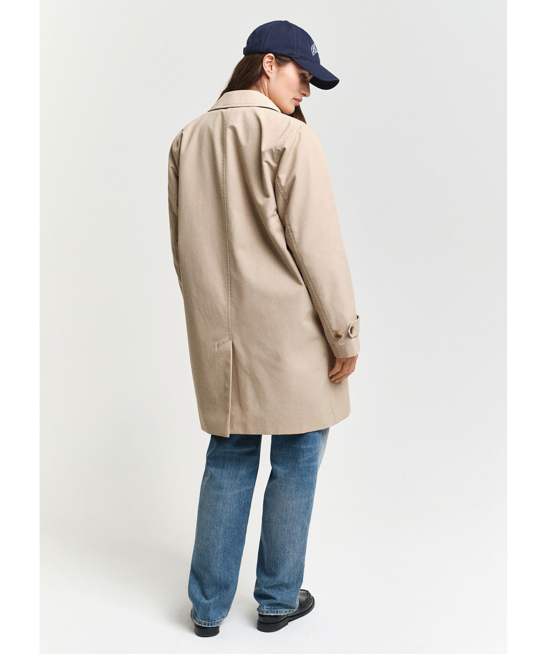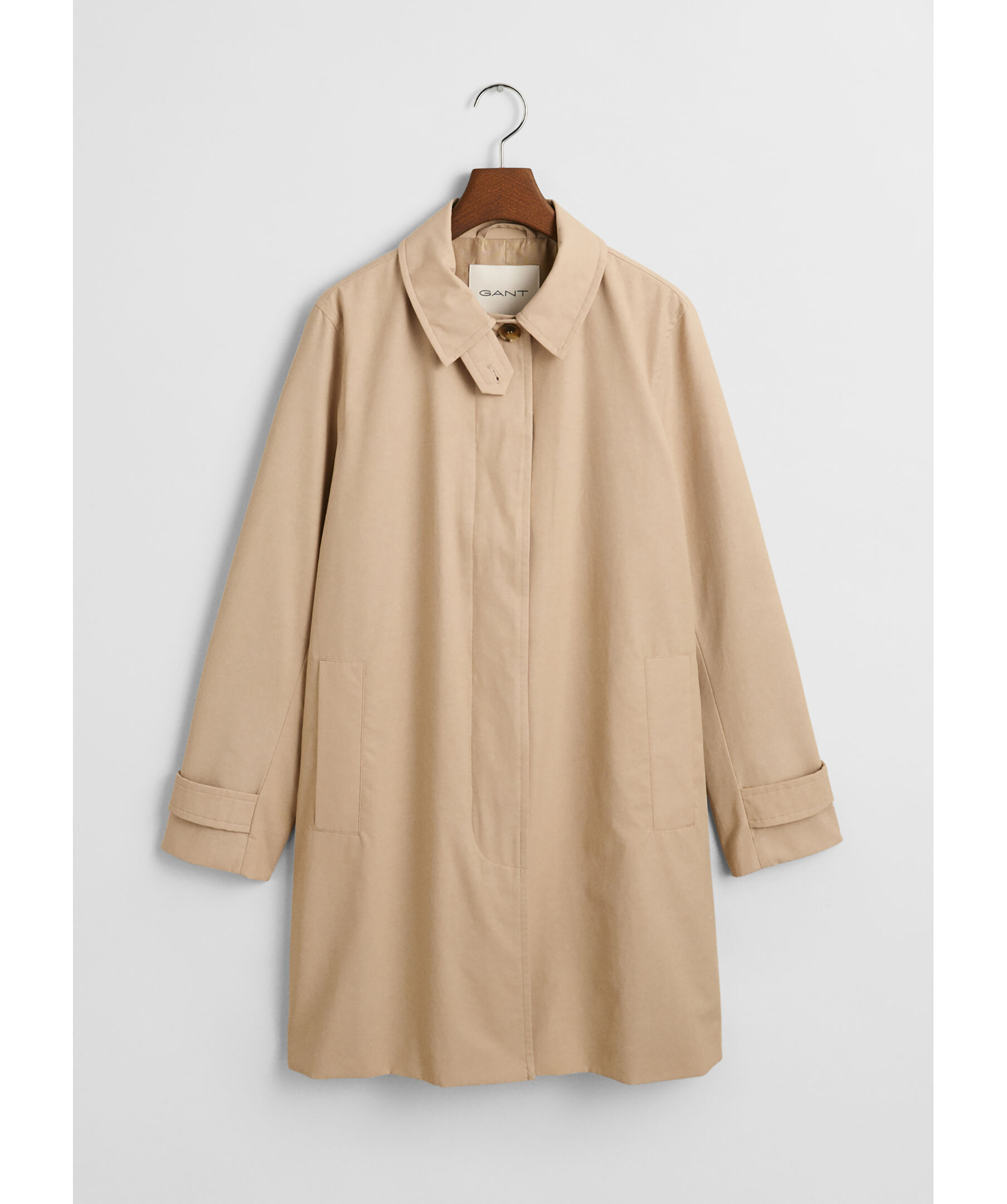 Beige kappa från Gant. Inspirerad av den klassiska bilrocken med en vattenavvisande yta. Stängs med dolda knappar framtill och har passpoalfickor, högt sprund bak samt justerbara manschetter. Slutar strax ovanför knät och är helfodrad. Jackan har en vattenavvisande DWR-beläggning (Durable Water Repellent) som hjälper till att leda bort vatten i lätt regn. Tillverkad i en bomullsblandning.