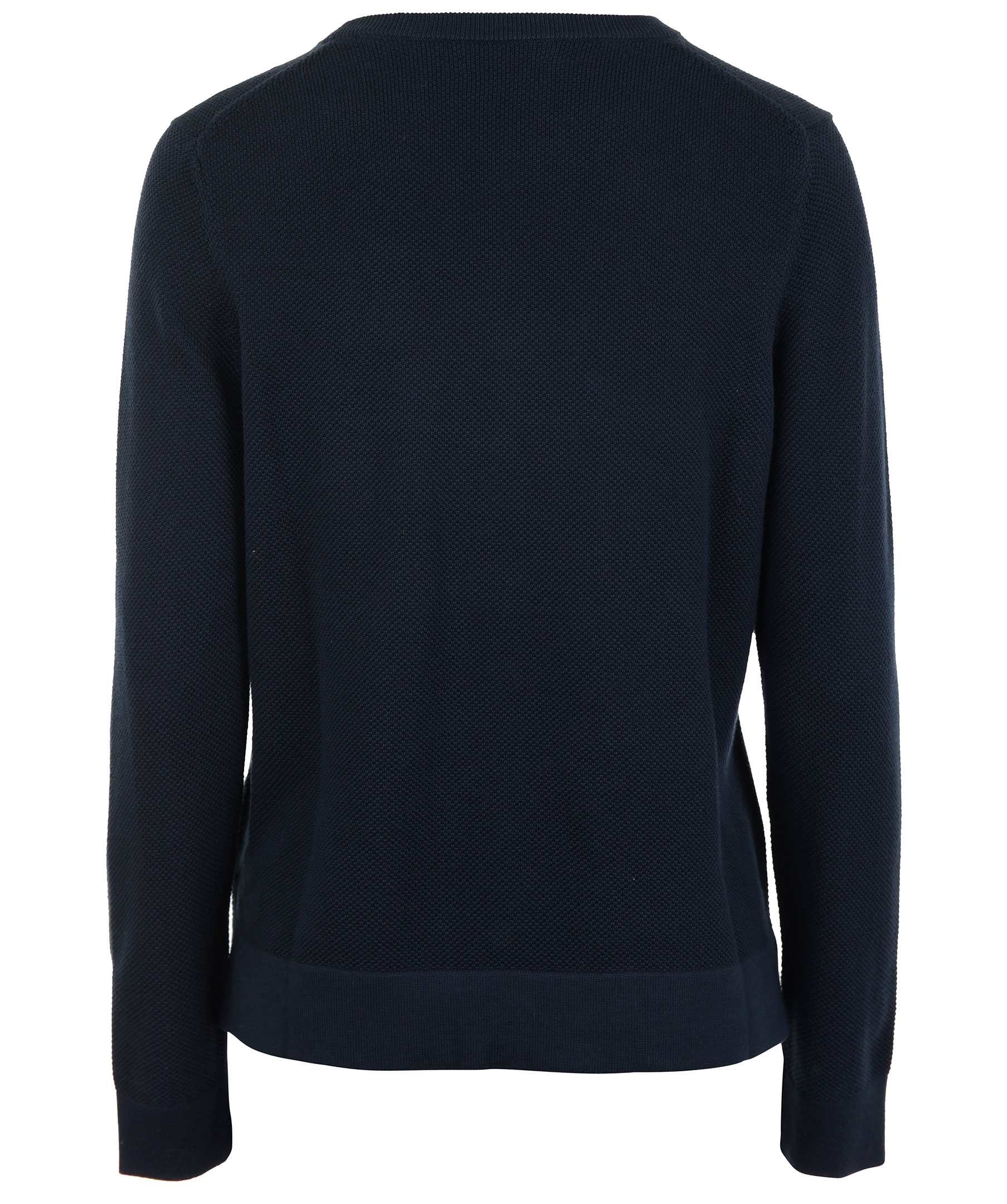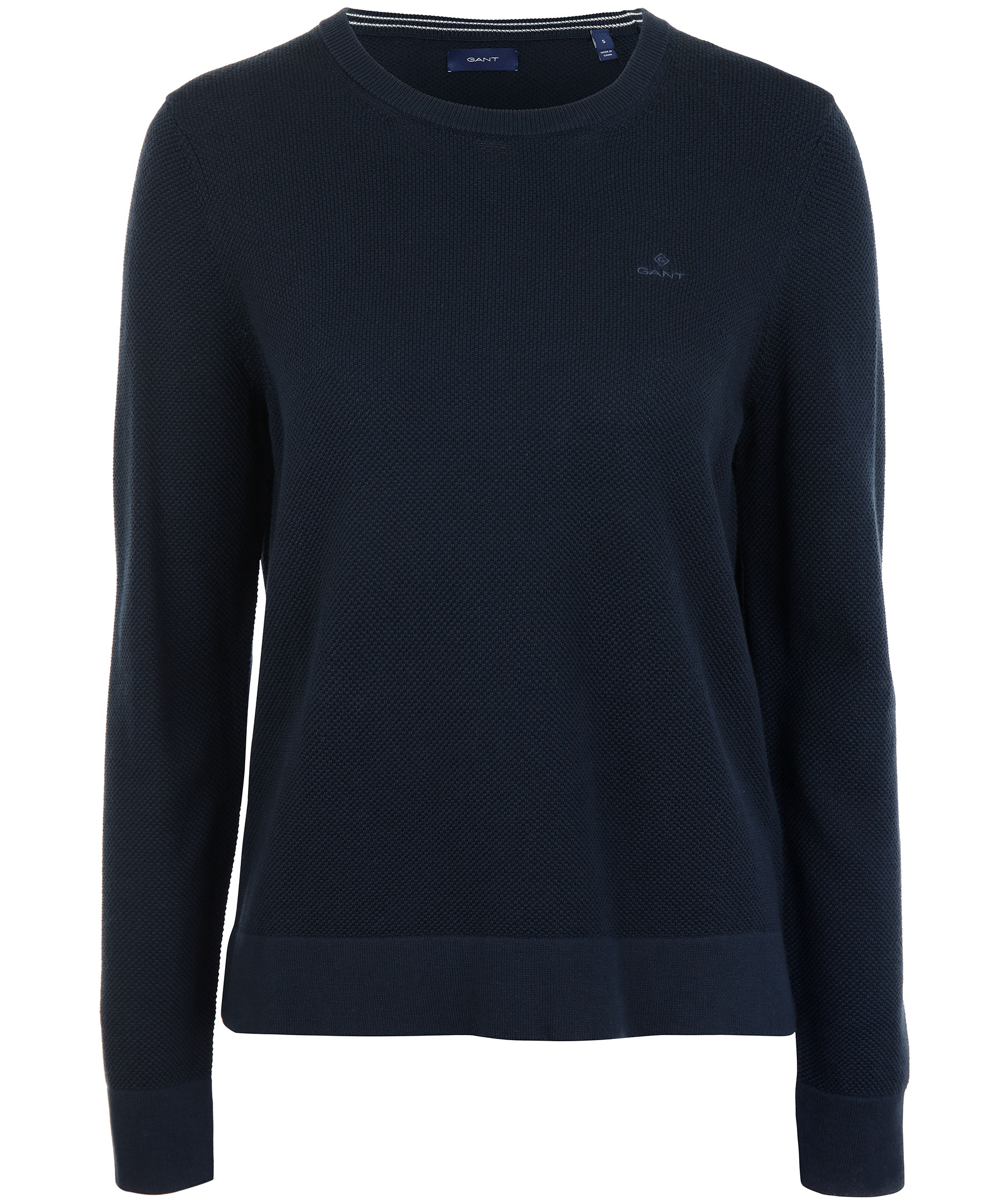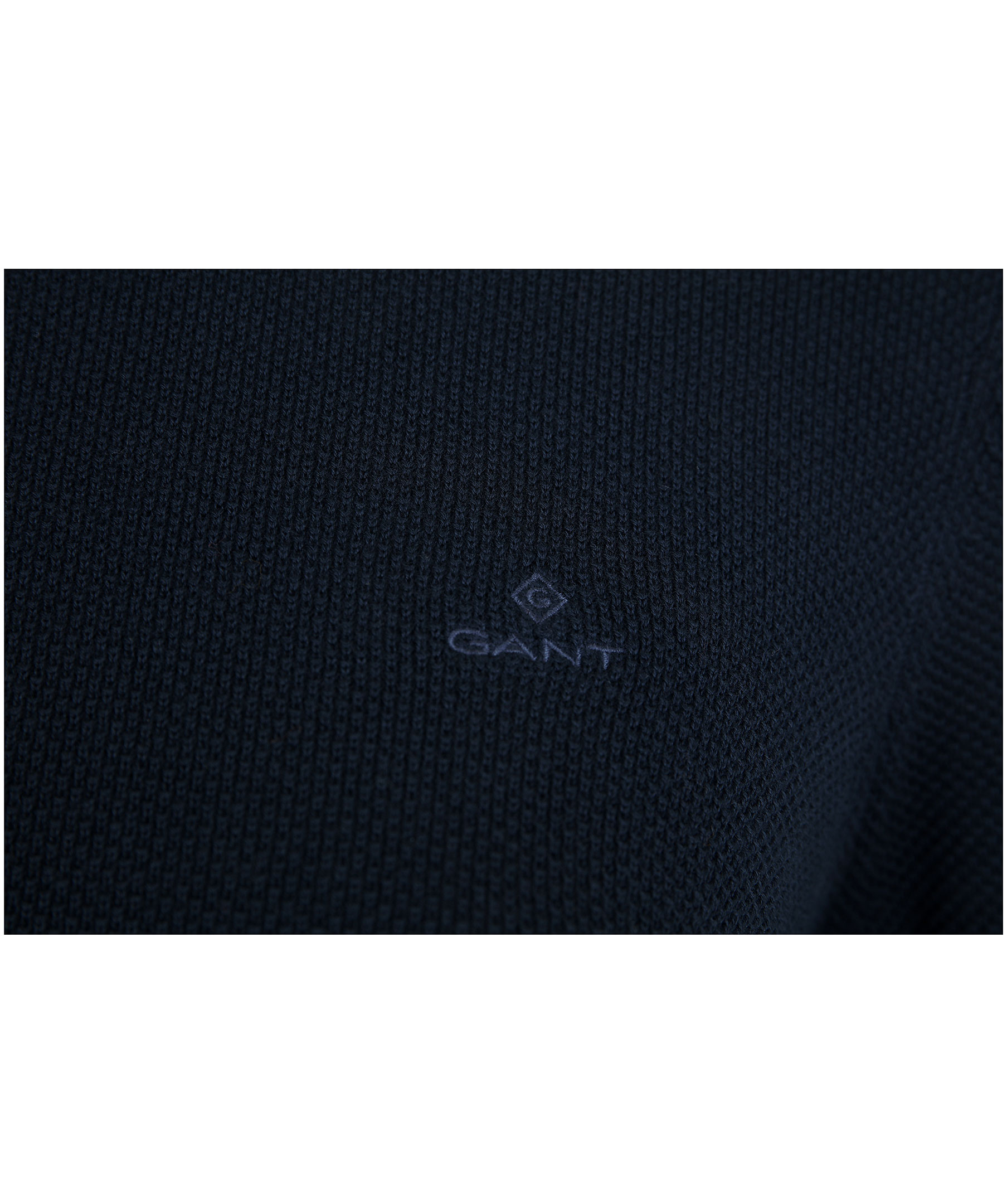 Marinblå tröja i pikéstruktur från Gant med broderad logotyp på bröstet. Normal passform, rundad hals och ribbstickade muddar.