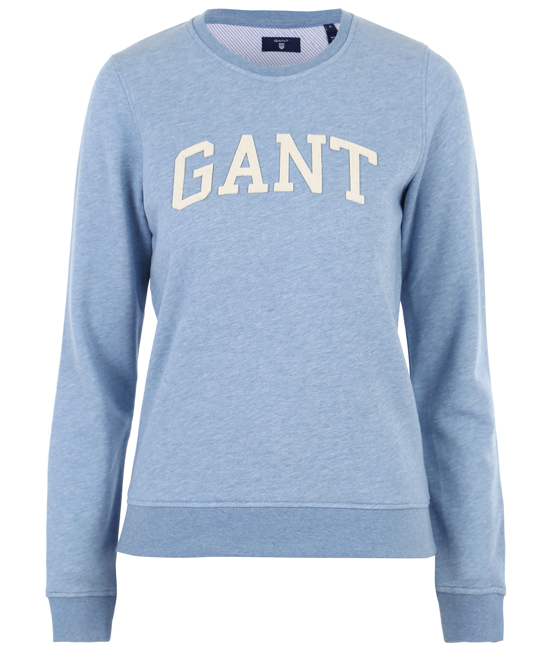 Mjuk sweatshirt från Gant i en blå färg. Vit logotyp på bröstet. Rundad hals, muddar i ärmslut.