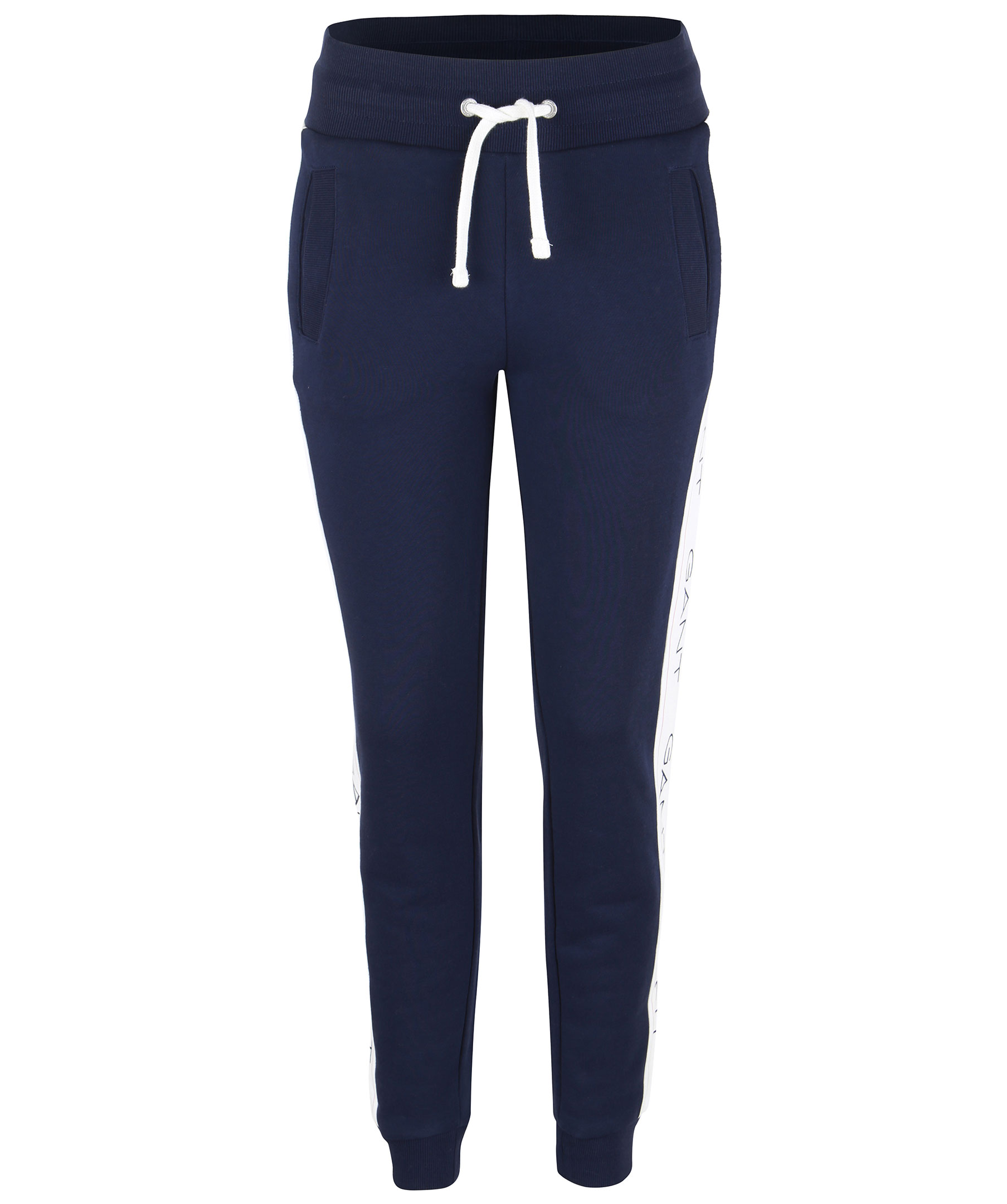 Mjukisbyxor från Gant i marinblå färg med vita revärer. Knyt i midjan och muddar i benslut.