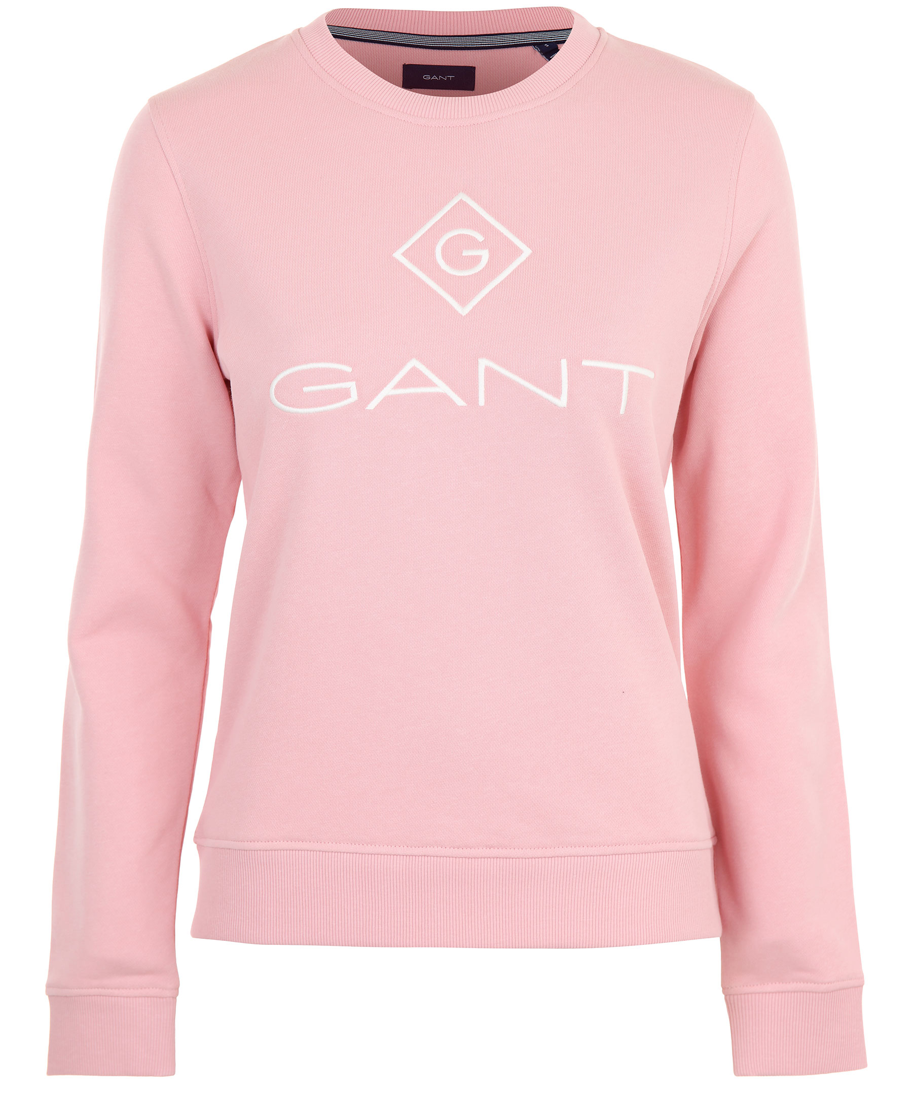 Rosa sweatshirt från Gant tillverkad i bomullsmix. Ribbstickade muddar vid halsring, ärm och plaggslut. Vit broderad logotyp över bröstet.