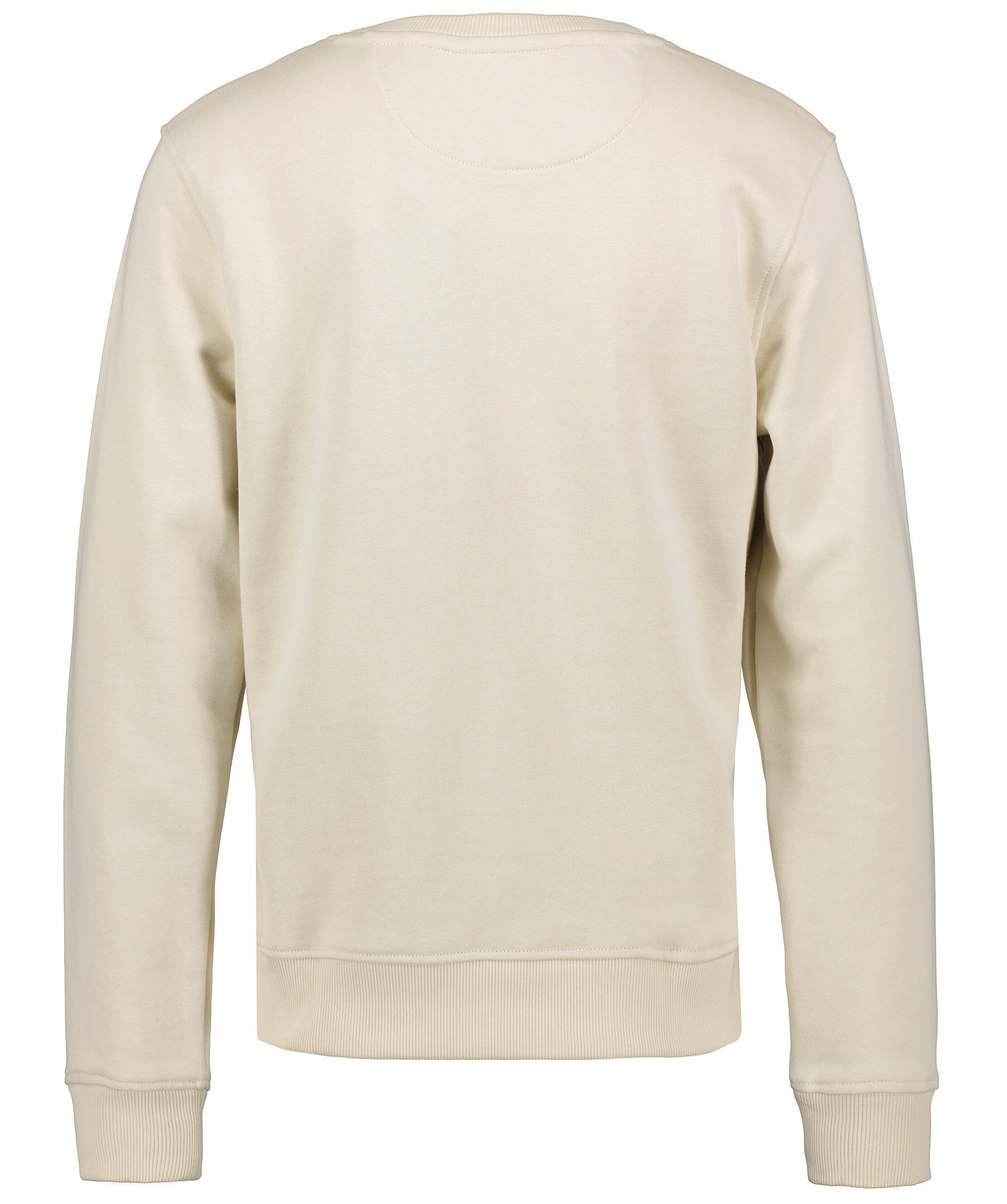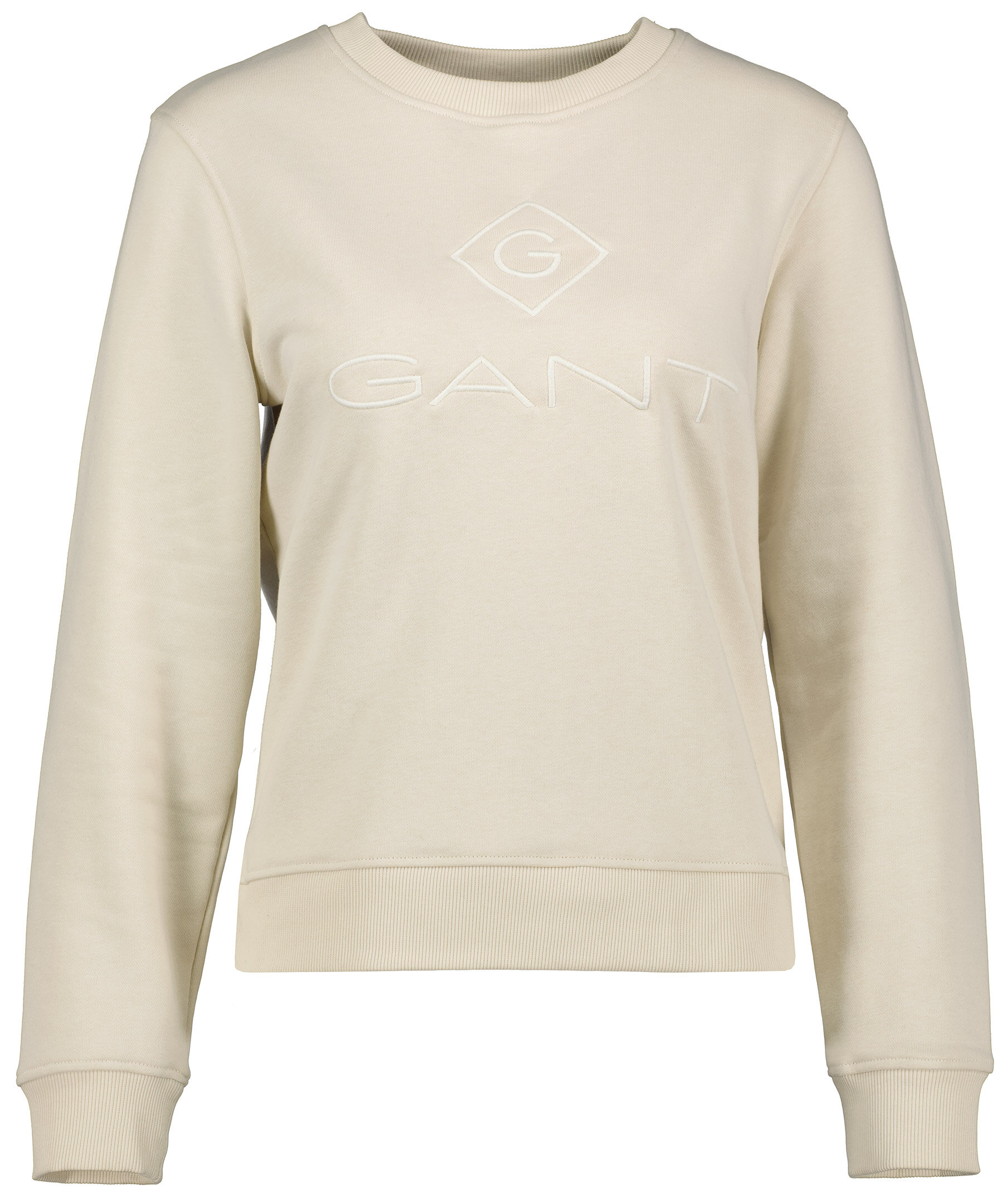 Beige sweatshirt från Gant. Broderad logotyp i vitt över bröstet Mjuk borstad insida. rundad halsringning. ribbstickade muddar i halsen, ärm- och plaggslut.