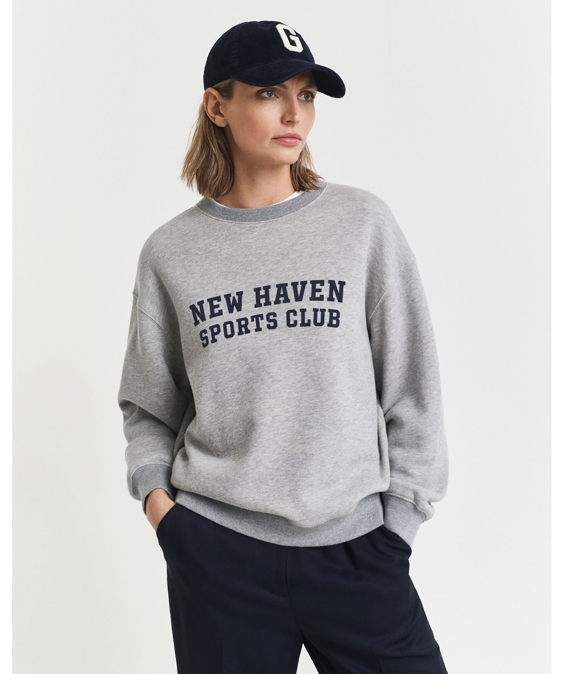 Grå sweatshirt från Gant med logotyp på bröstet. Tröjan är gjord i 100% bomull och har elastiska, ribbstickade muddar vid hals, ärm- och plaggslut.