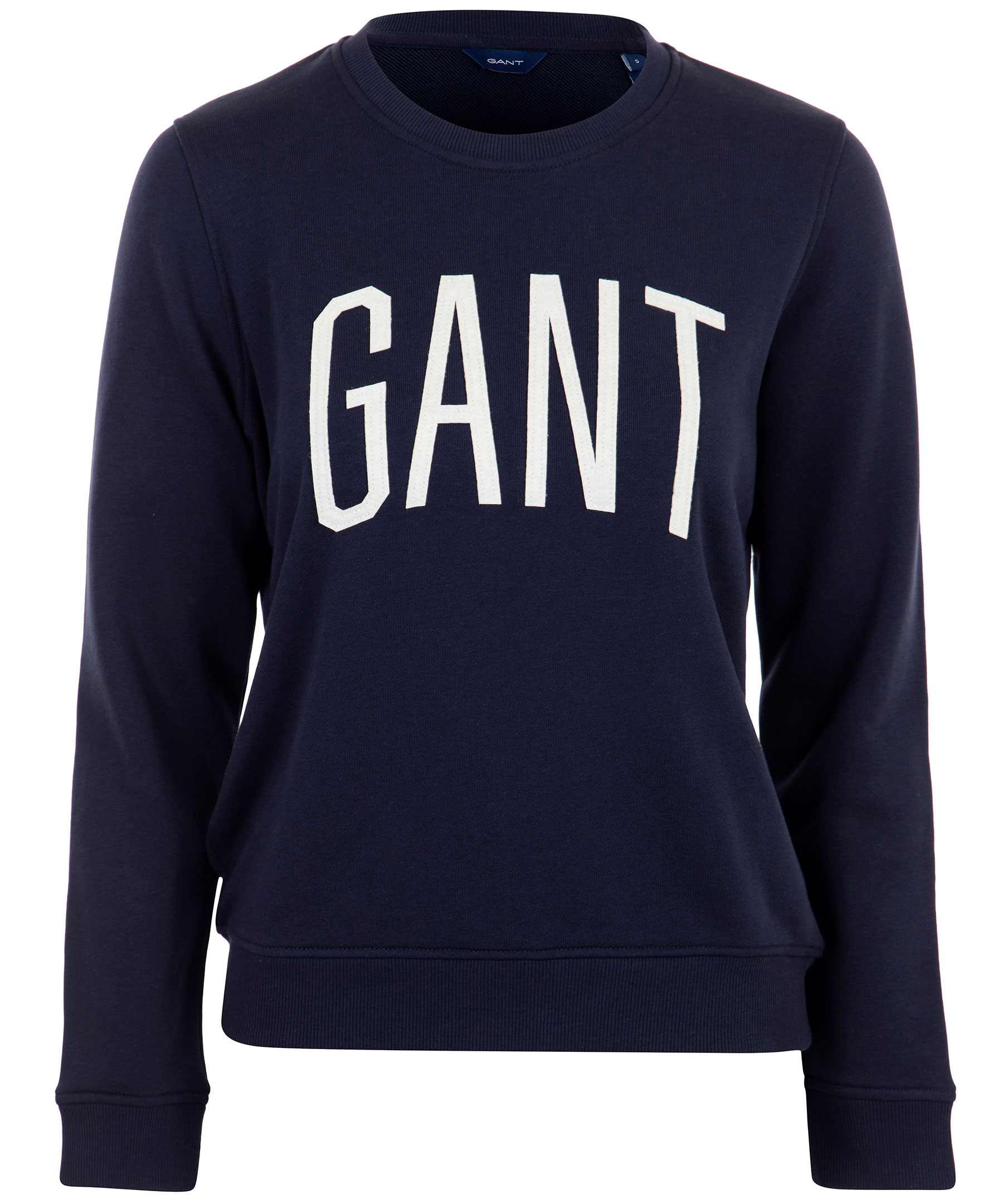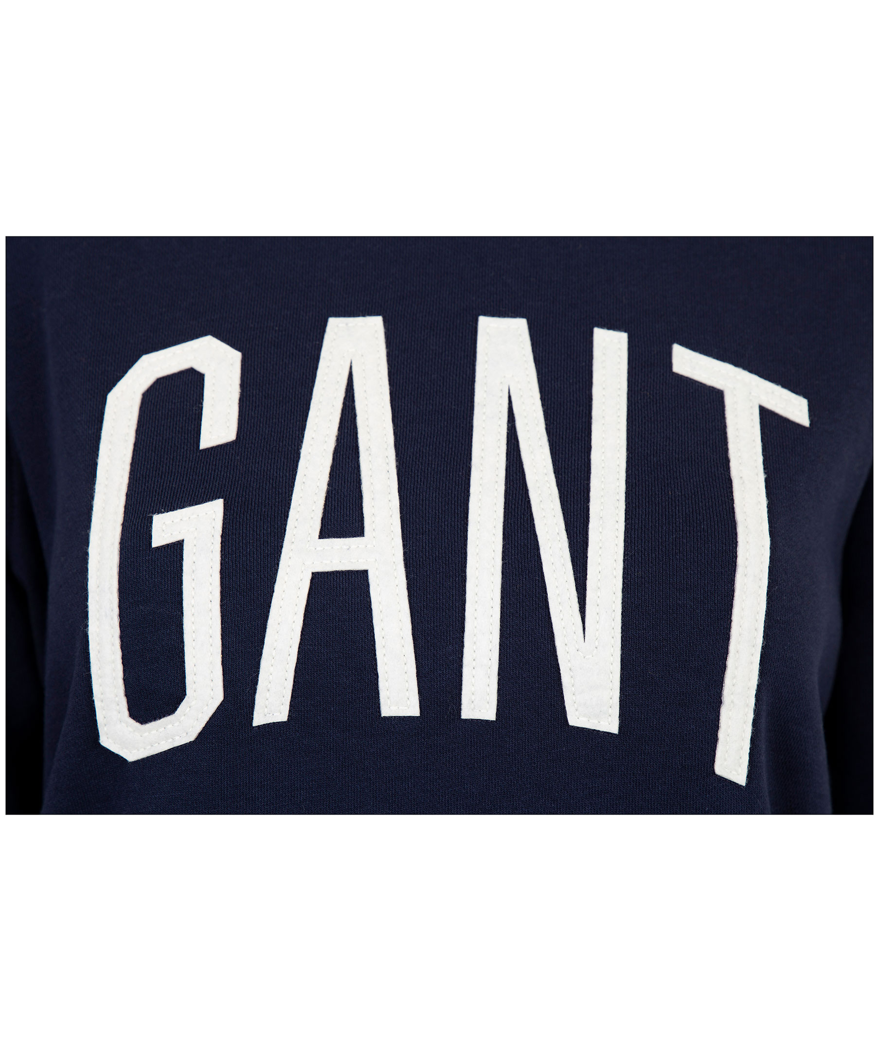 Mörkblå collegetröja från Gant med stor applikation på bröstet. Rundad hals, muddar i ärmslut.