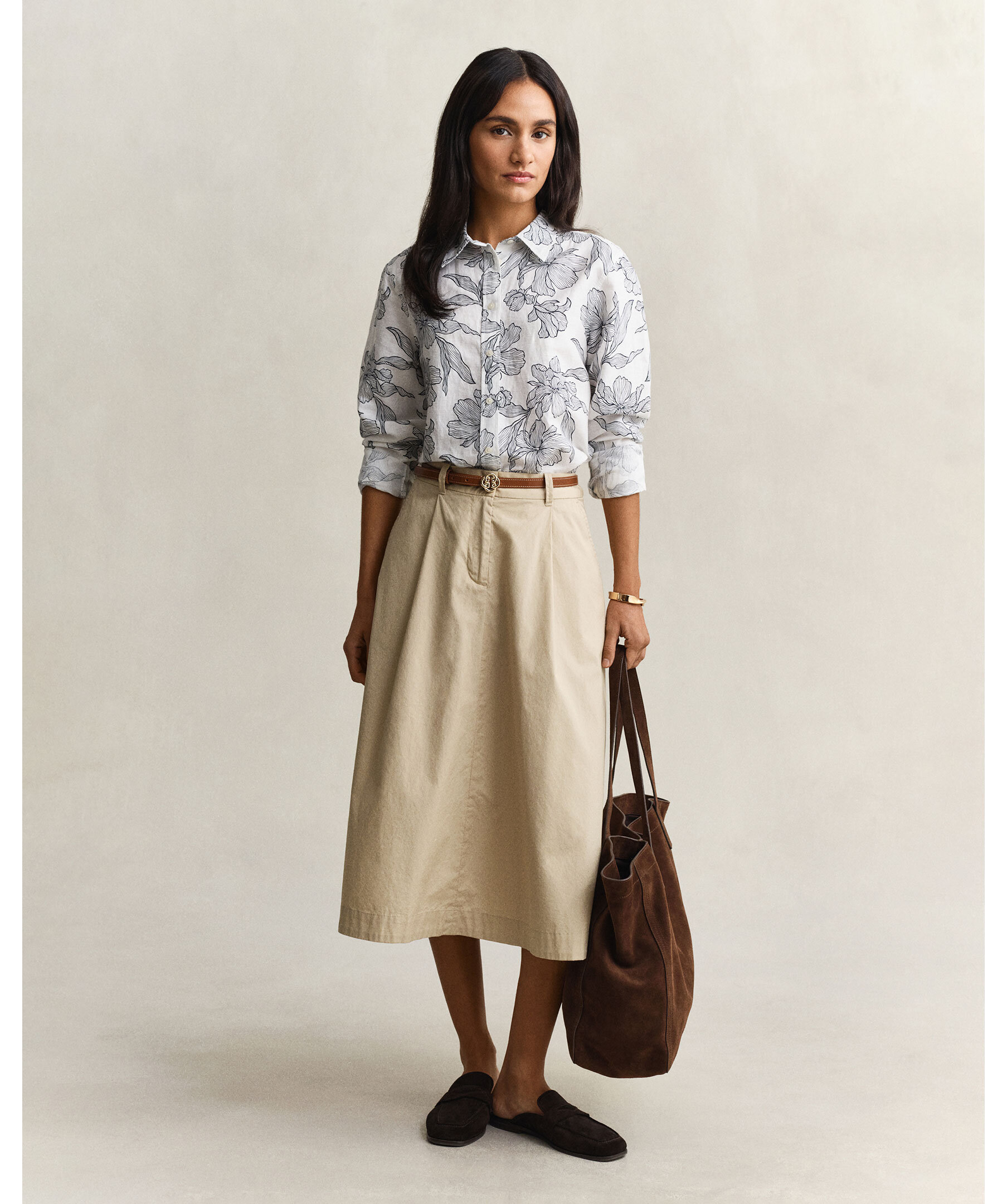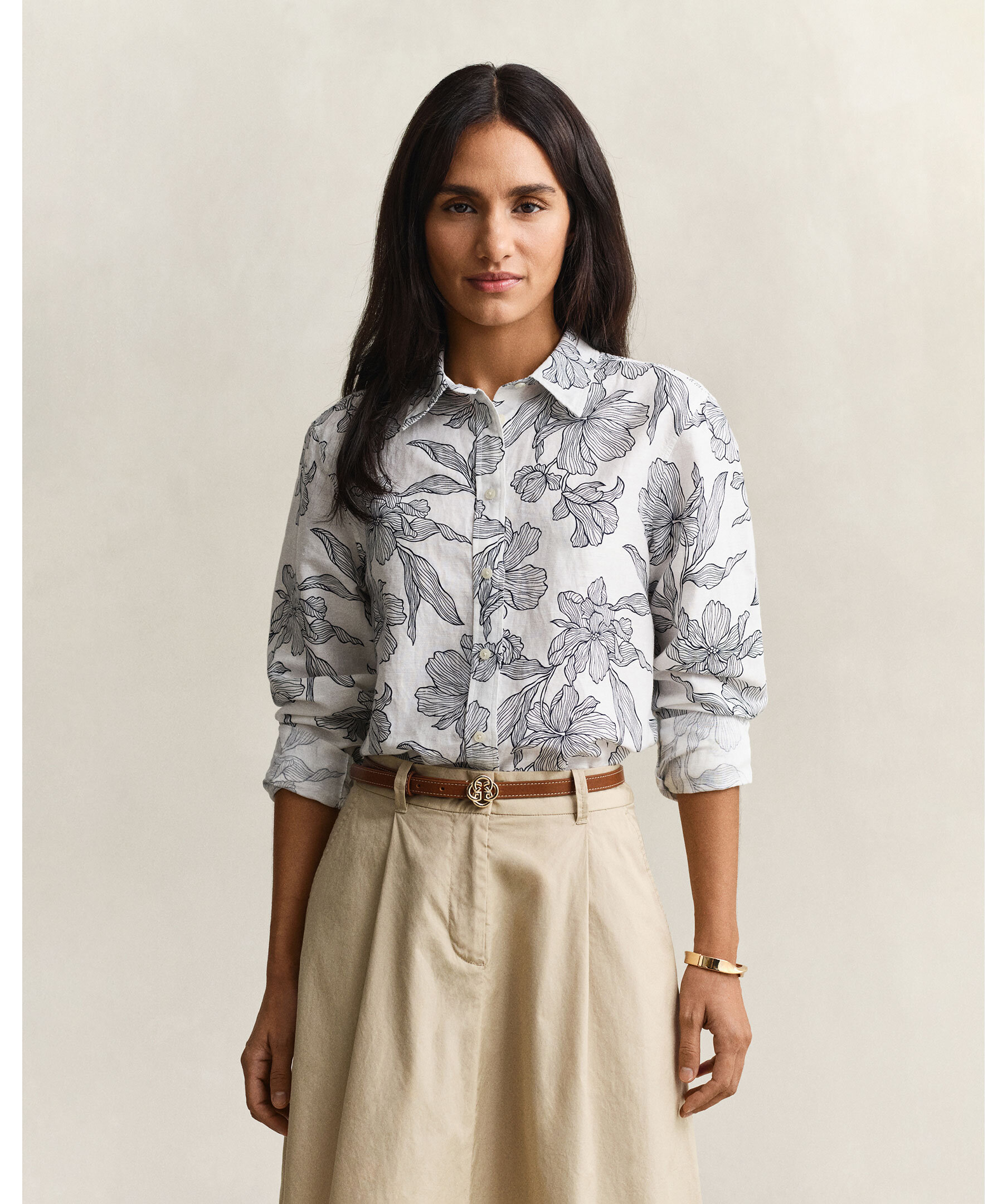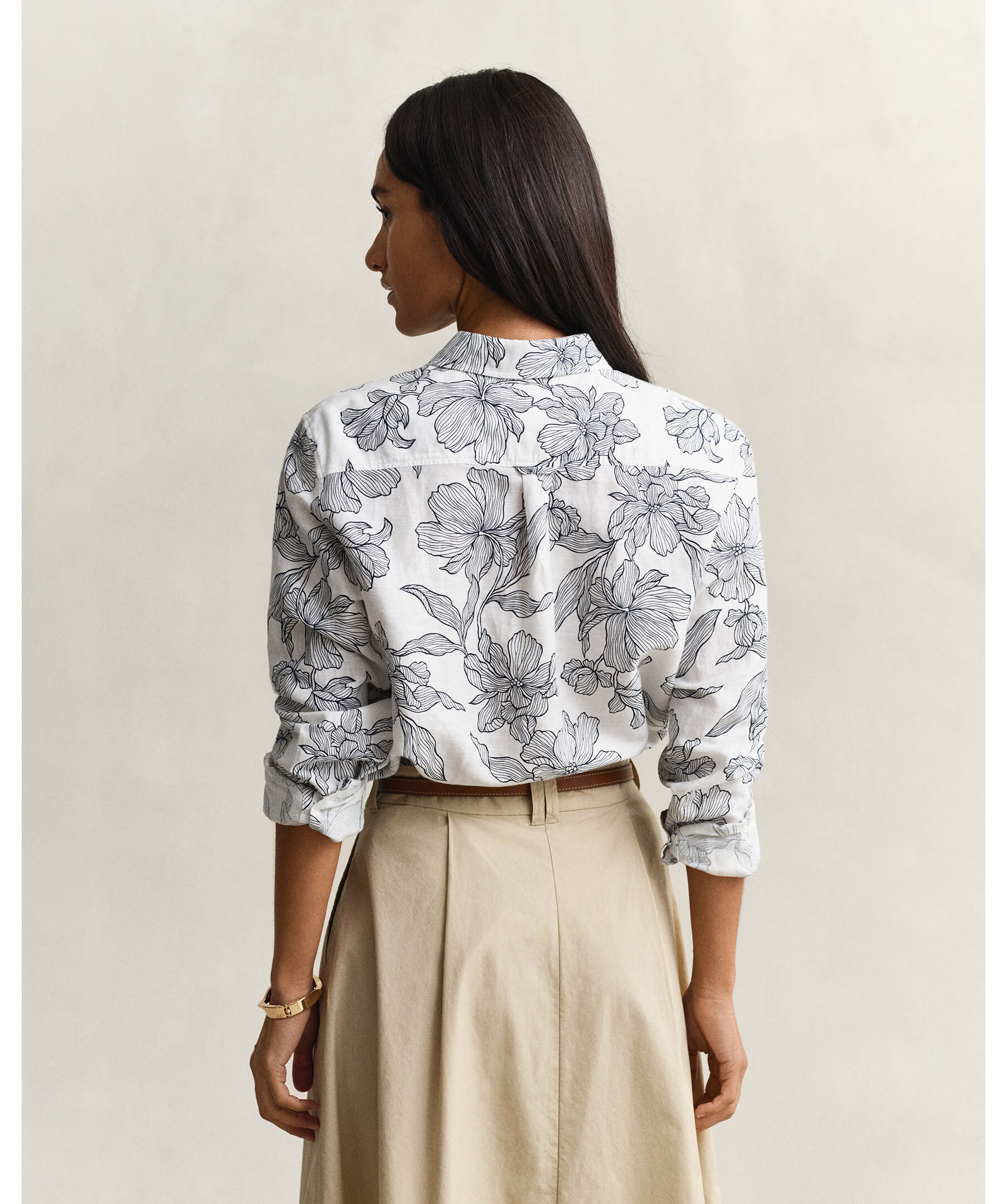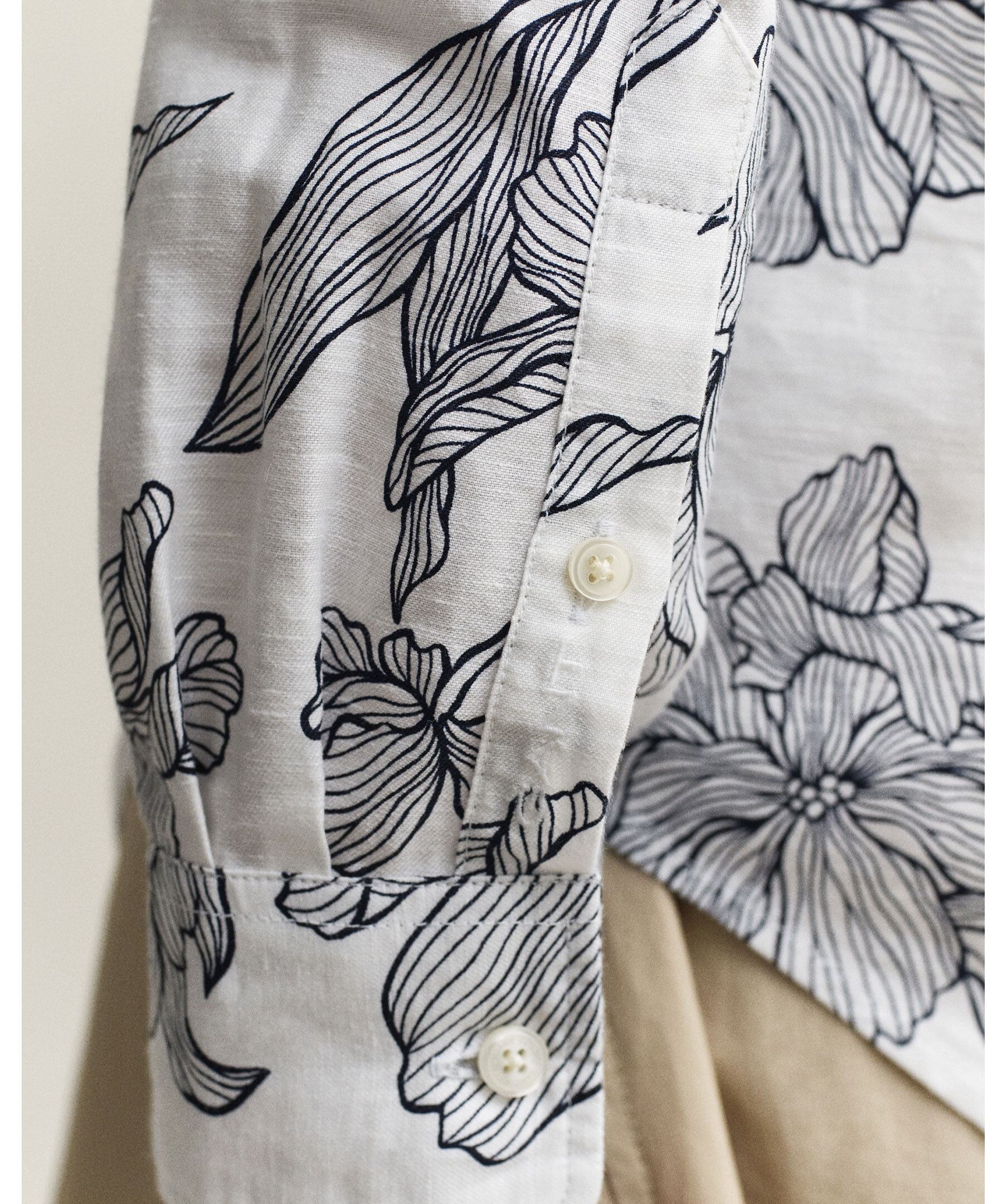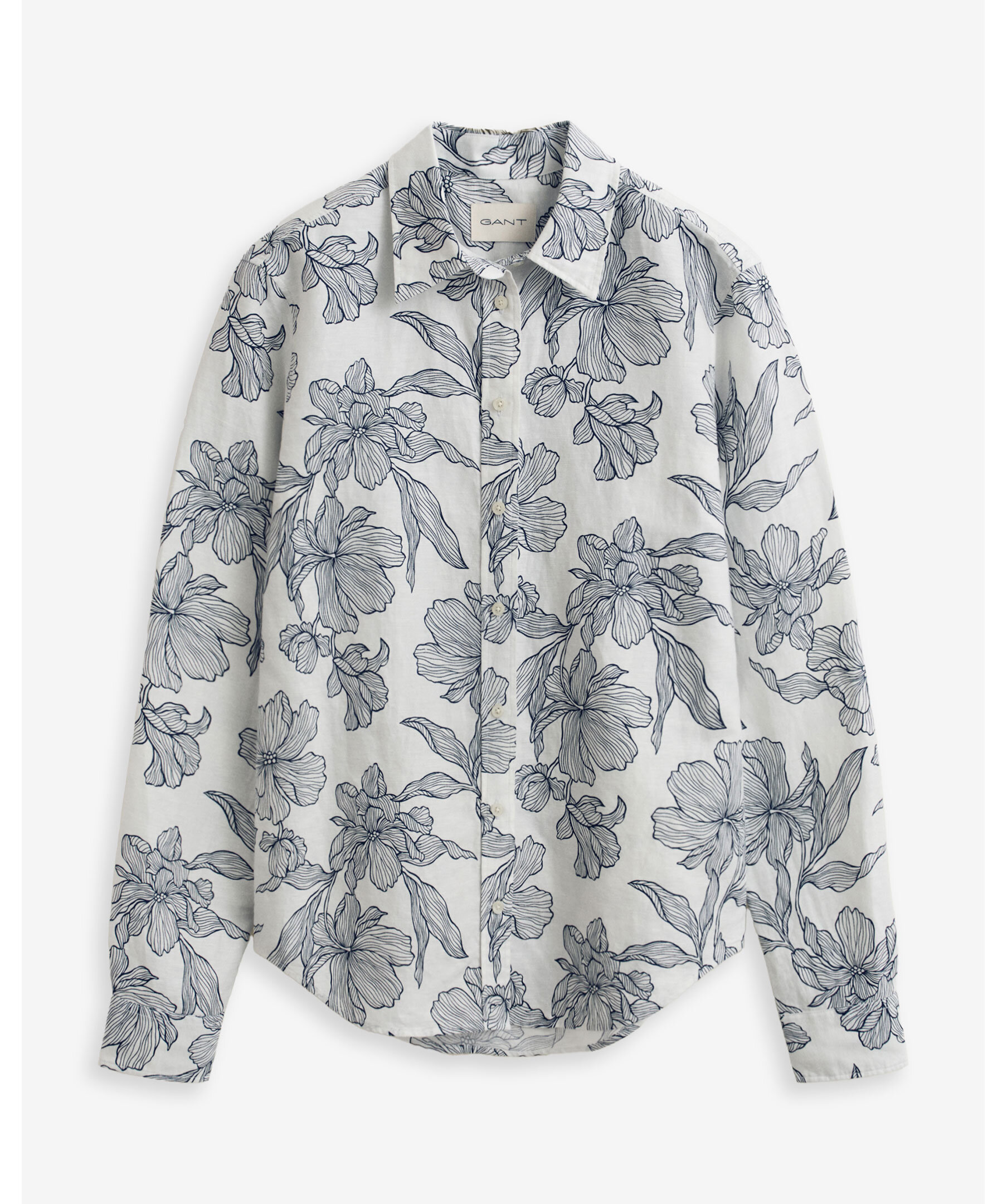 Blommig skjorta från Gant är tillverkad i en krispig lin- och bomullsblandning för lätt och luftig känsla. Normal passform med exklusiv blommönsterprint, spetskrage, rundad nederkant och justerbara manschetter. Boxveck och märkets hängögla baktill, samt diskret broderi på ärmslån ger en stilren finish.