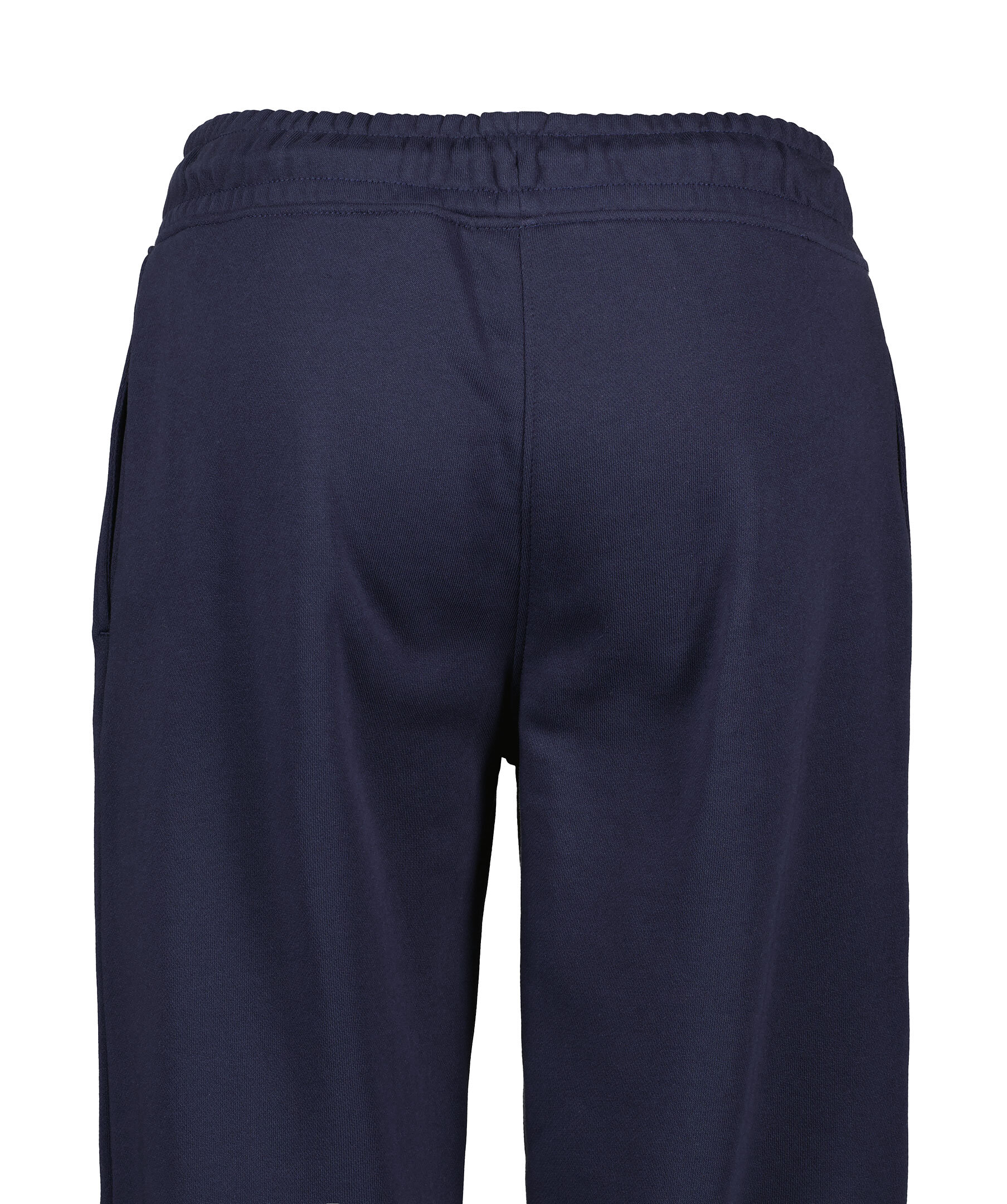 Marinblåa sweatpants med liten sköldlogotyp broderad på ena benet från Gant i en snygg kombination av klassiskt preppy och modernt streetwear. Byxorna är gjorda i en mjuk bomullsblandning och har en mellanhög midja, relaxed fit, resårmuddar, dragsko i midjan och sidfickor.