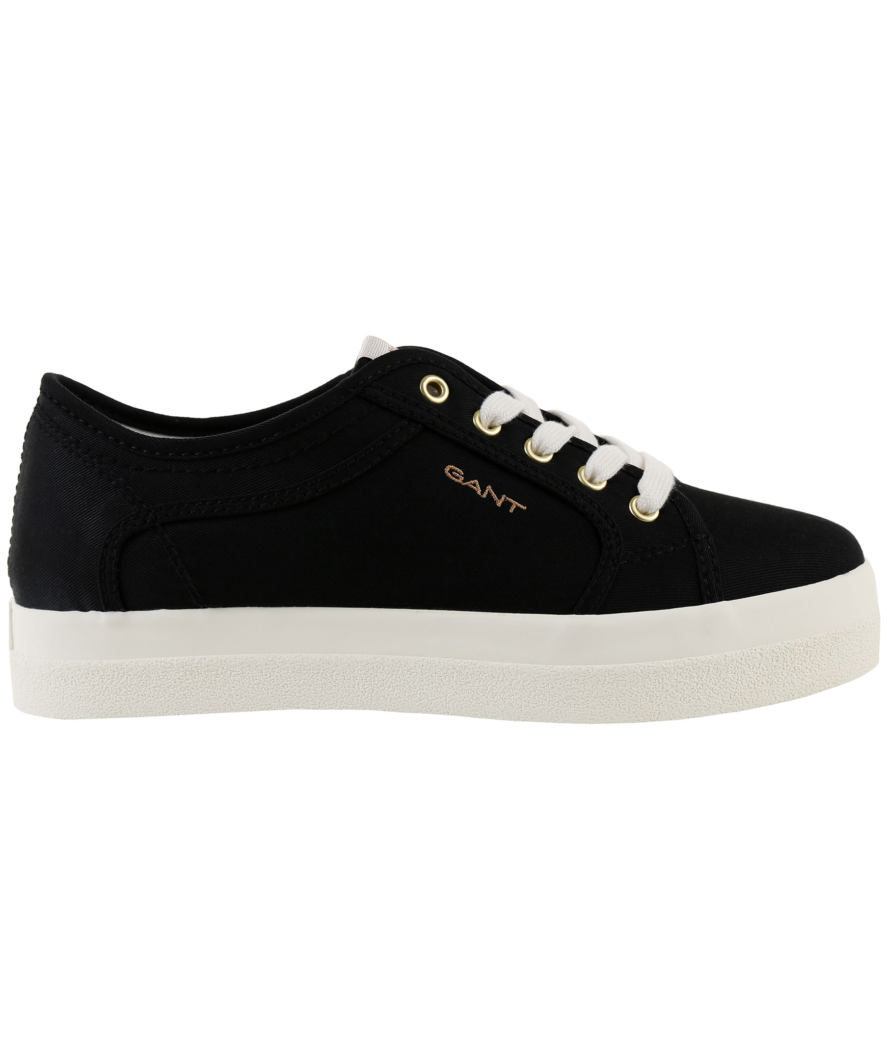 Svarta tygsneakers från Gant med en lätt platå. Broderad logga på sidan samt tygpatch på plösen. Vit gummisula med logga baktill.