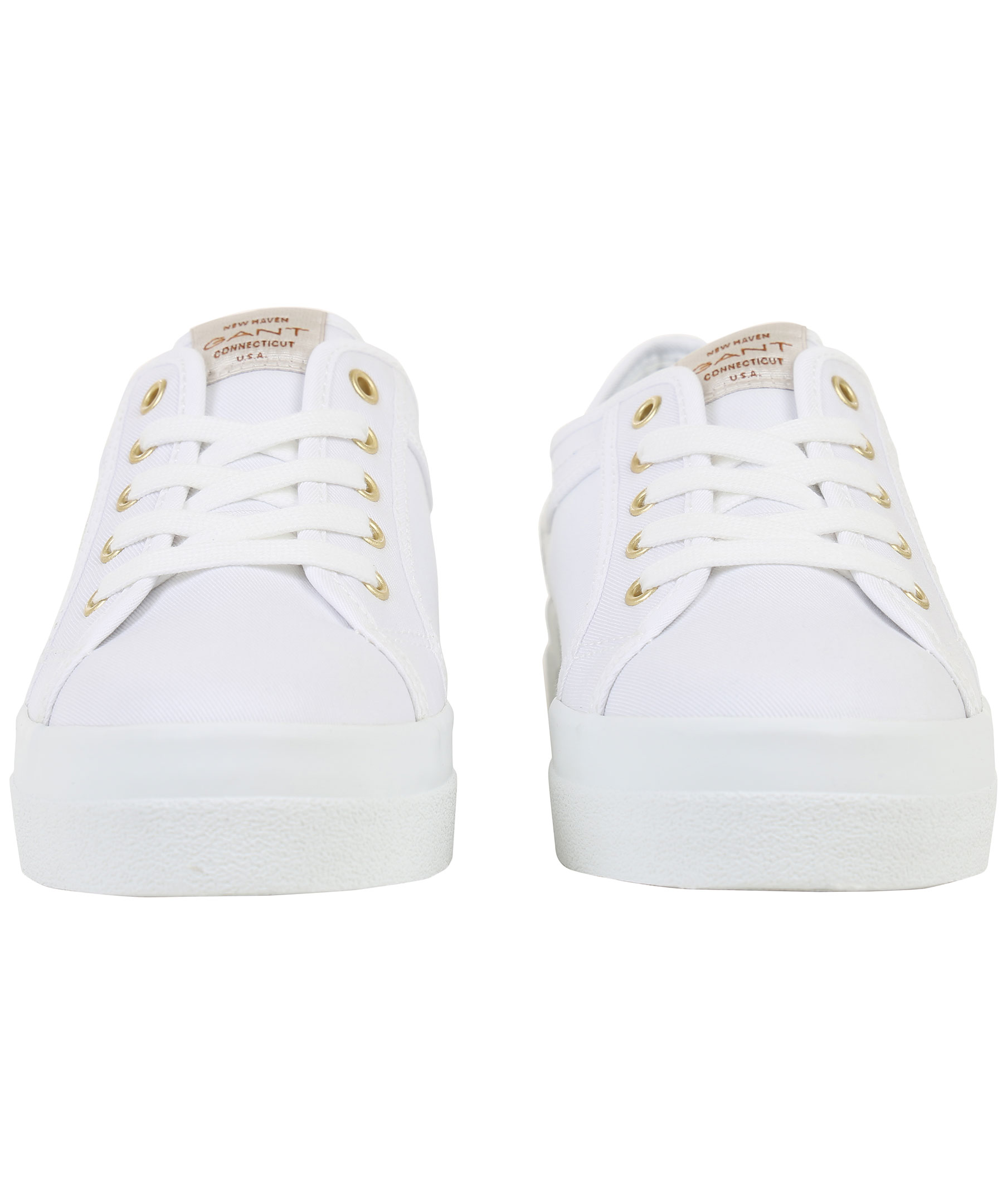 Vita tygsneakers från Gant med en lätt platå. Broderad logga på sidan samt tygpatch på plösen. Vit gummisula med liten logga baktill.