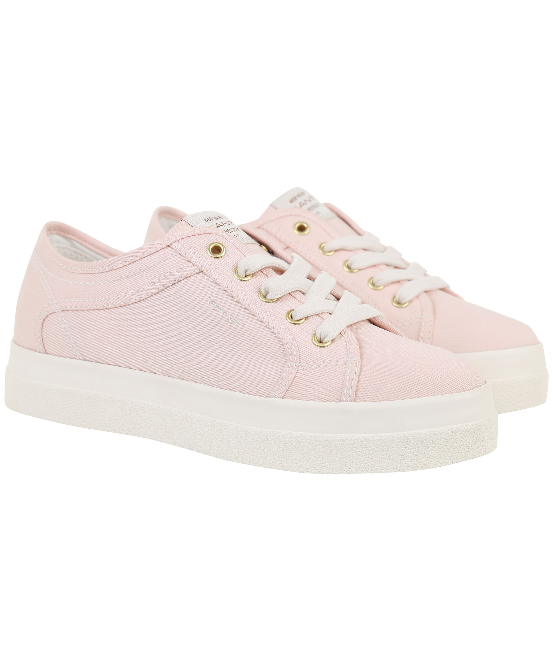 Rosa tygsneakers från Gant med en lätt platå. Broderad logga på sidan samt en tygpatch på plösen. Vit gummisula med logga baktill.