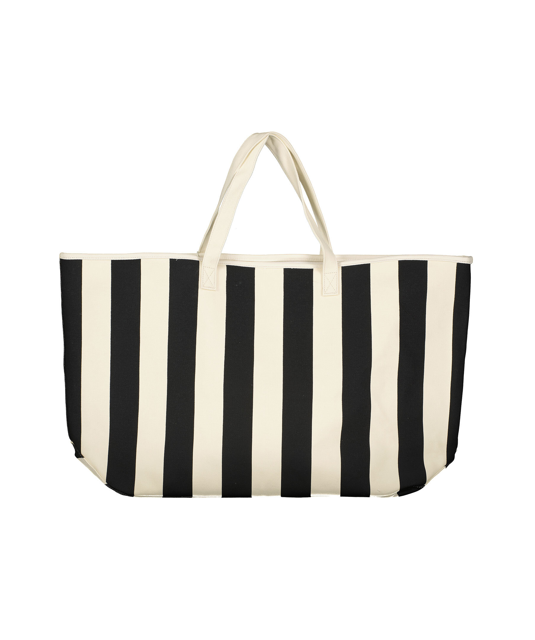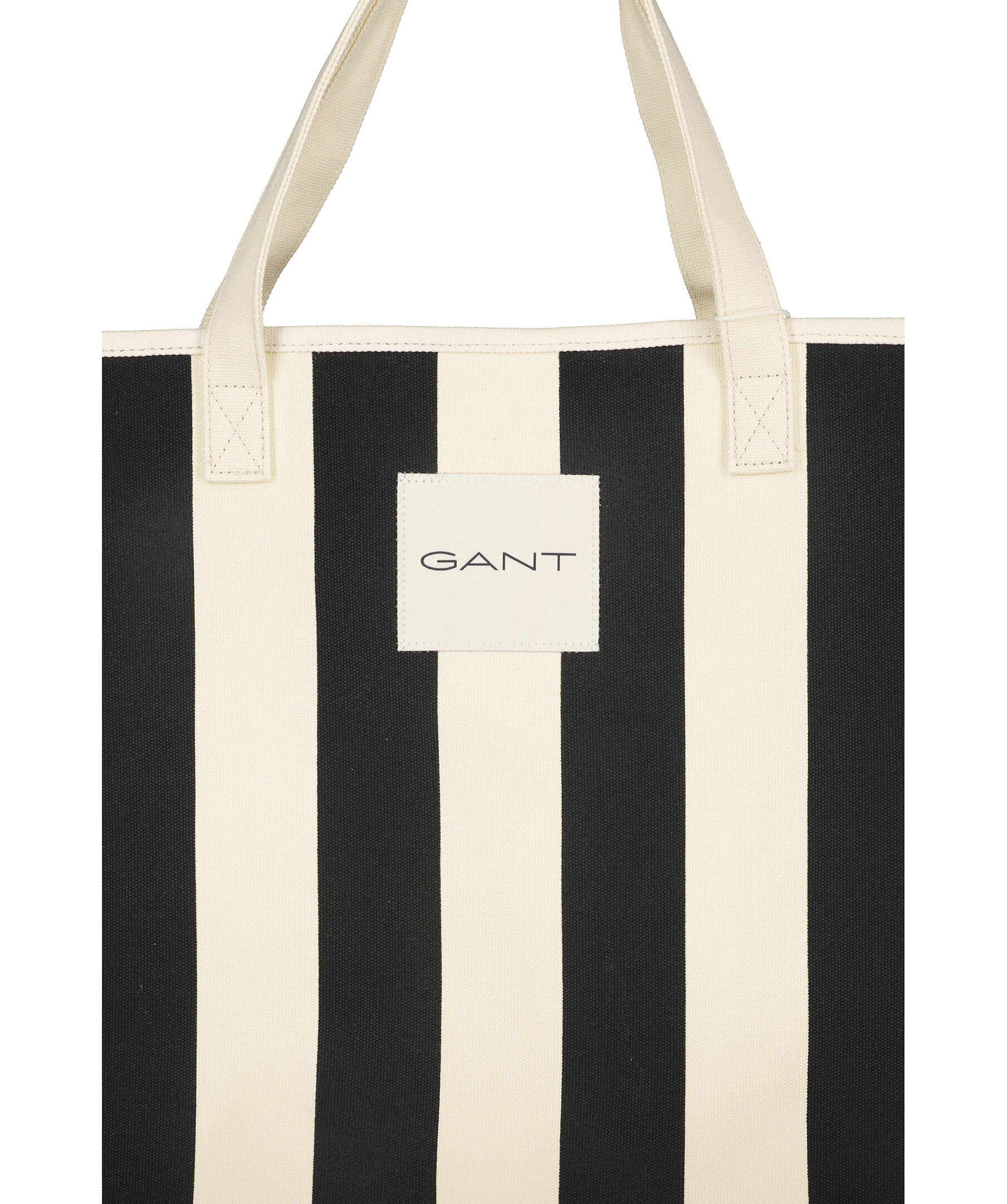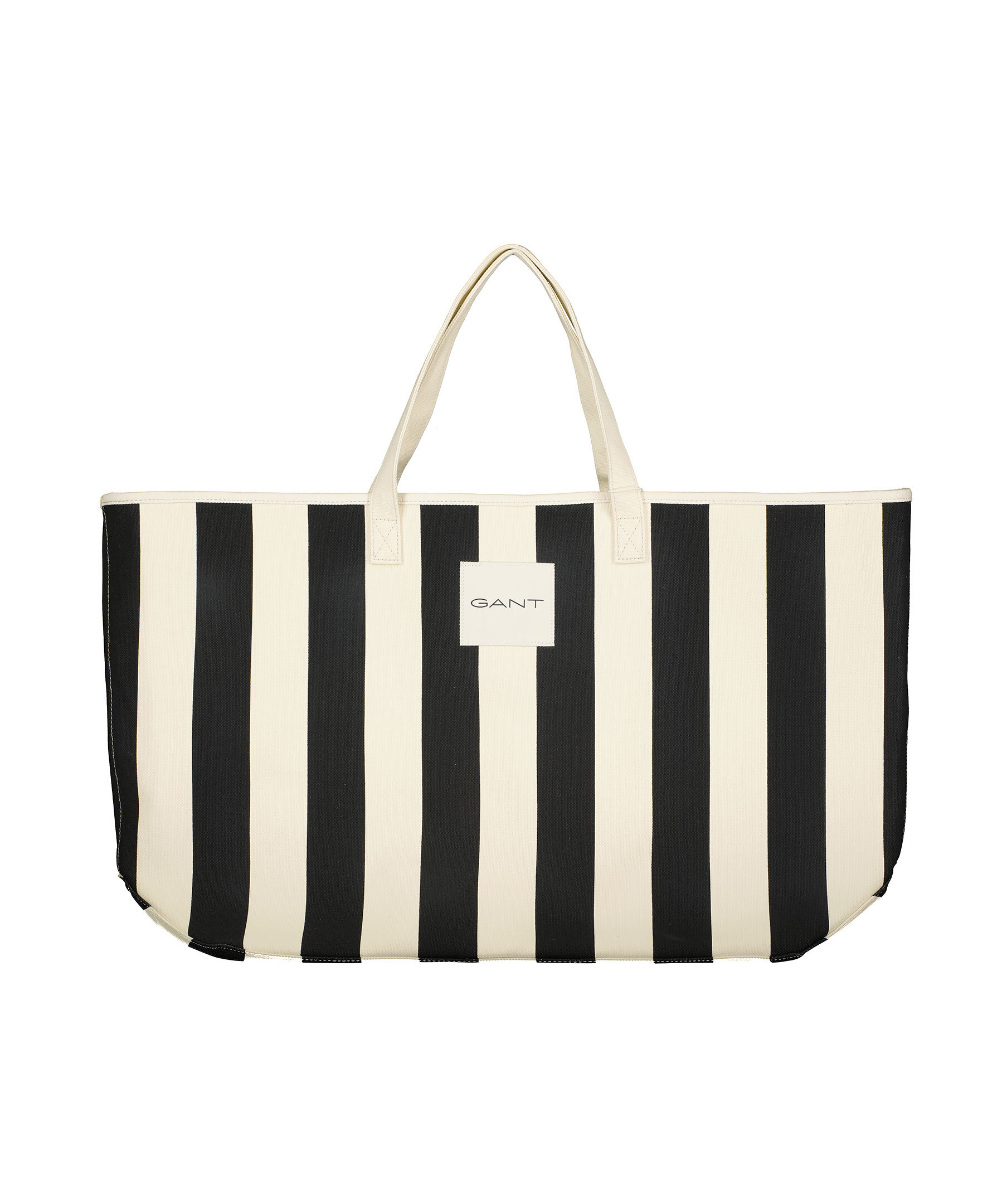 Stor, svart och benvit, randig strandväska från Gant i canvas. Väskan är gjord i 100% bomull och har vertikala ränder med innerficka, sidkilar och ett vävt GANT-märke på framsidan. Mått: B: 44cm, H: 40cm, D: 17cm