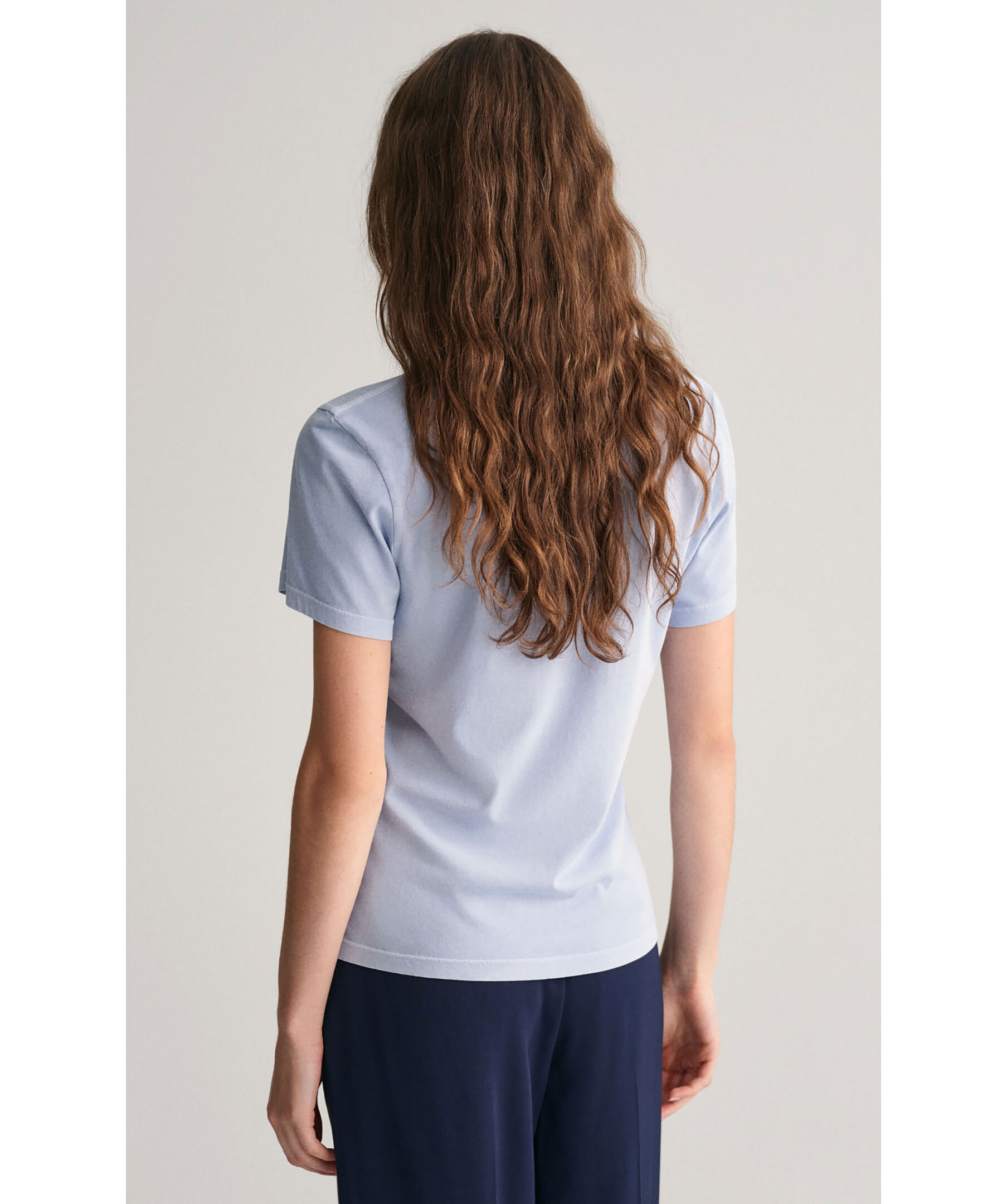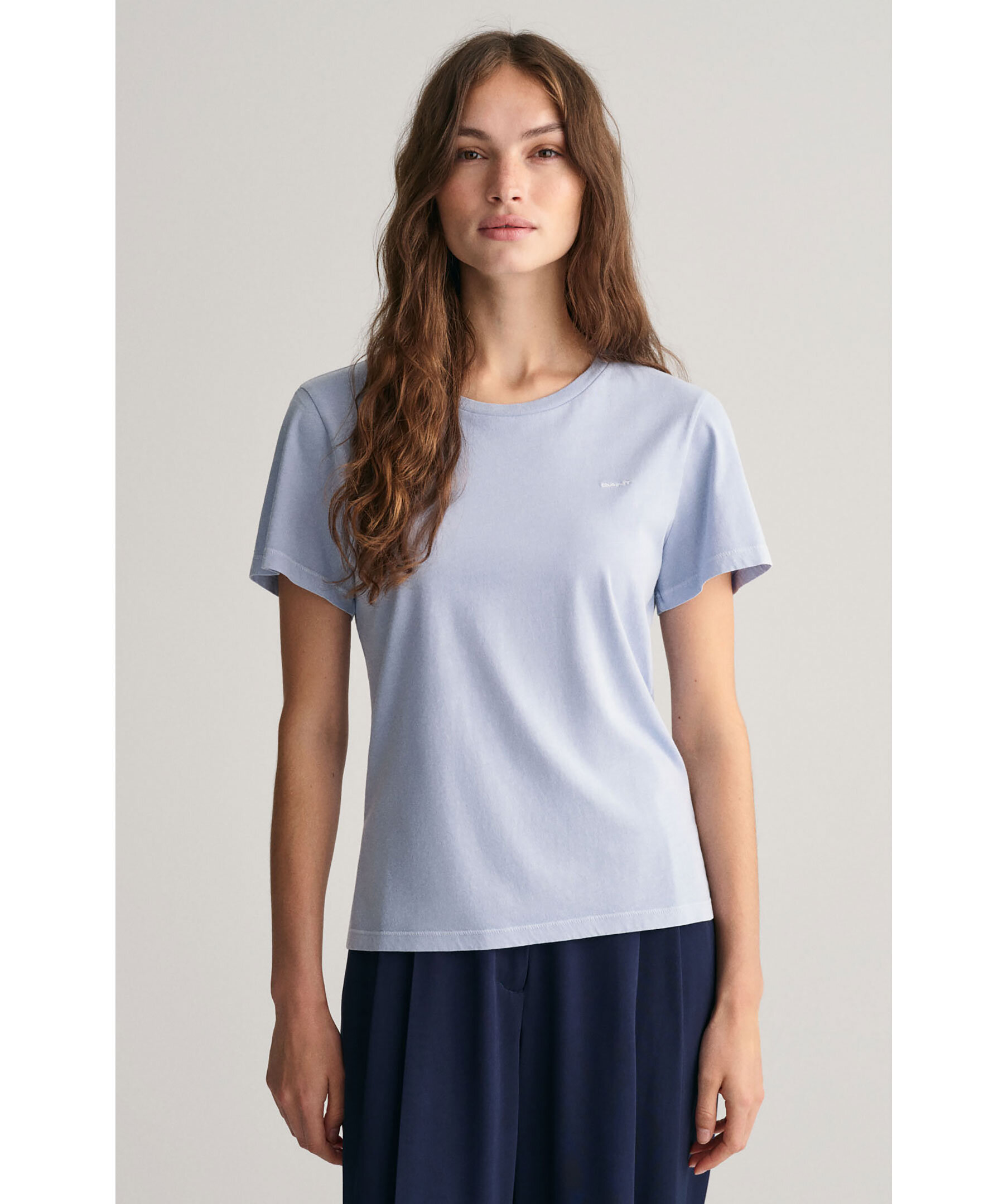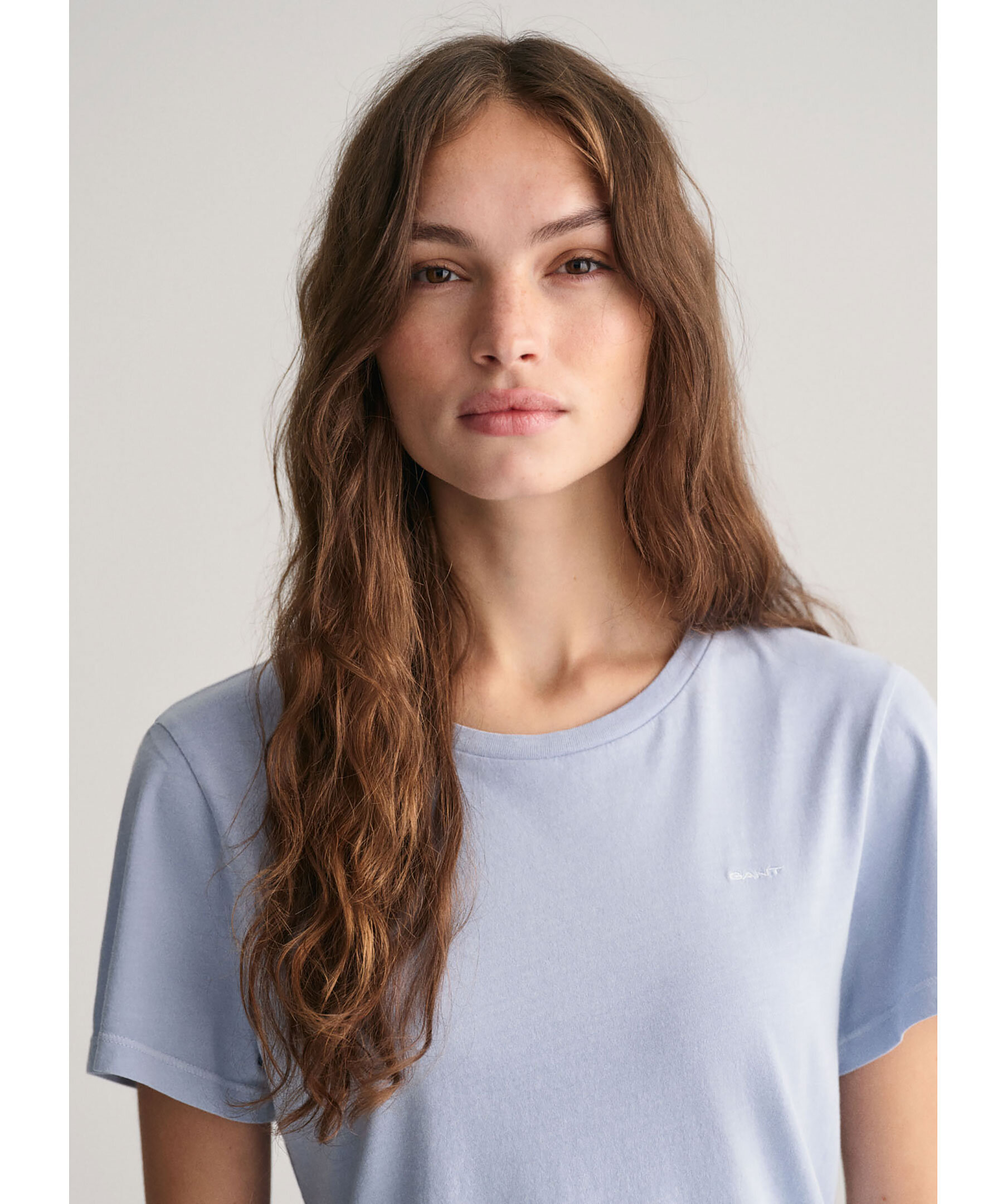 Dovt blå t-shirt från Gant. Tillverkad i 100% bomull. T-shirten har en lätt solblekt effekt. Den har en rund, ribbstickad halsringning och deras klassiska GANT-logotyp broderad på bröstet. Normal passform.