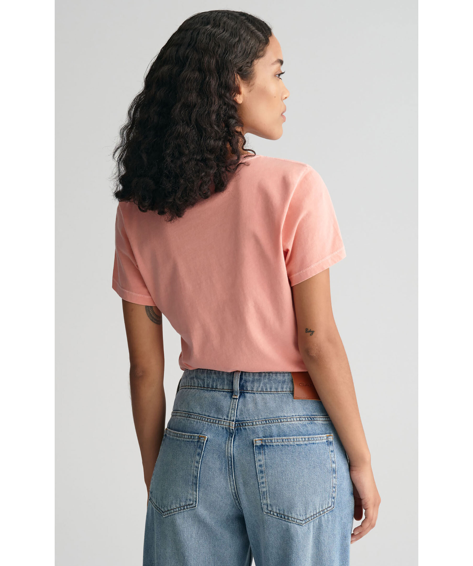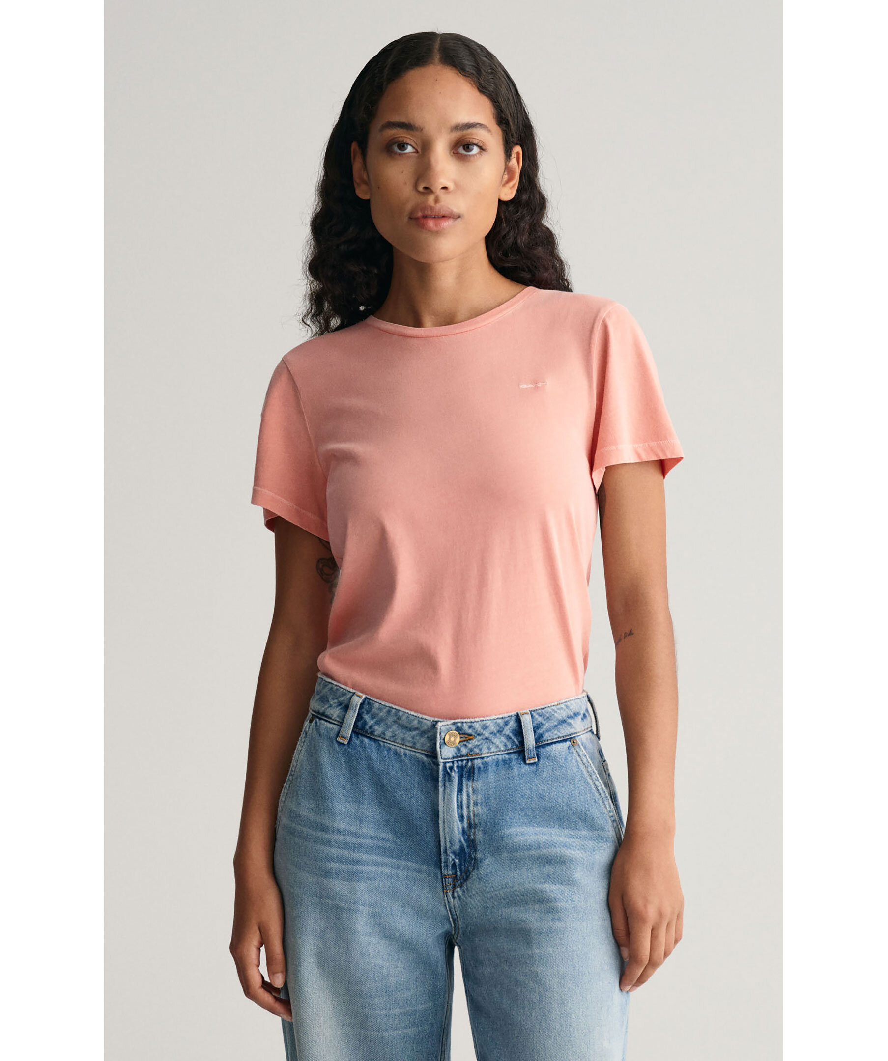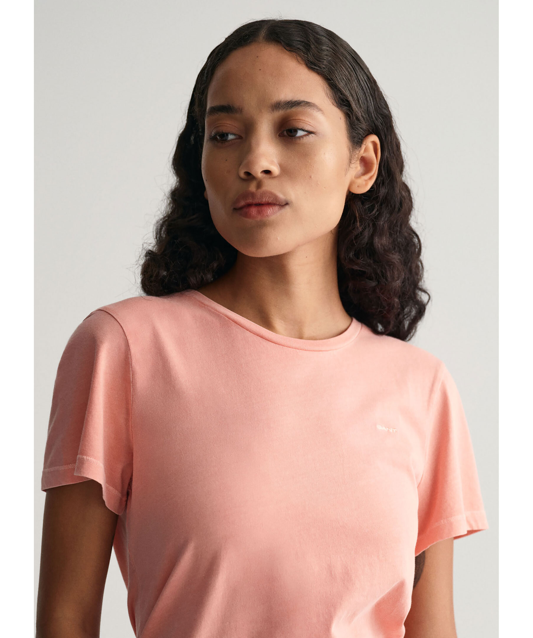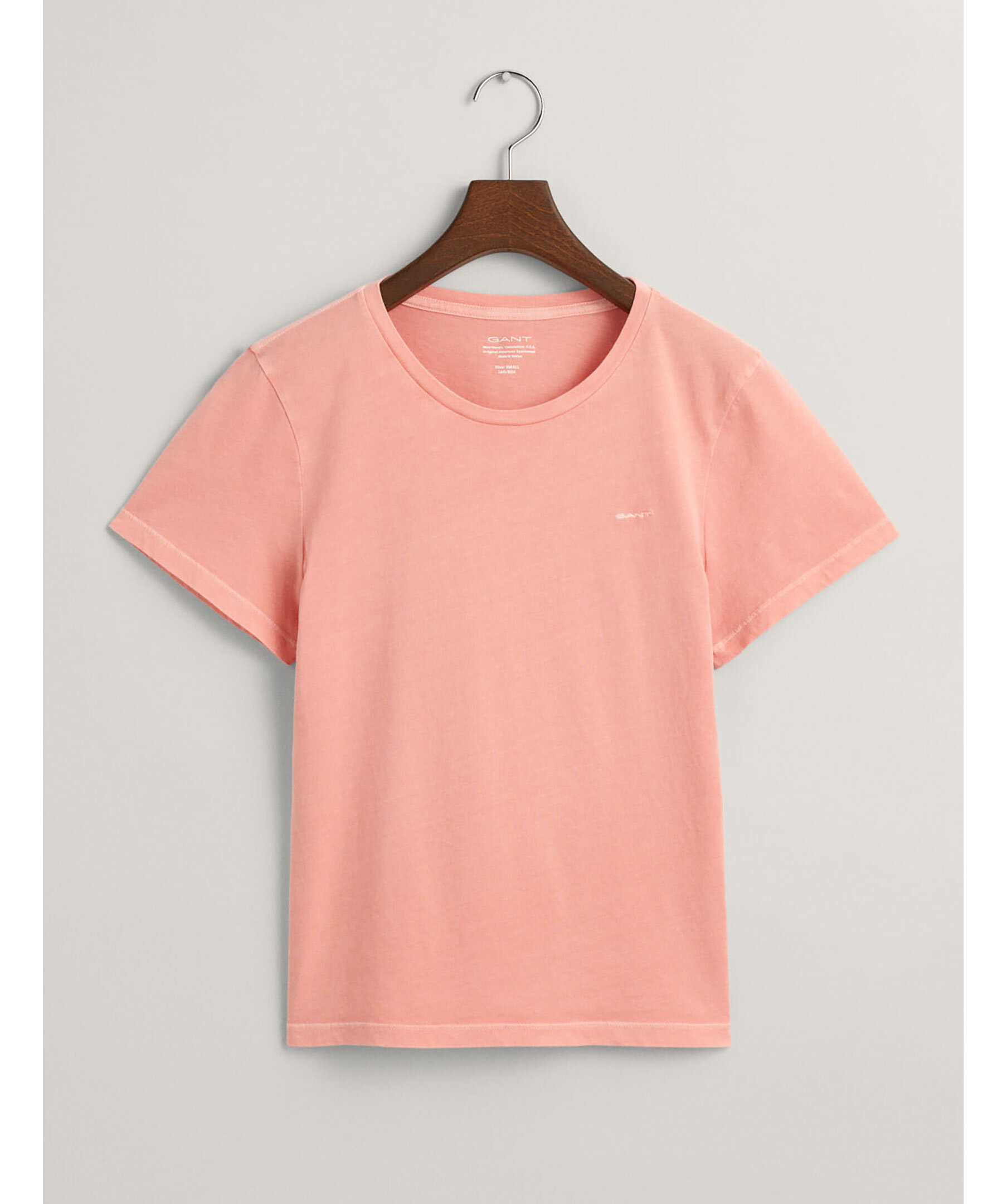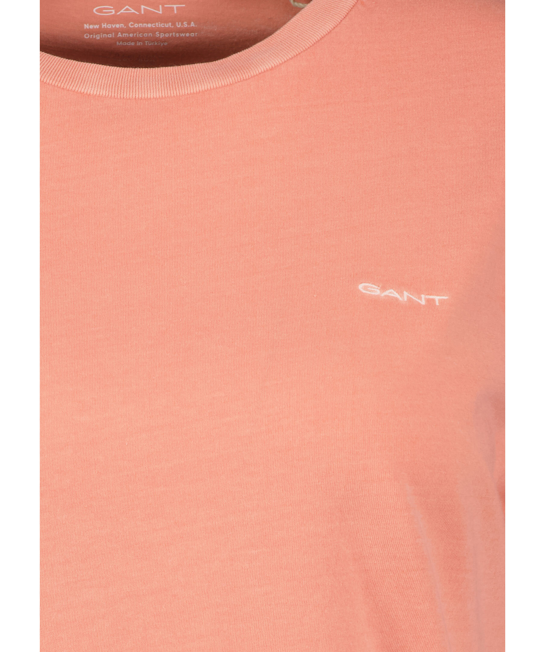 Korallröd t-shirt från Gant. Tillverkad i 100% bomull. T-shirten har en lätt solblekt effekt. Den har en rund, ribbstickad halsringning och deras klassiska GANT-logotyp broderad på bröstet. Normal passform.