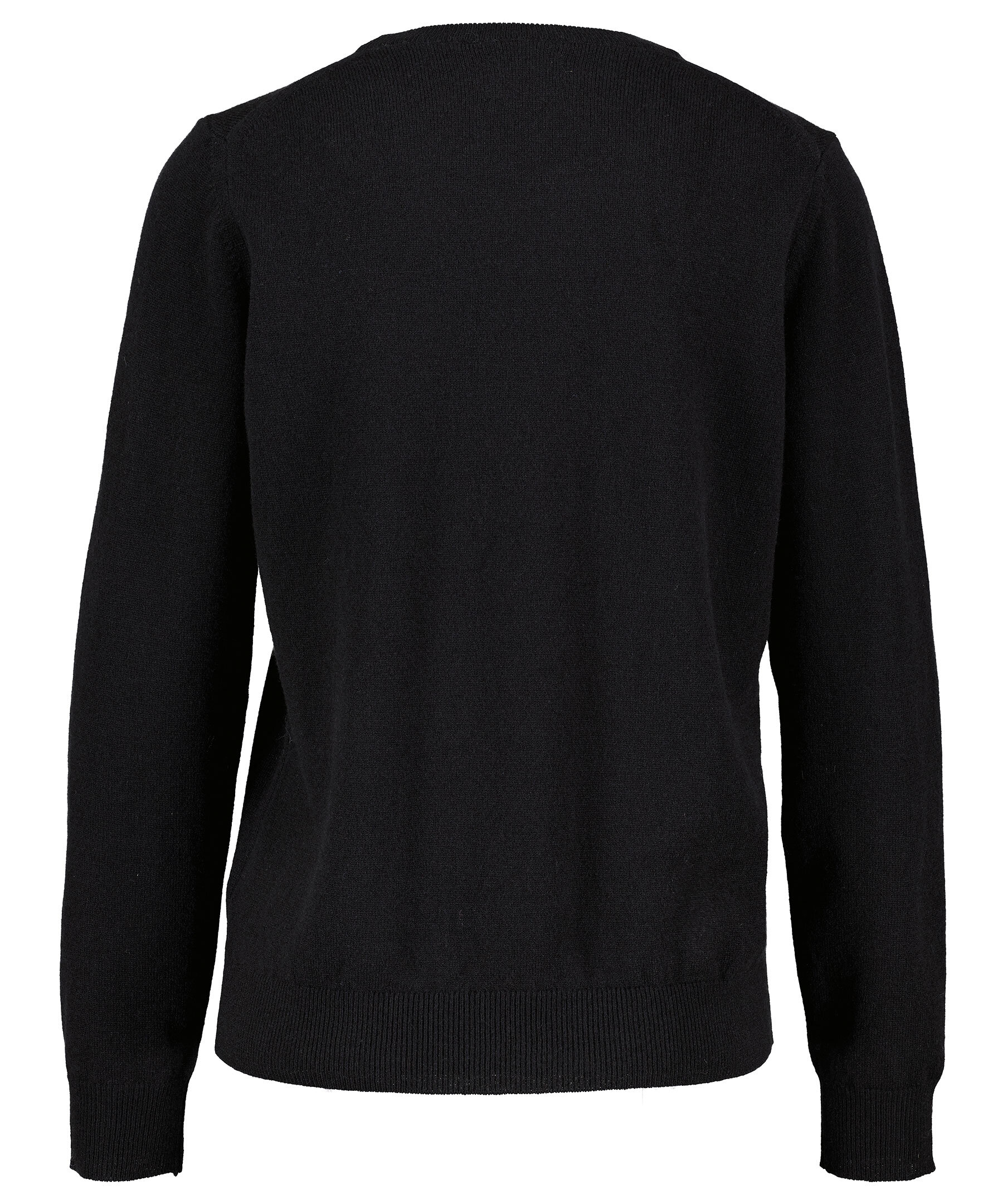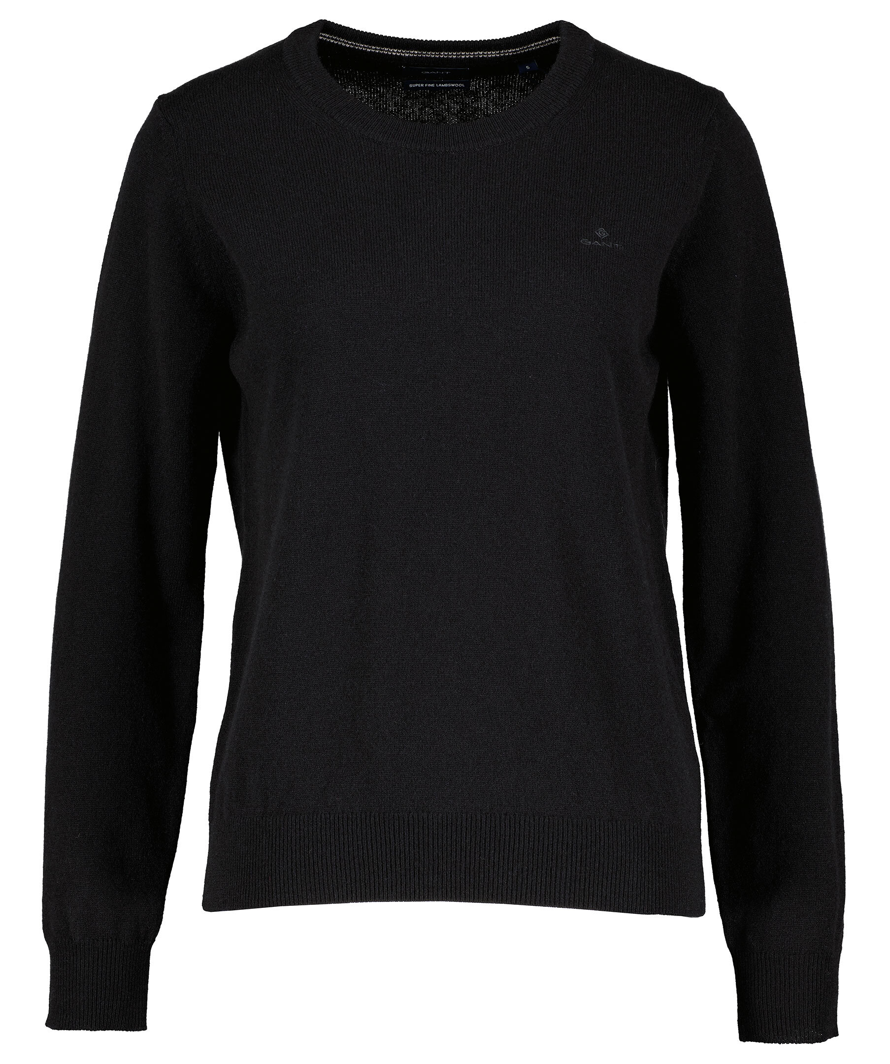 Svart, finstickad tröja i 100% ull från Gant. Rak passform och diskret logotyp på vänster sida av bröstet.