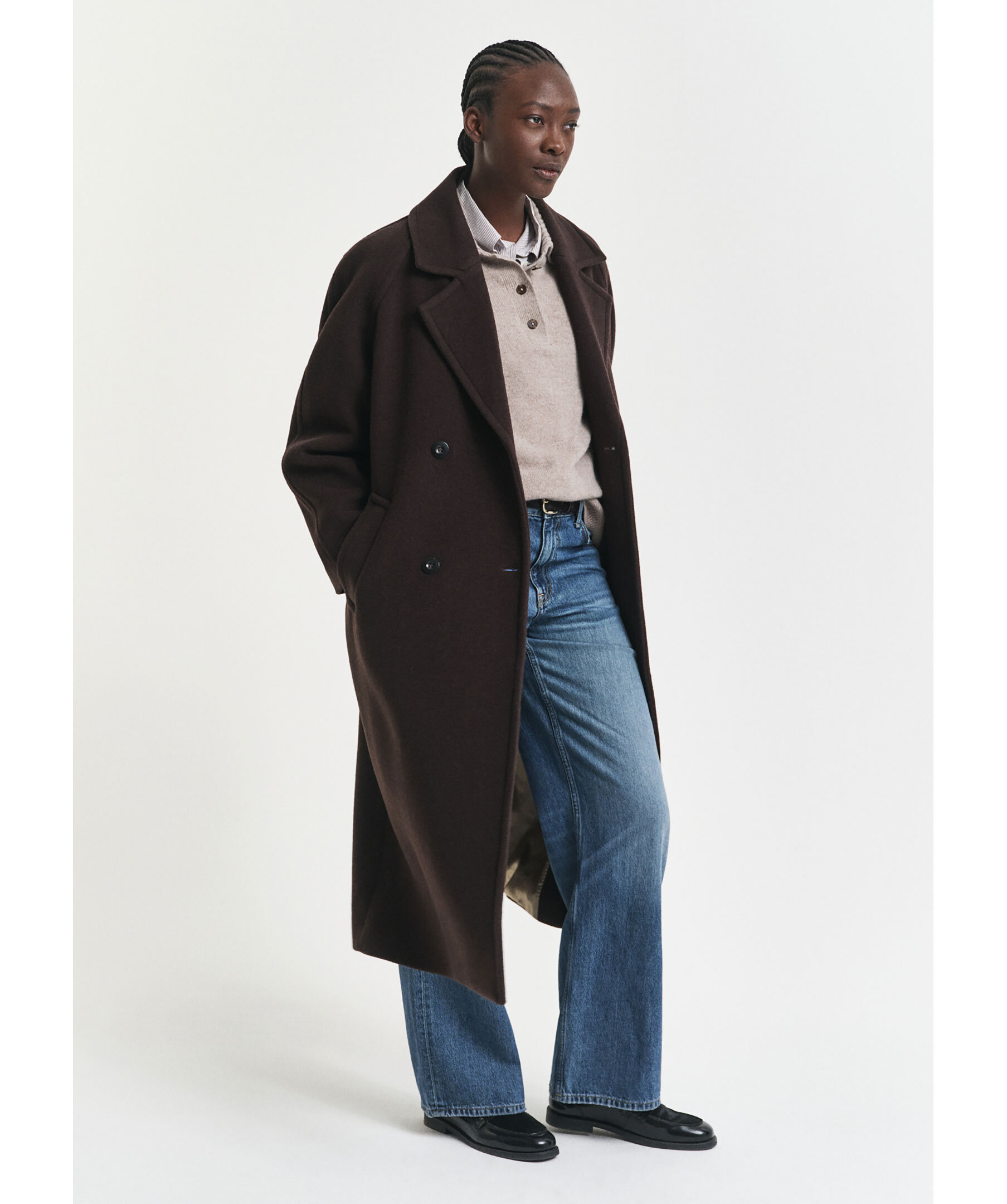 Greige, långärmad, stickad tröja från Gant. Tröjan har knäppning vid halsöppningen samt ribbstickade muddar. Tillverkad i en blandning av mjuk italiensk ull och kashmir.