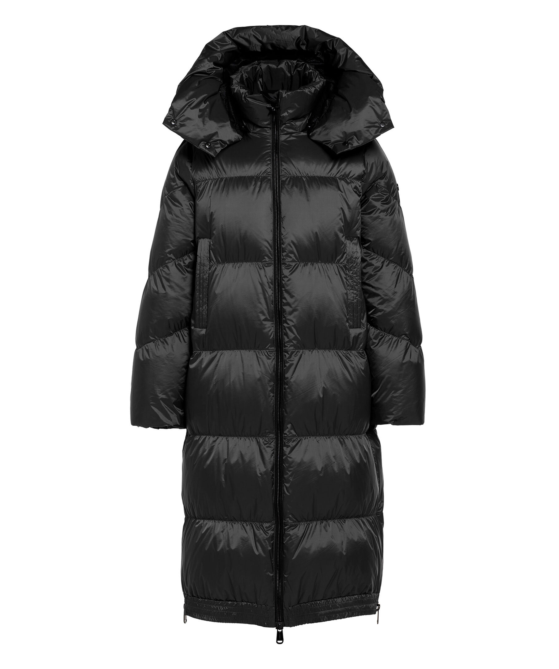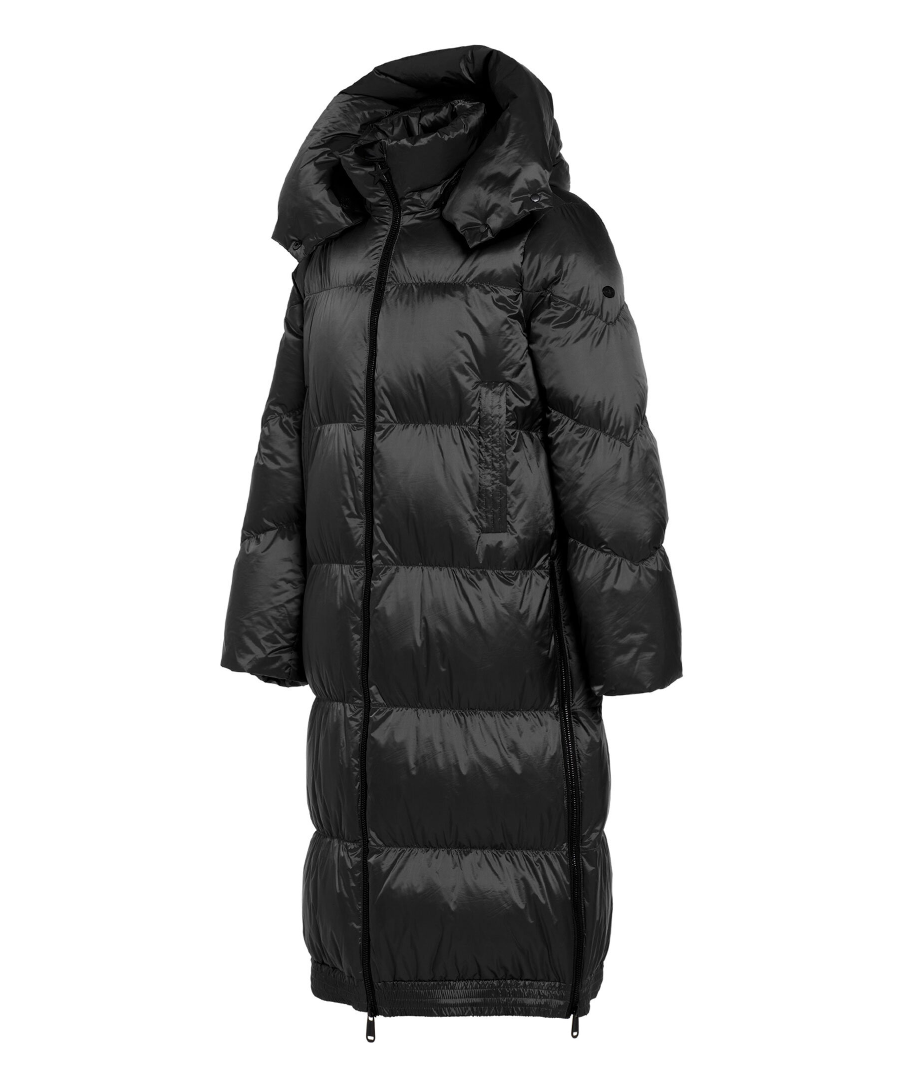 Svart långjacka från Goldbergh. Jackan har två ytterfickor och en innerficka, samt en avtagbar huva. Stickade muddar på insidan av ärmarna. Jackan stängs med tvåvägsdragkedja. Tillverkad i 100% återvunnen polyamid. Normal passform.