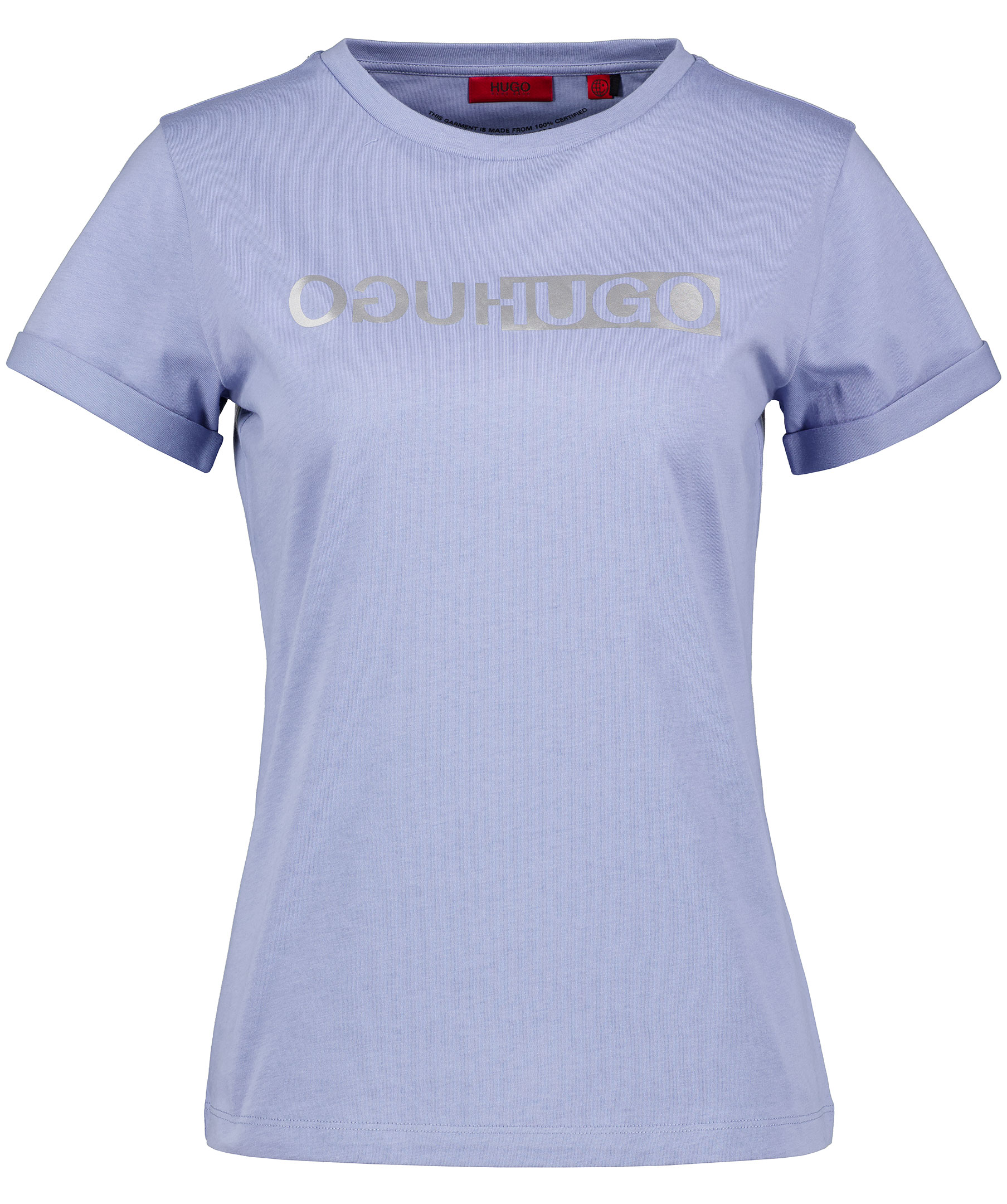 Ljusblå t-shirt från Hugo, Hugo Boss. Smal passform. Gjord 100% bomull, silvrig logotyp mitt på bröstet. Rundad halsringning, korta, upprullade ärmar. * Tryckt logotyp * Smal passform * Upprullade ärmar