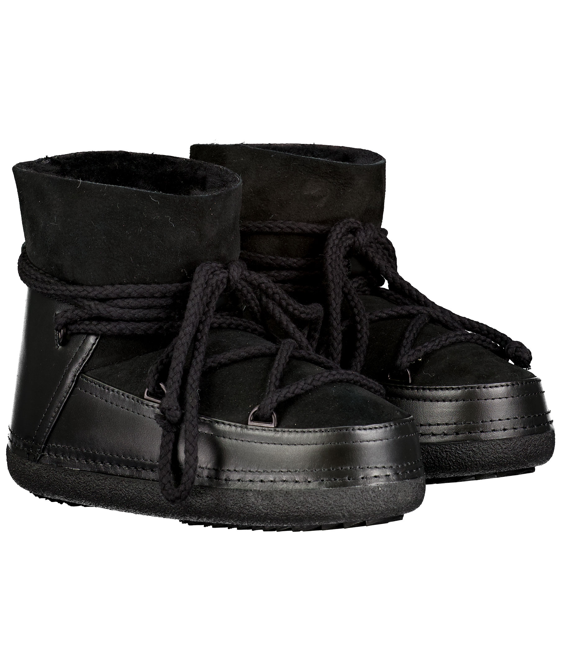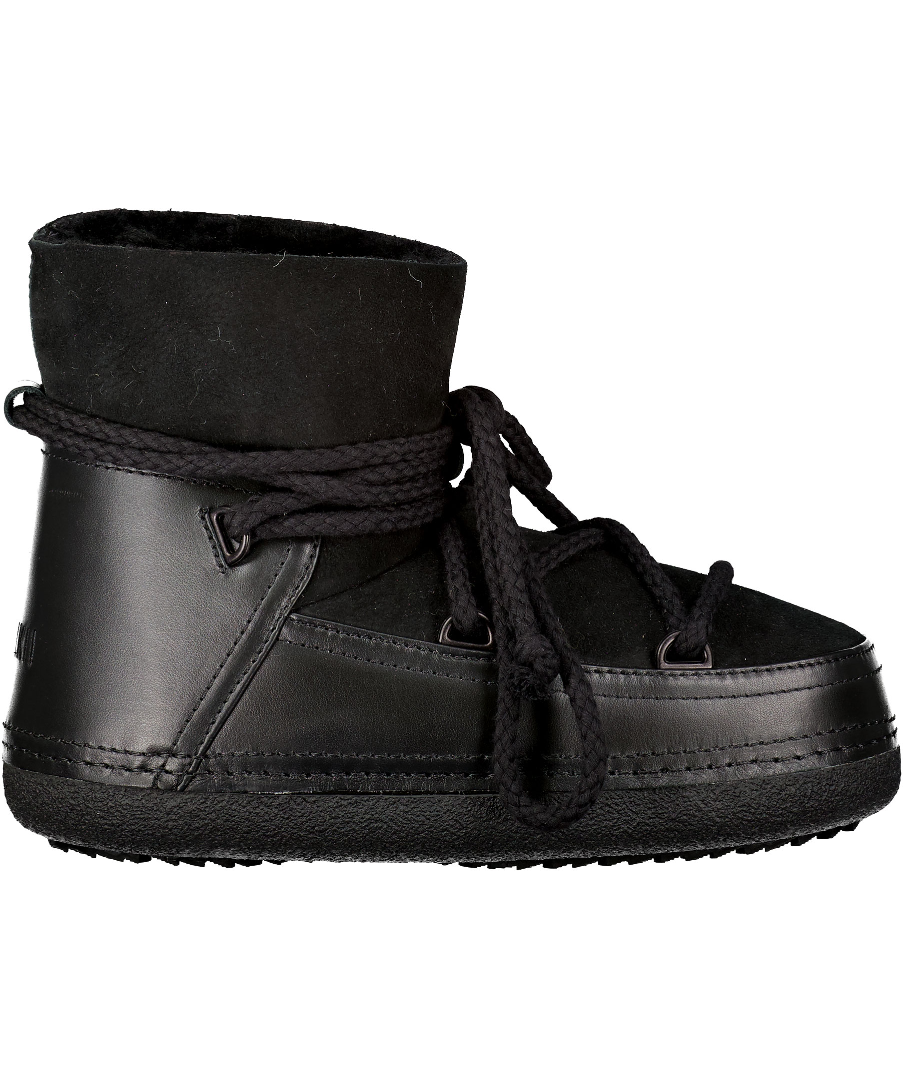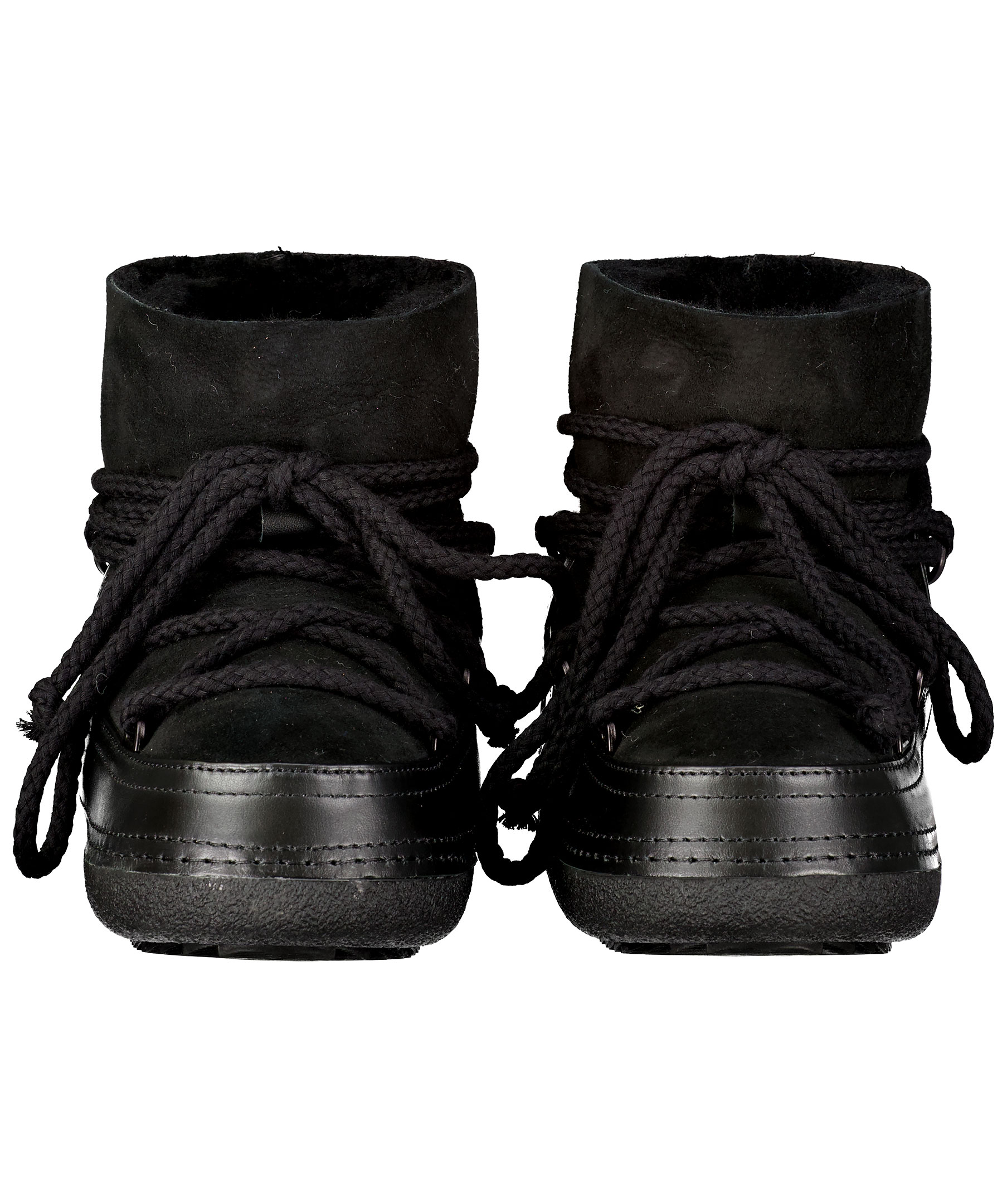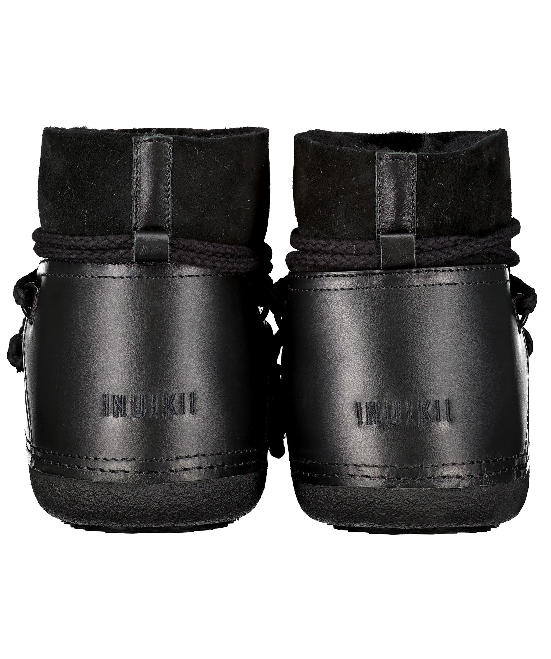 Svarta och breda, varmfodrade skor från Inuikii. Foder i fårskinn, detaljer i läder och sula i gummi. Rundad tå samt snörning fram. Broderad logotyp bak på hälen.
