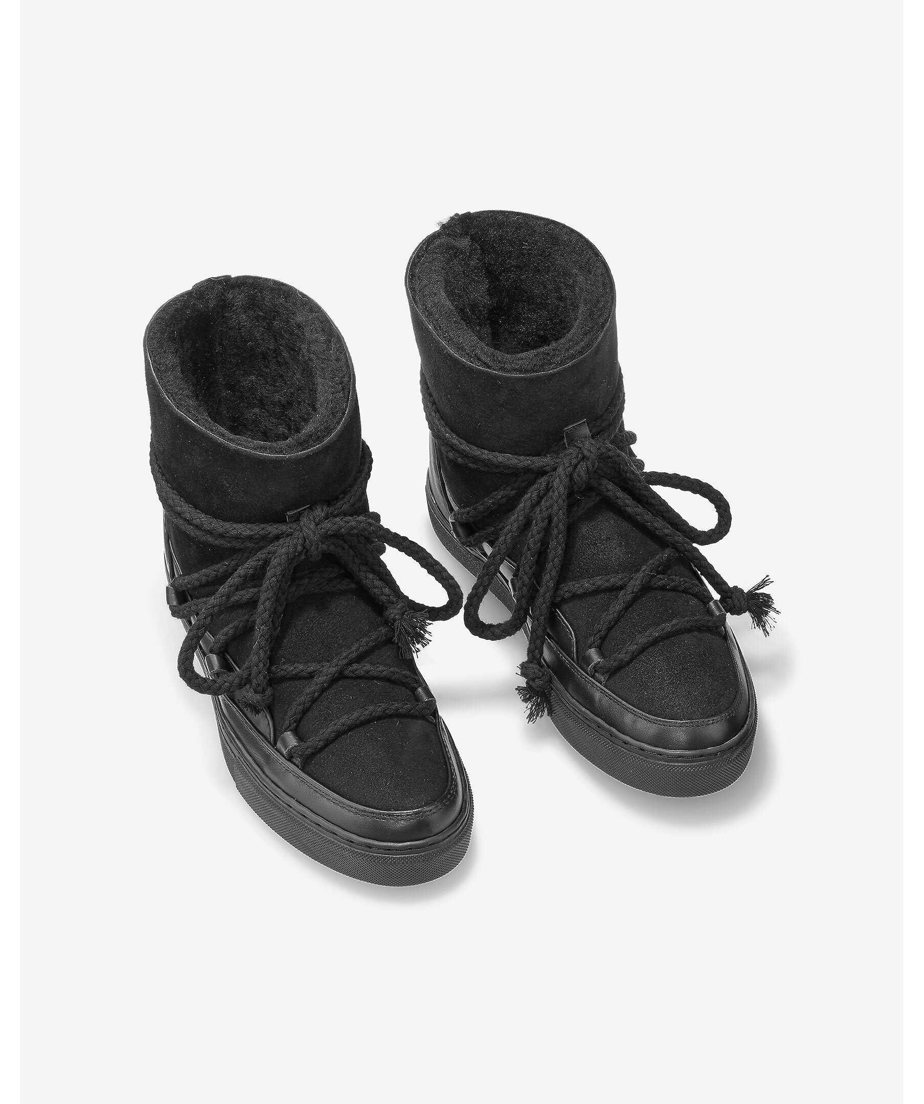 Svarta, varmfodrade skor från Inuikii. Foder och yttermaterial i fårskinn och detaljer i läder. Sula i gummi. Rundad tå samt snörning fram. Broderad logotyp bak på hälen.
