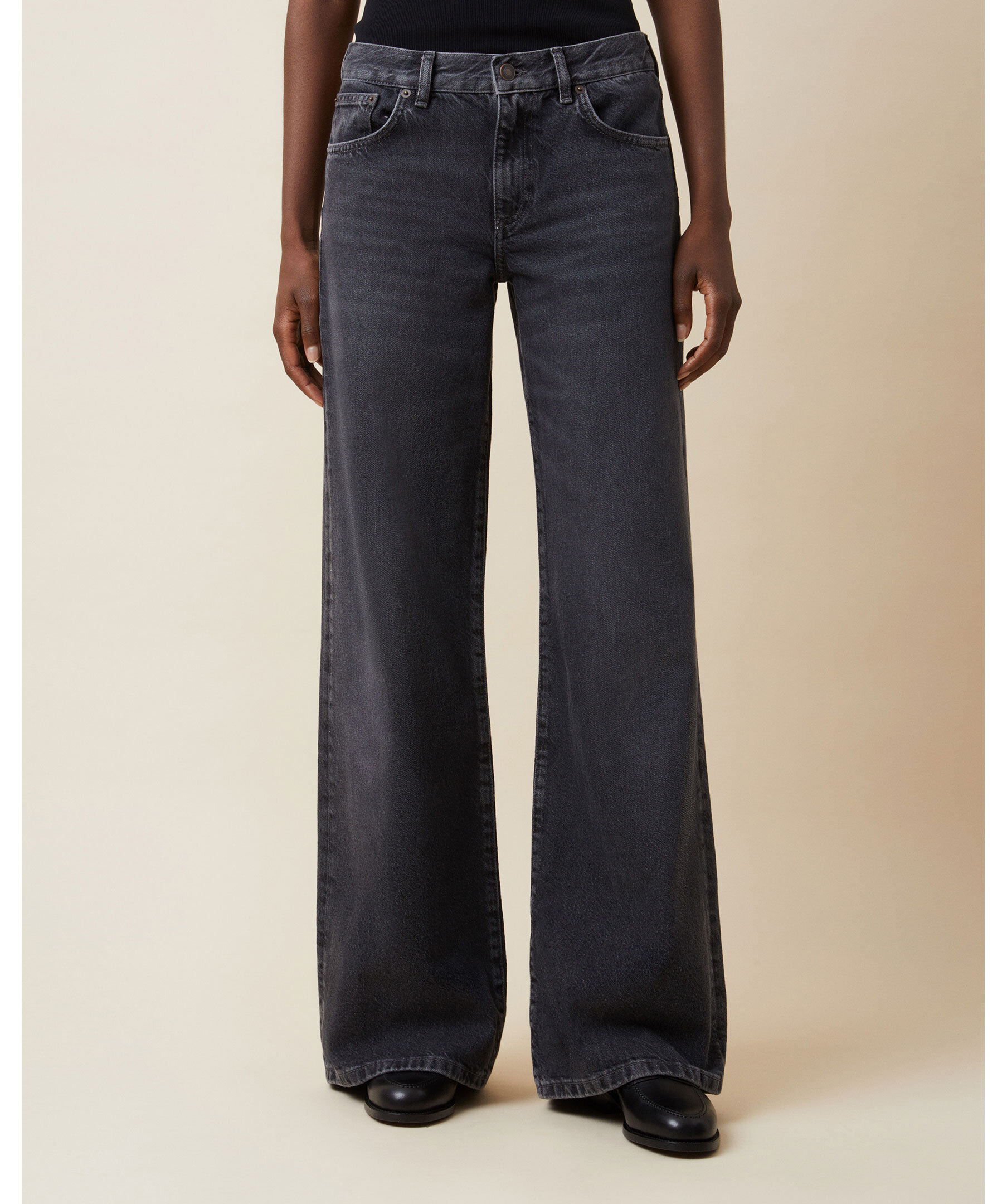 Lågmidjade jeans från Jeanerica med vida, utsvängda ben som skapar en cool retro-silhuett. Jeansen har dragkedjegylf, fem fickor och en avslappnad passform med klassiskt denimfall — perfekt för både vardag och festliga outfits.