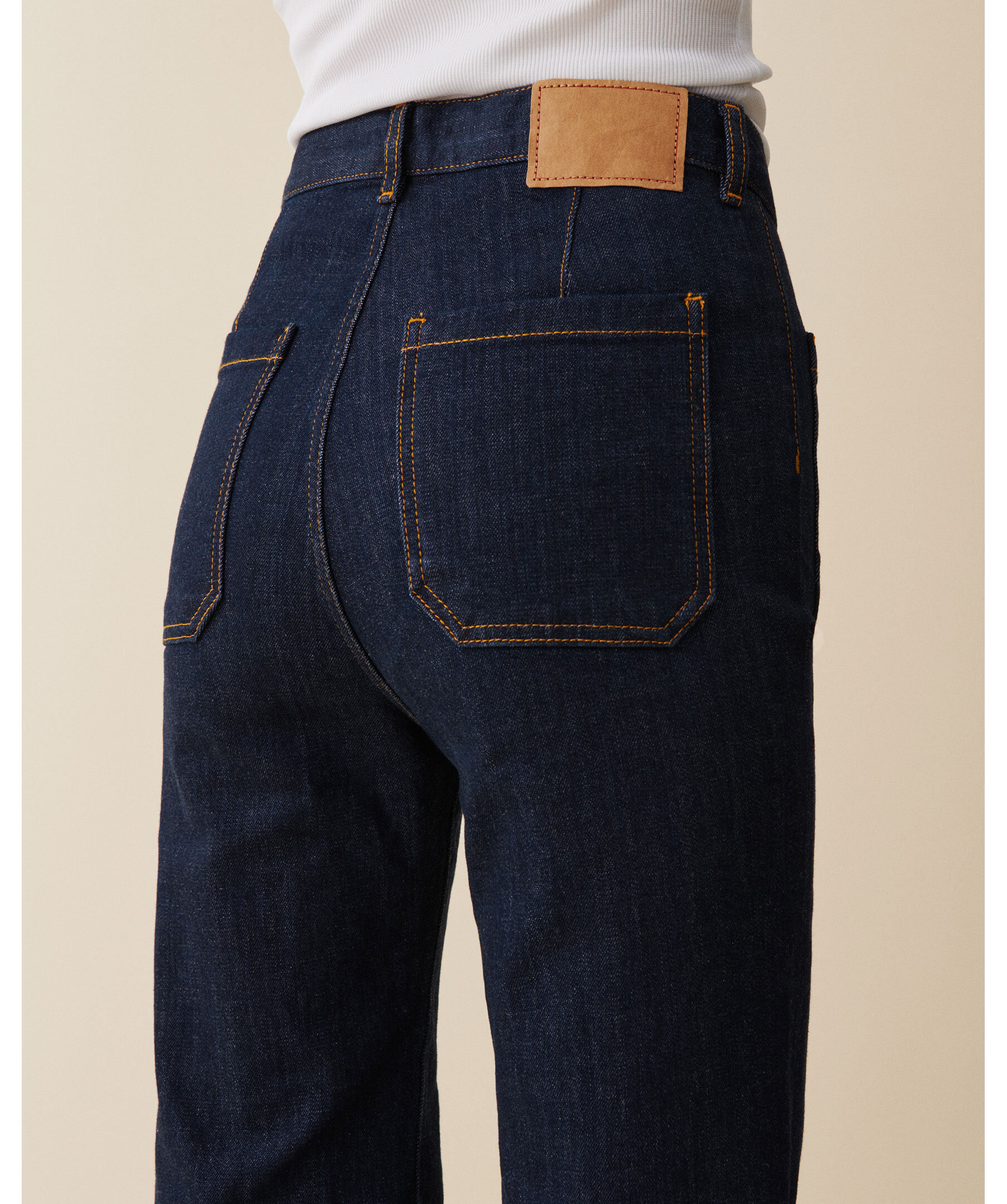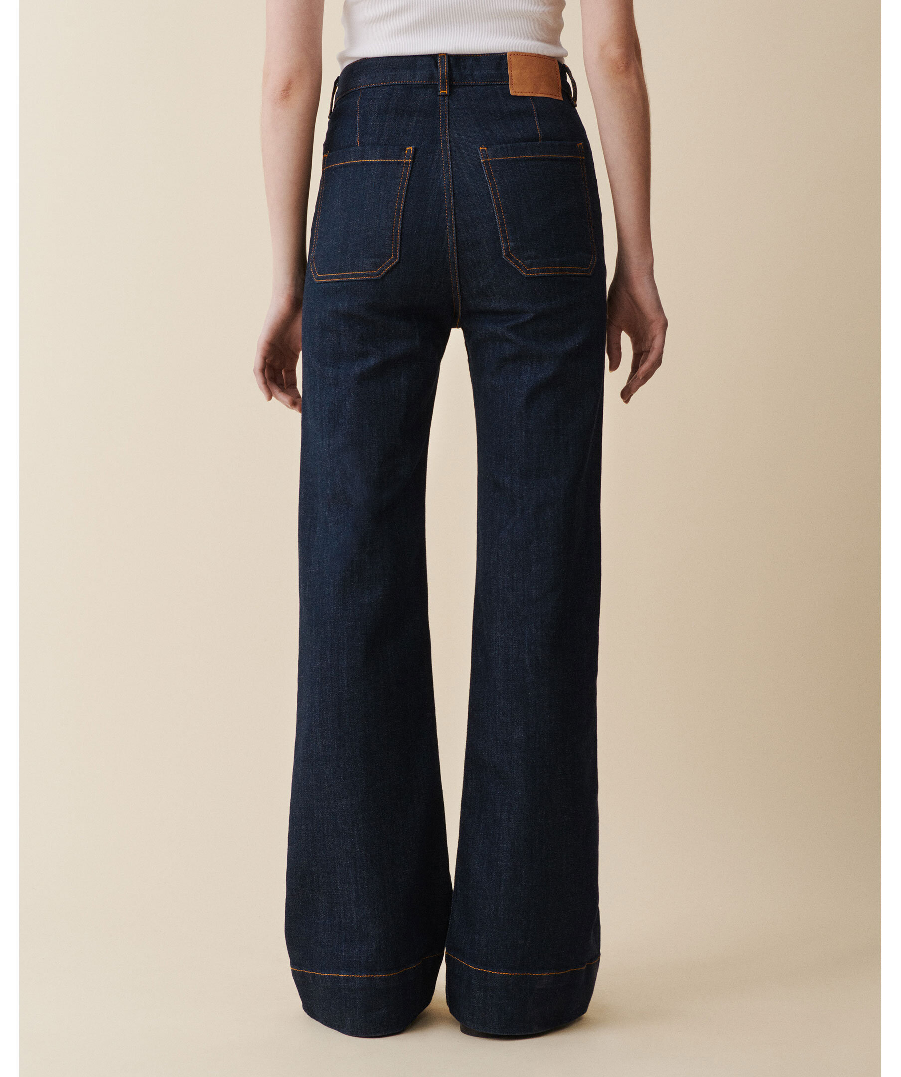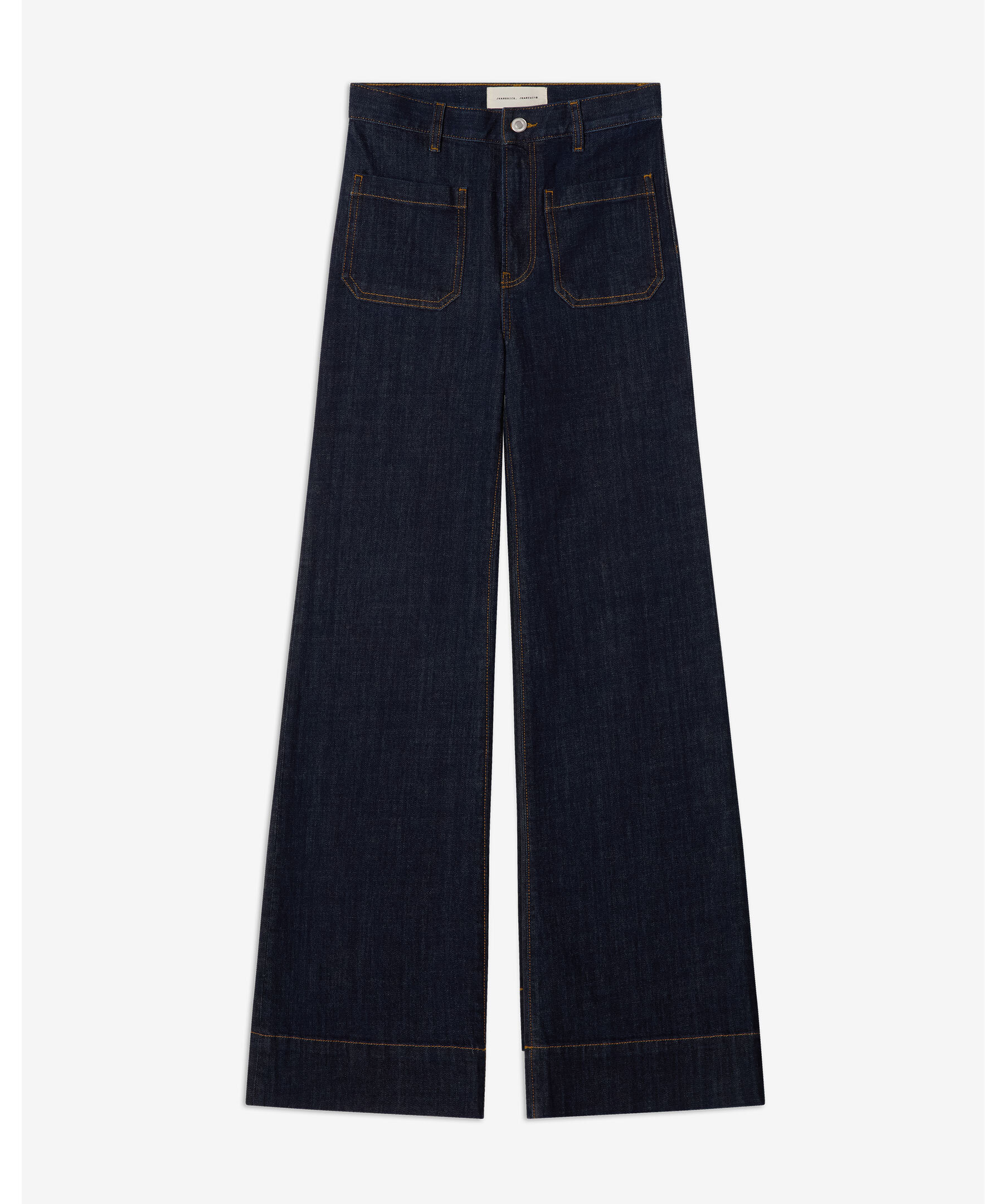 Jeans från Jeanerica med superhög midja, vida flare-ben och klassiska patch-fickor fram och bak. Jeansen har dragkedjegylf, lätt stretch och en retro look som passar perfekt till vardag och helg.