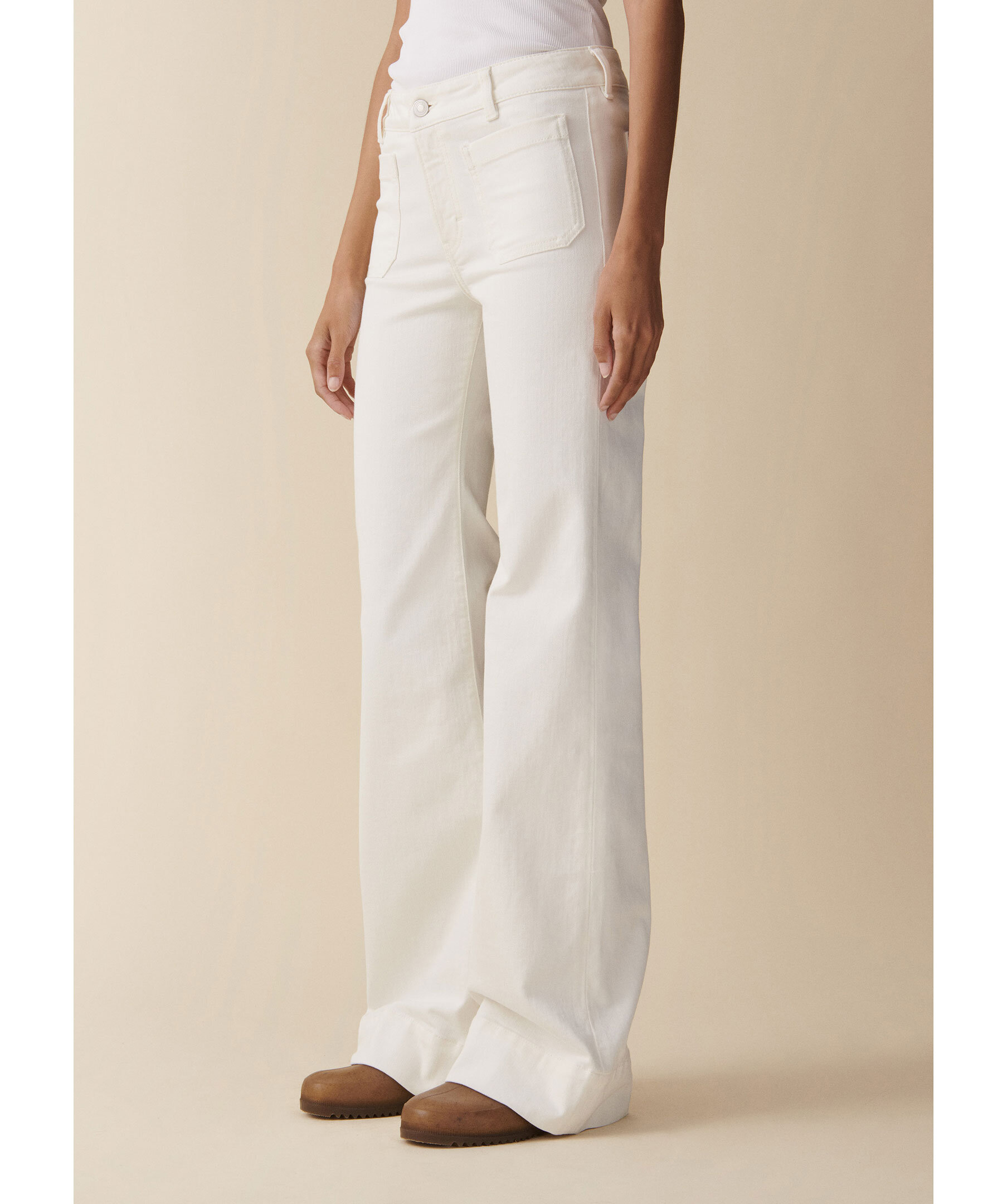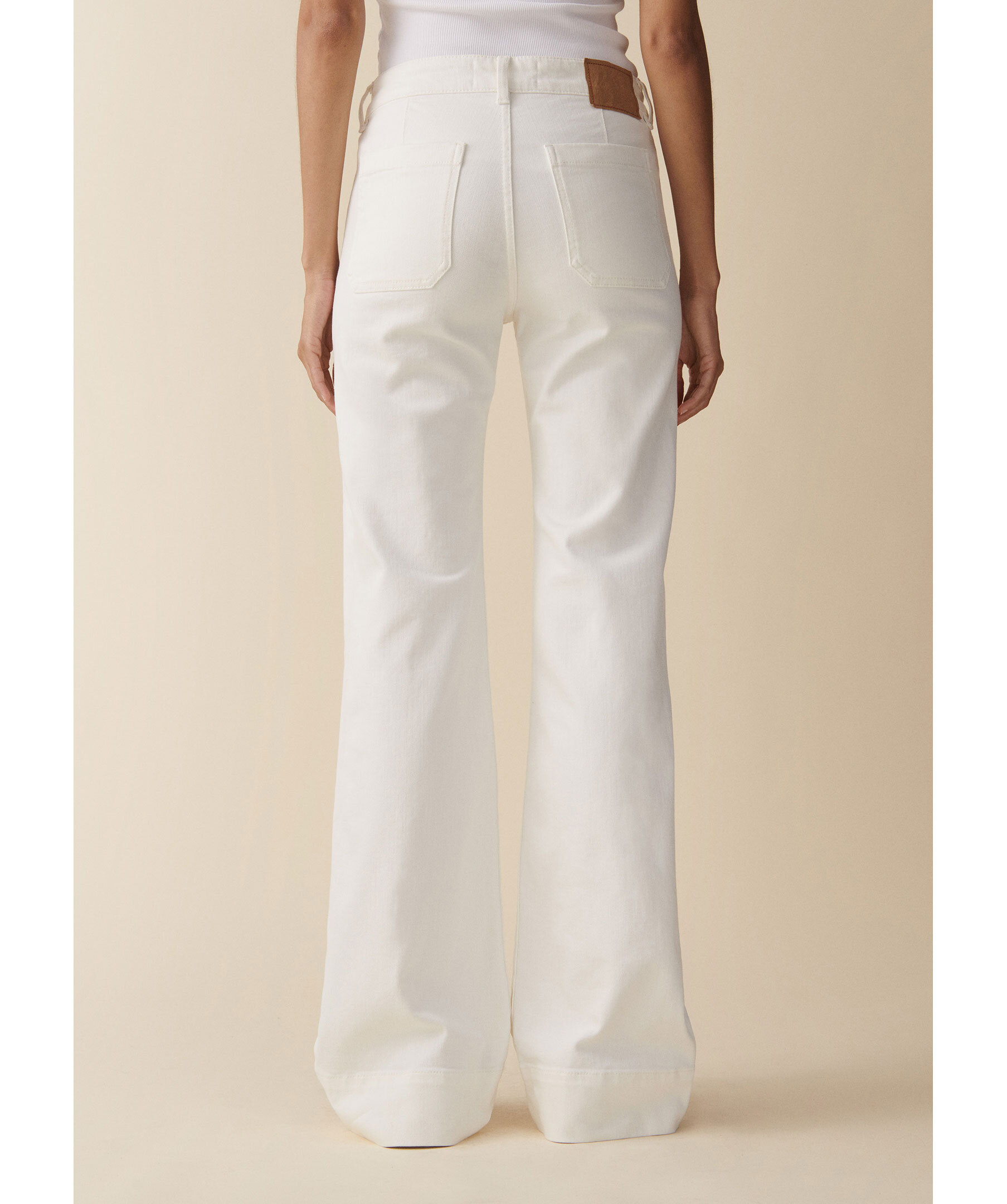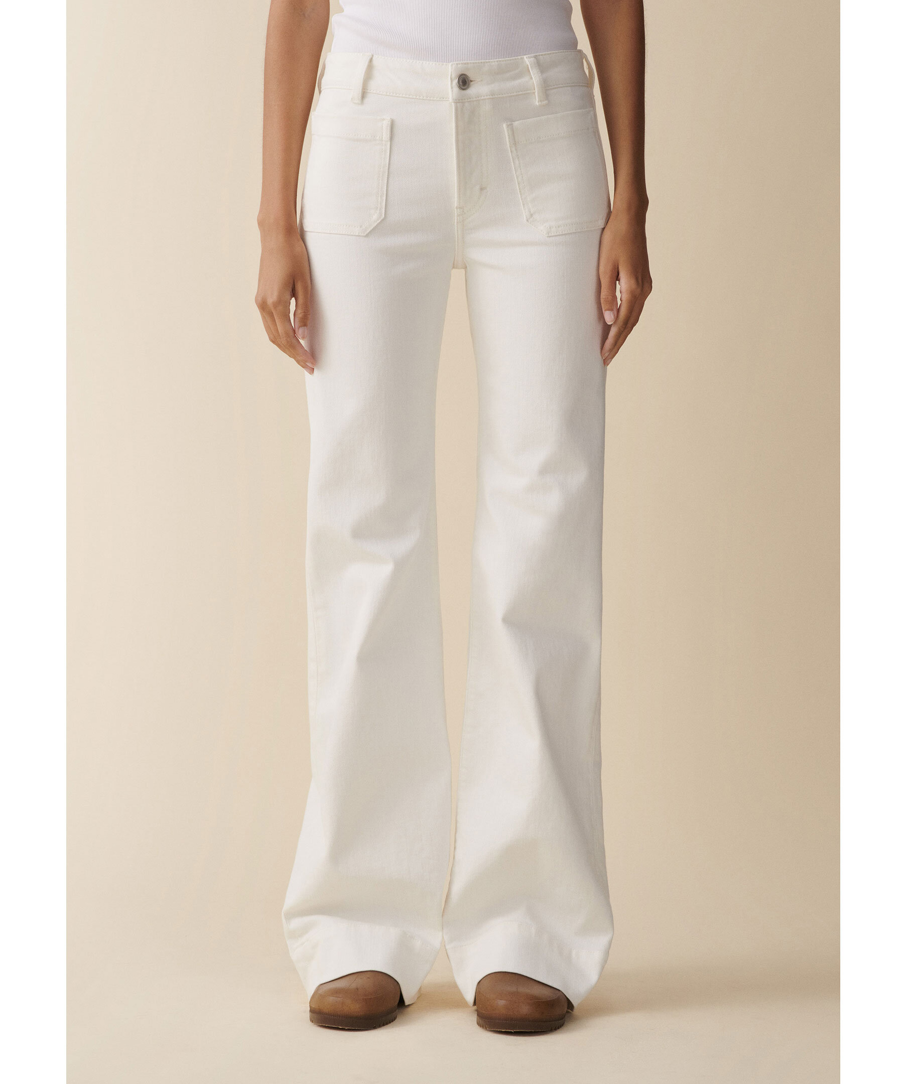 Vita lågmidjade jeans från Jeanerica med utsvängda ben. Jeansen har två påsydda framfickor, två bakfickor, bälteshällor och en patch på linningen. Tillverkade i en bomullsblandning.
