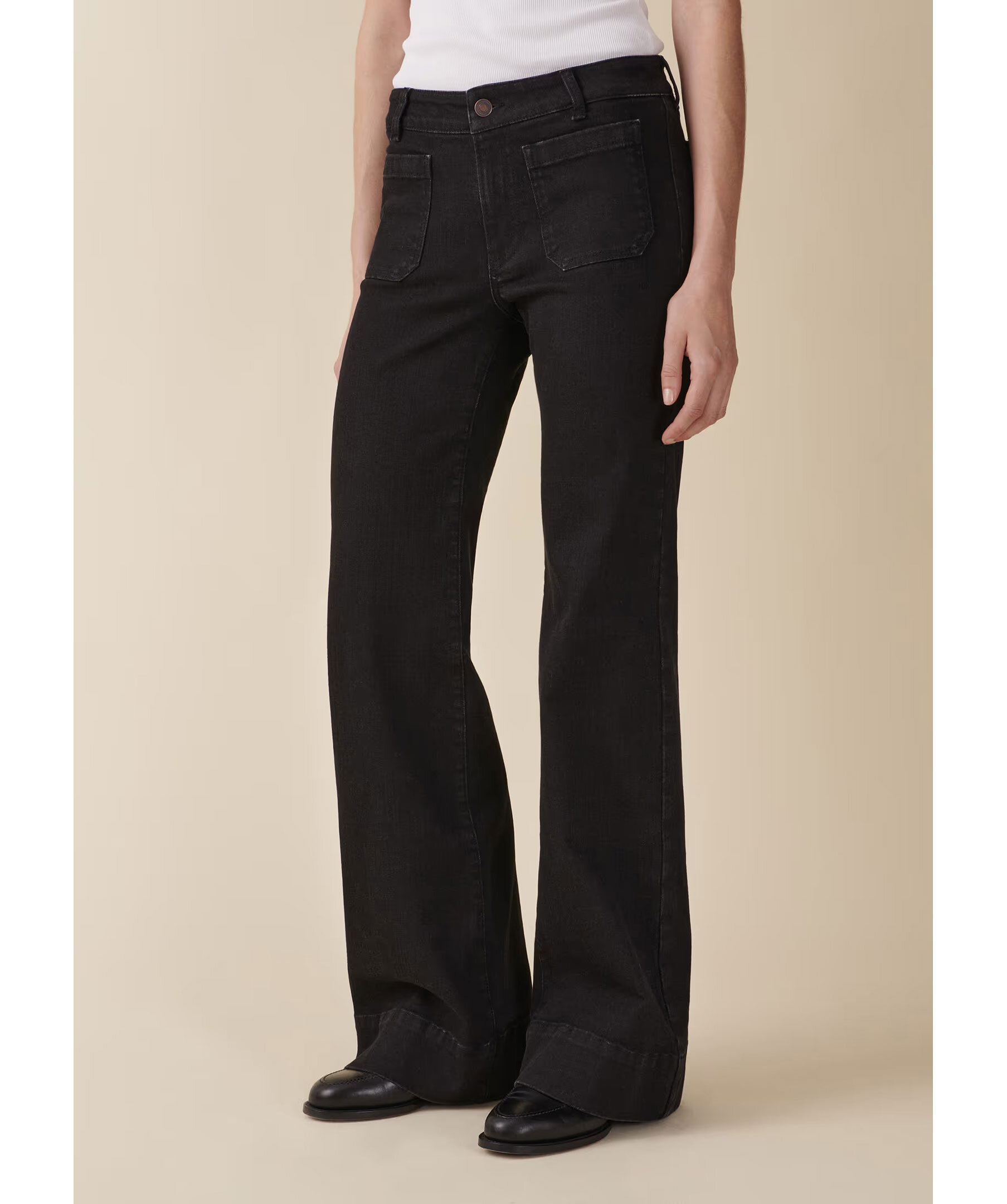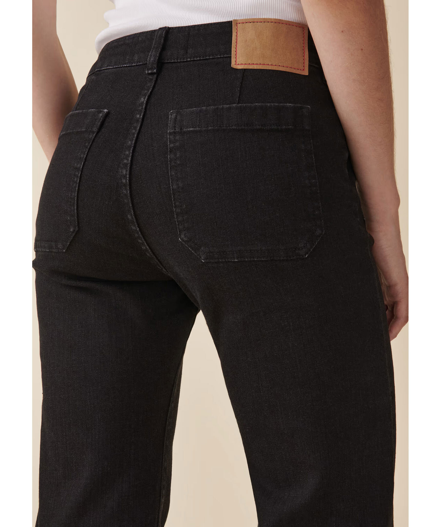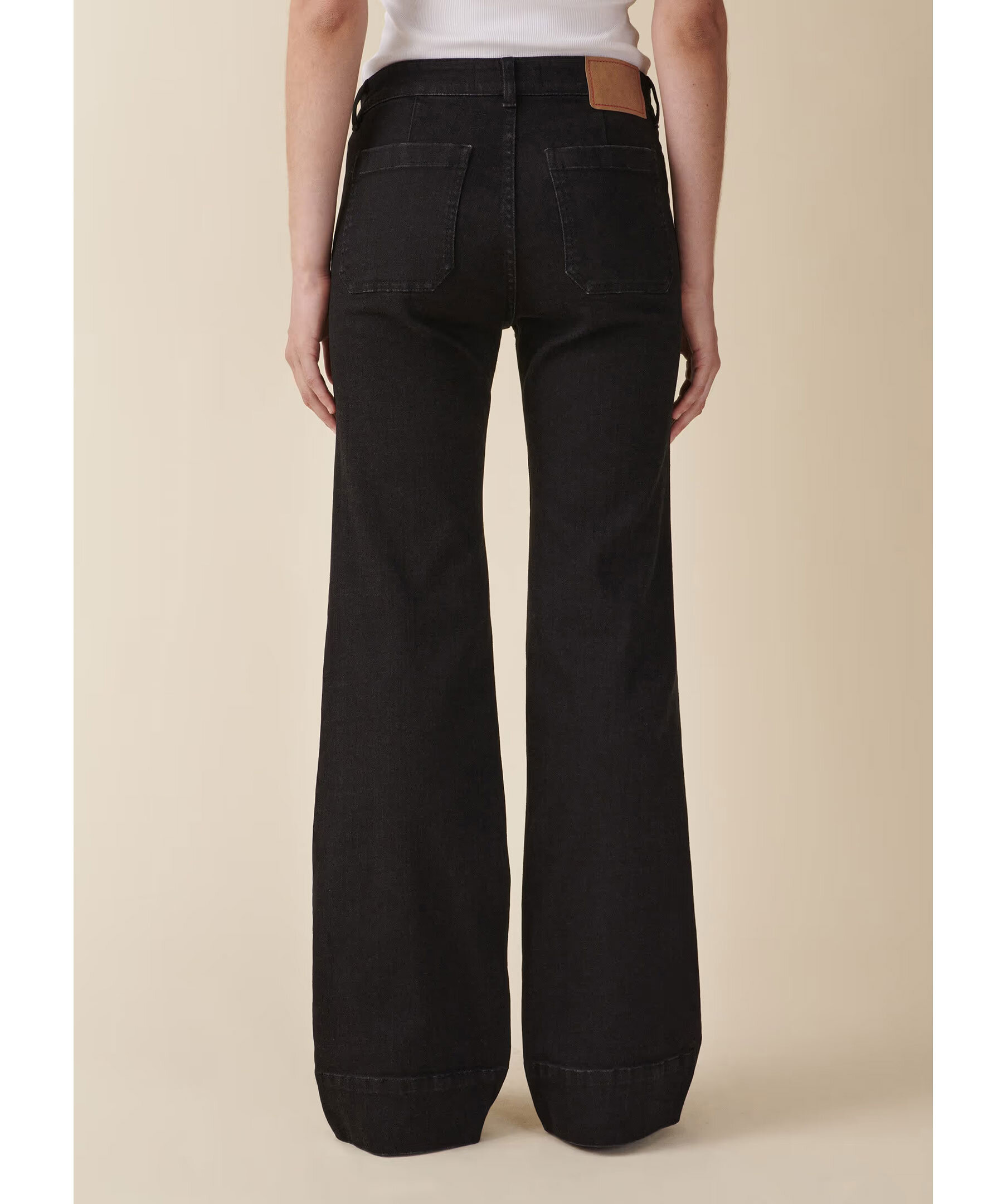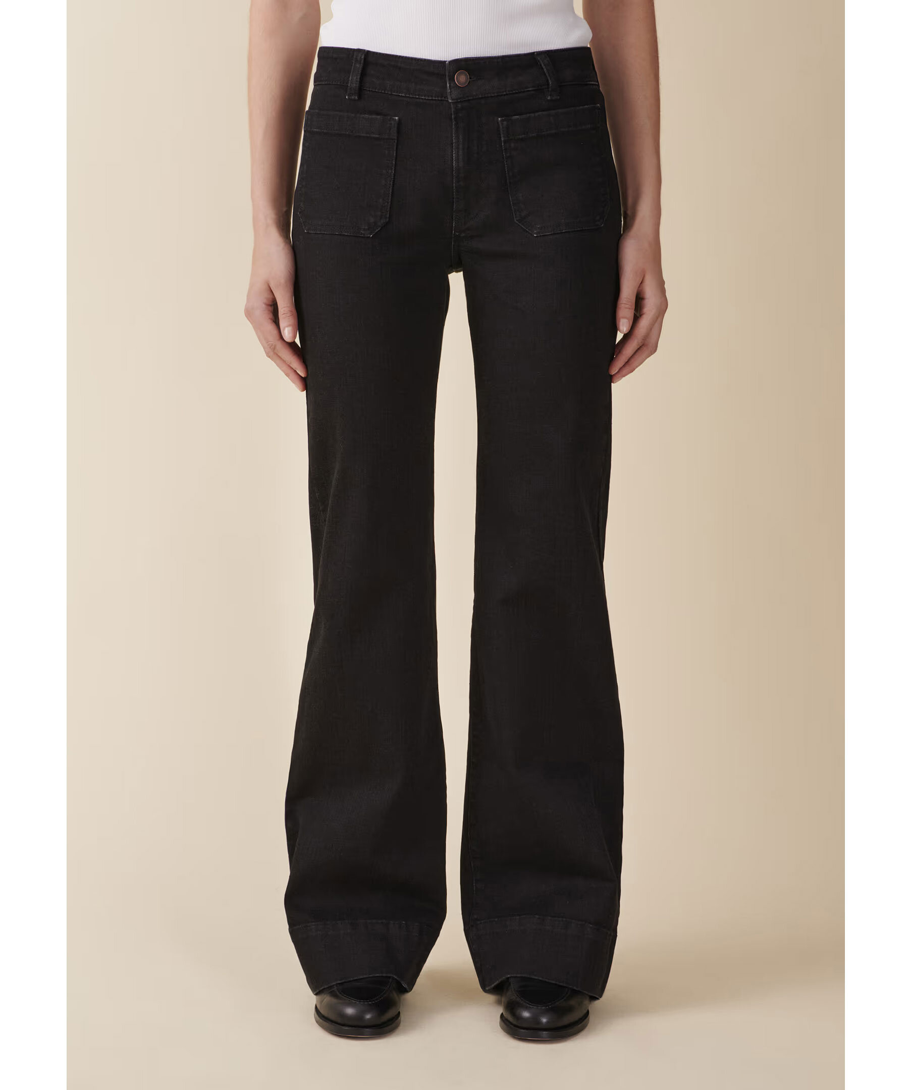 Svarta lågmidjade jeans från Jeanerica med utsvängda ben. Jeansen har två påsydda framfickor, två bakfickor, bälteshällor och en patch på linningen. Tillverkade i en bomullsblandning.
