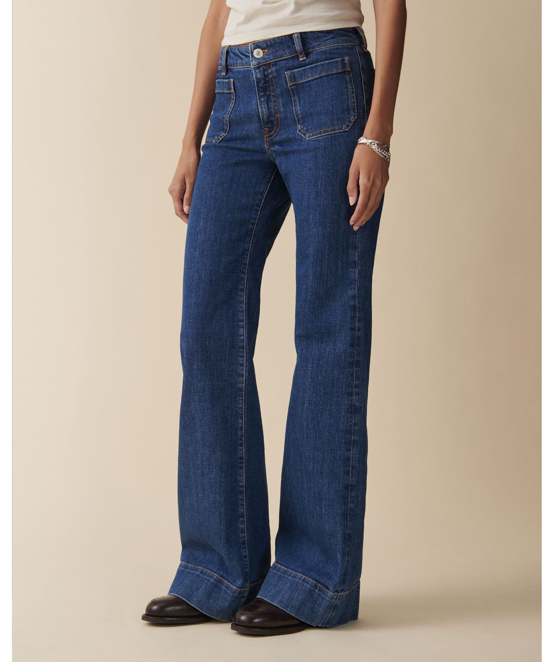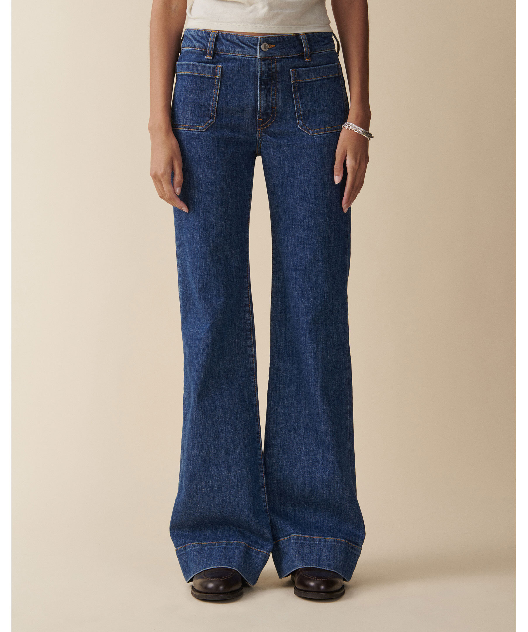 Retroinspirerade flare‑jeans St Monica Low från Jeanerica i klassisk Vintage 95‑blå wash. Jeans med låg midja, vida ben och karakteristiska påsydda fickor ger en tidlös 60‑tals‑silhuett som passar både vardag och helg.