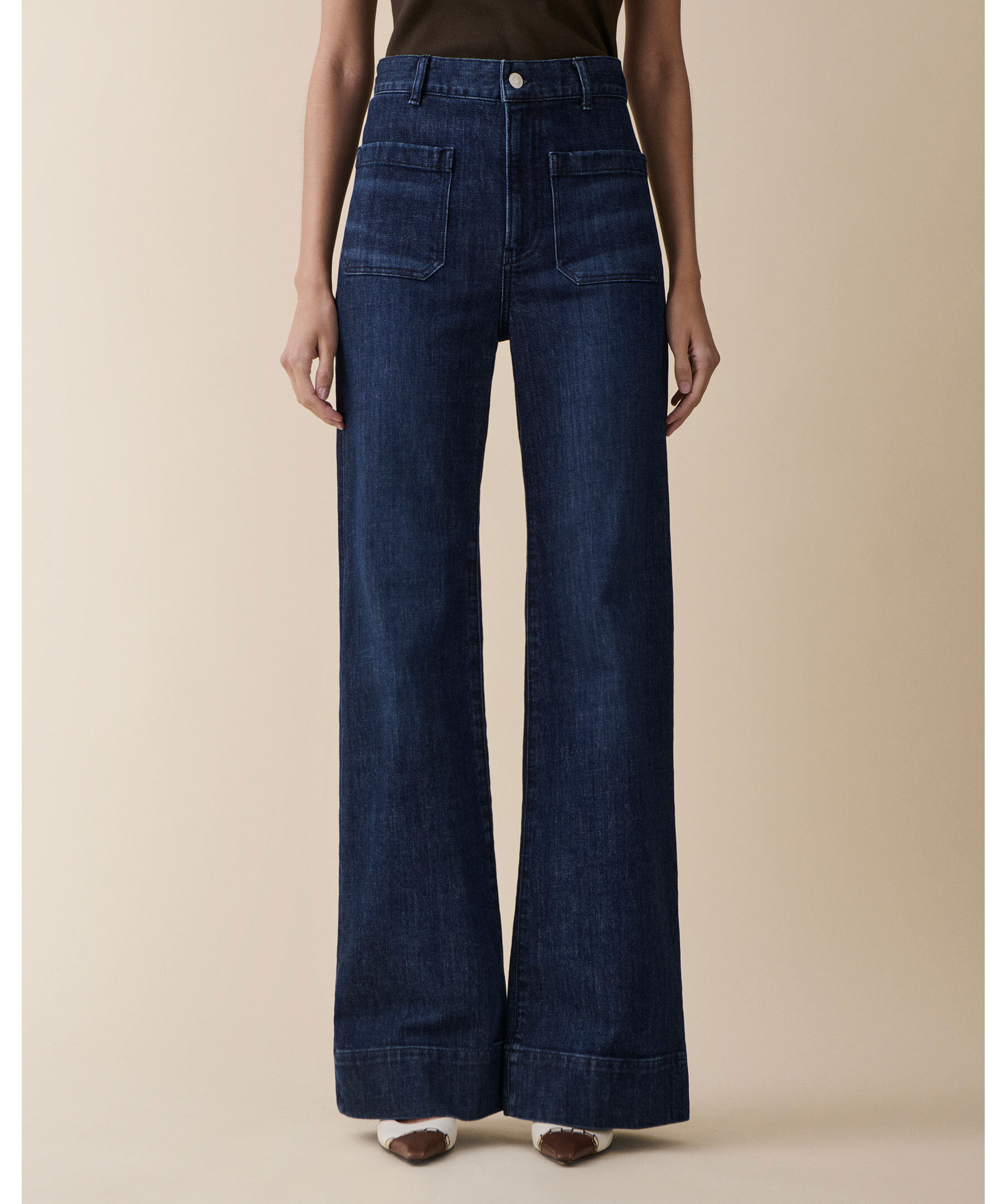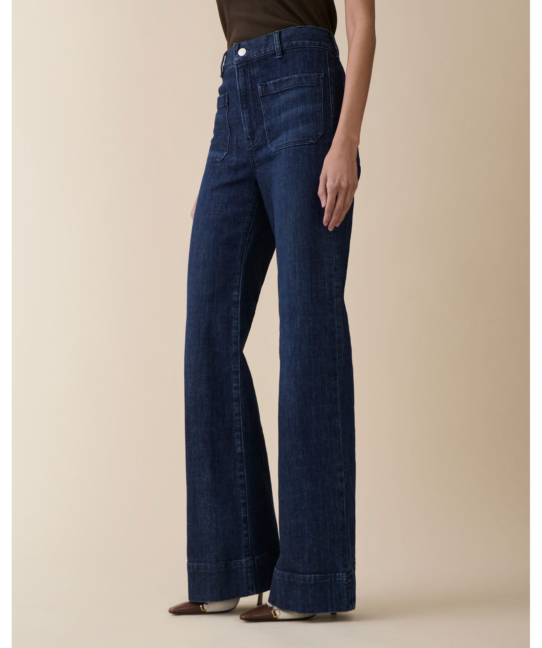 St Monica Midnight Vintage från Jeanerica är mörkblå bootcut-jeans med hög midja, vida ben och klassiska patch pockets. Jeansen har zip-gylf och en vintage-inspirerad silhuett som ger en elegant och casual look.