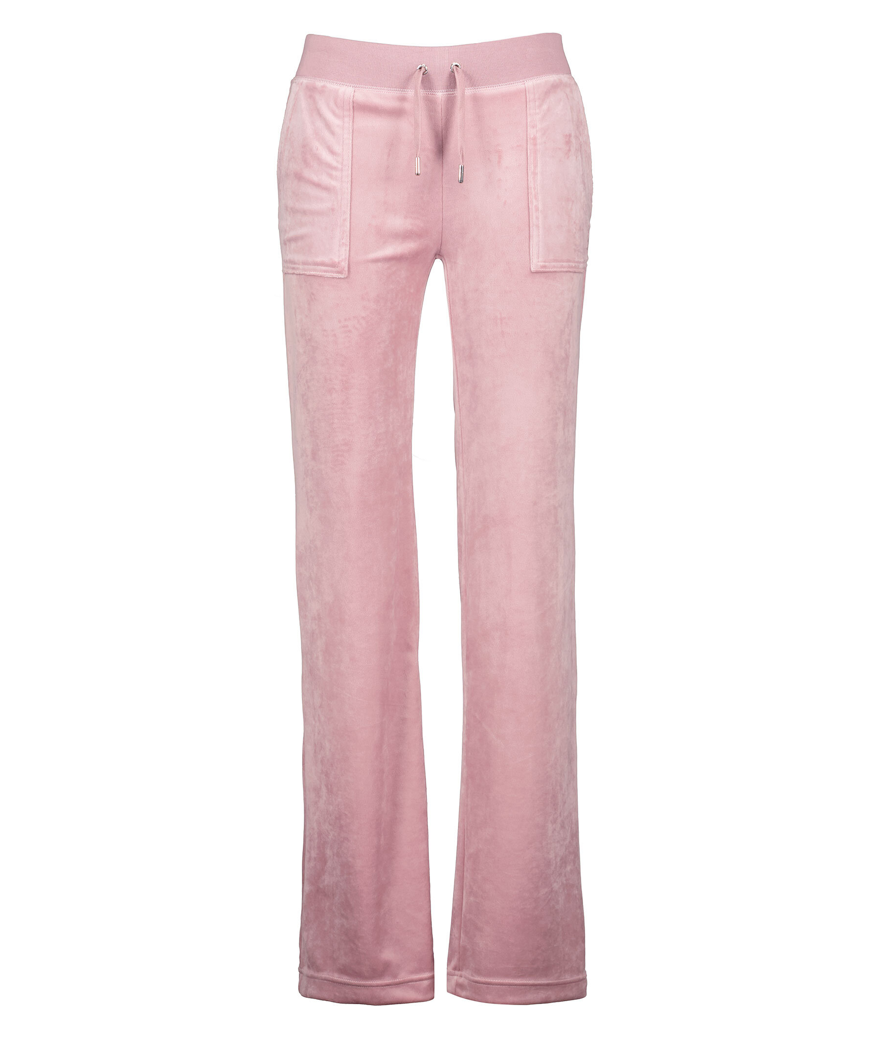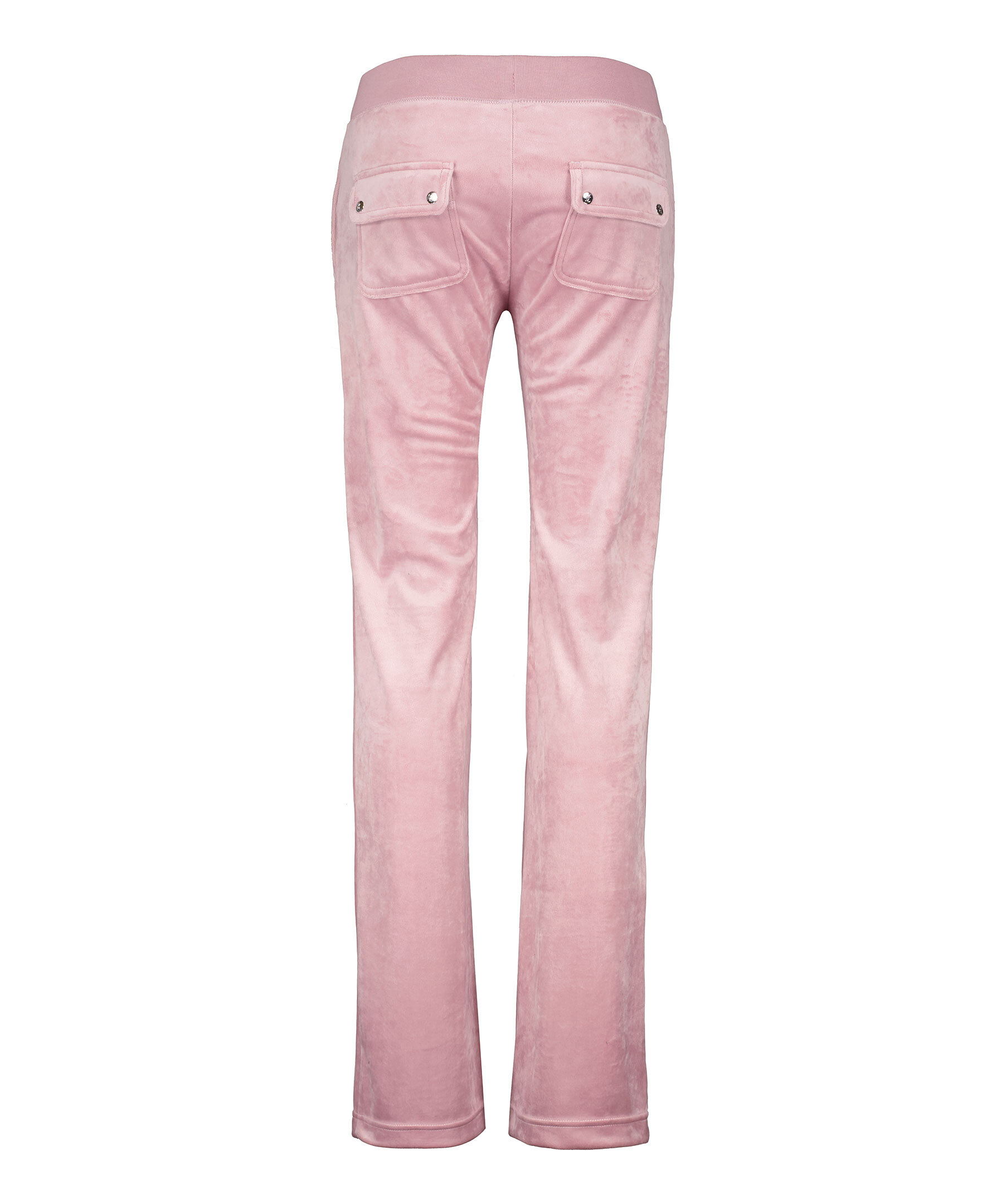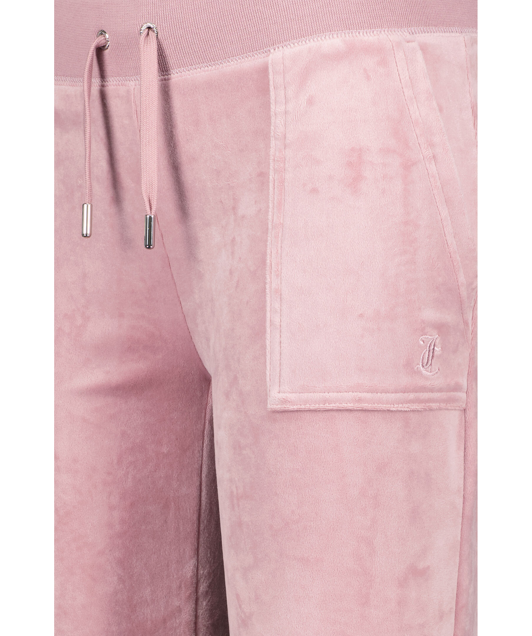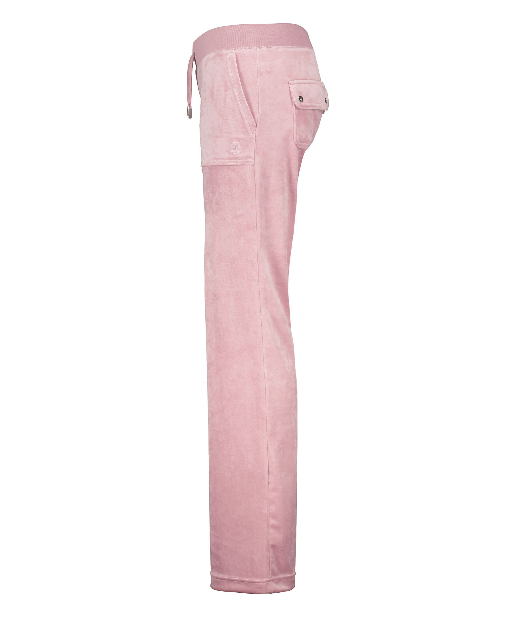 Byxor i velour i färgen Keepsake Lilac från Juicy Couture. Bred resårkant i midjan med snörning, fickor i sidorna och bakfickor med ficklock och tryckknappar med logotyp. Rak modell, broderad logga framtill på vänster ficka.