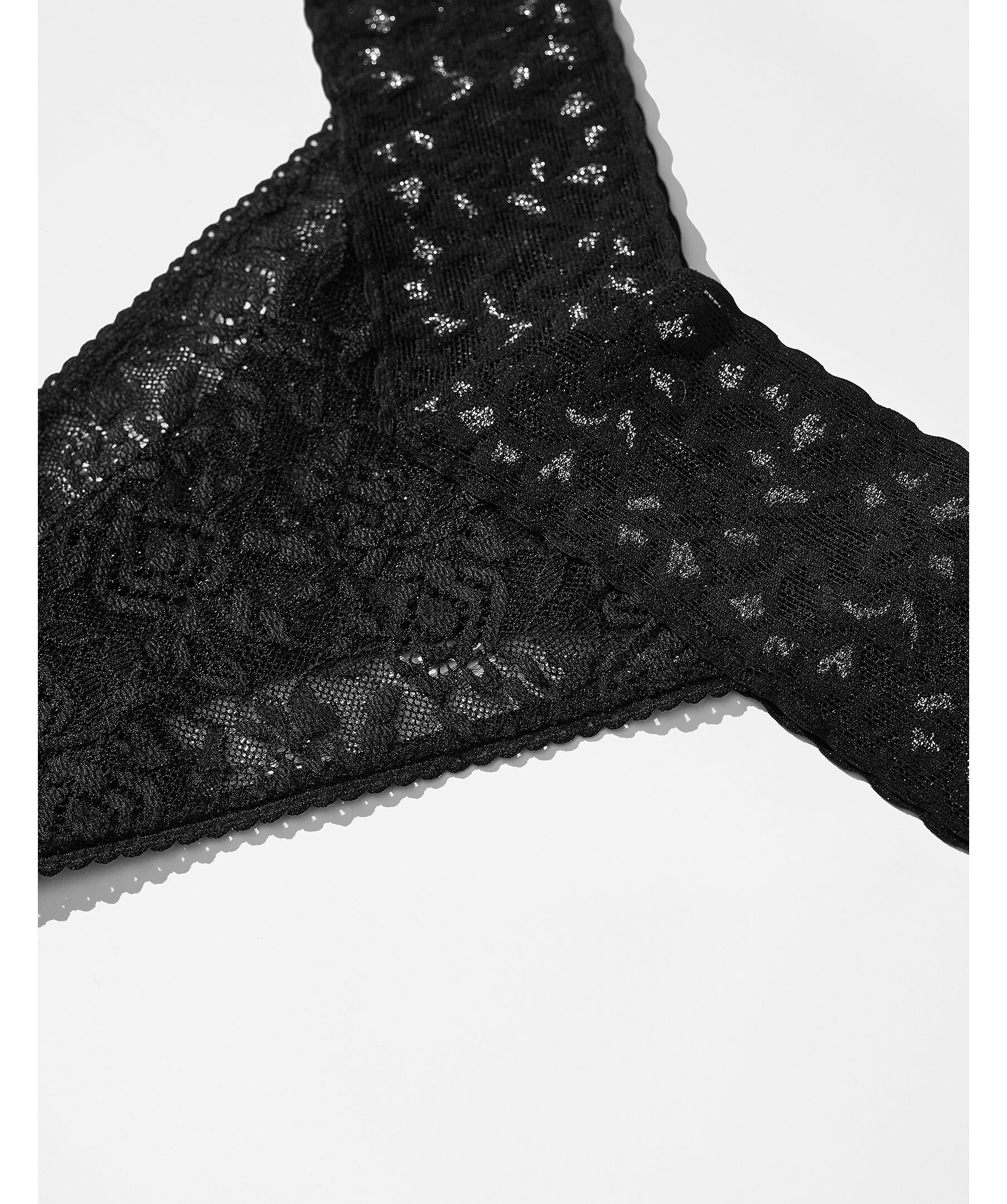 Svarta trosor i spets från LACE LABORATORY. Spetsen är tillverkad i polyamid och elastanblandning. Grenförstärkning i 100% Bomull.