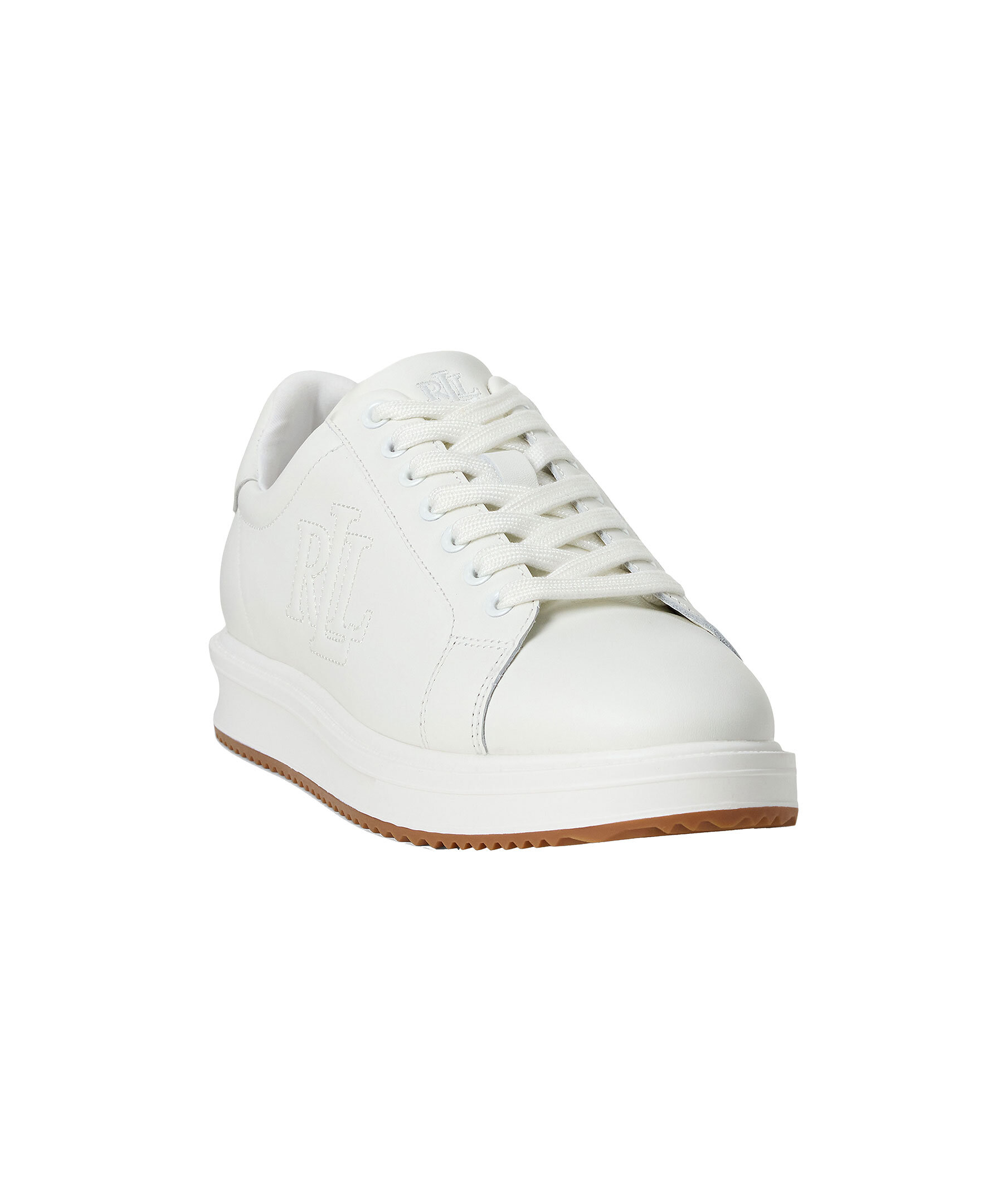 Vita sneakers i läder från Lauren Ralph Lauren. Utstickande logotyp i vitt på skons utsida. Brun sula.