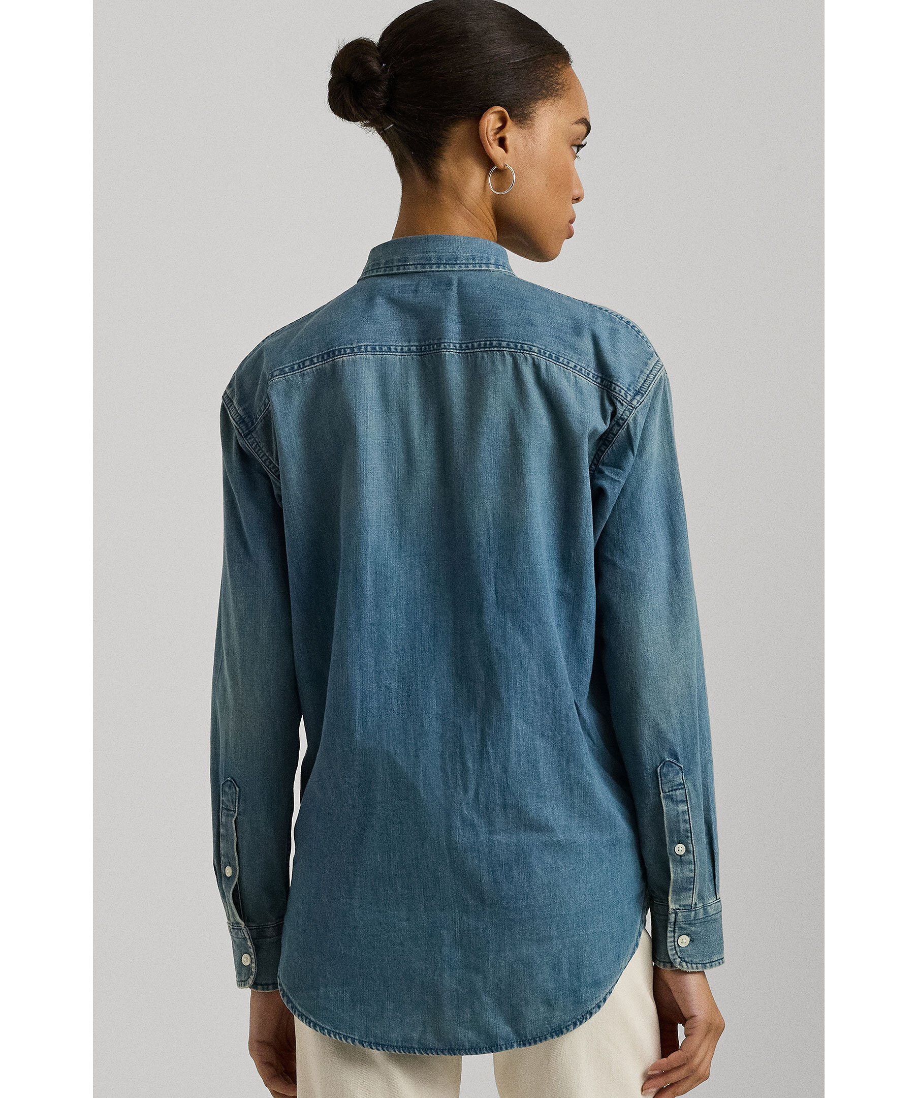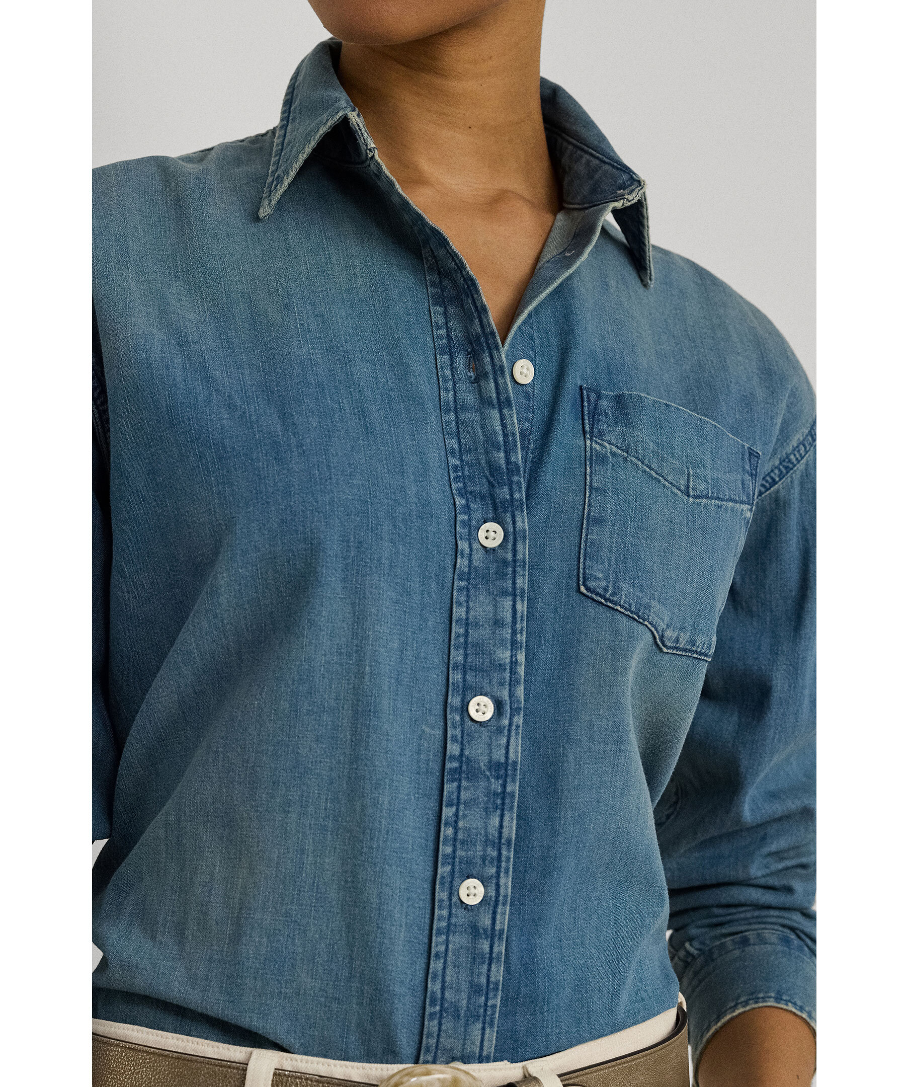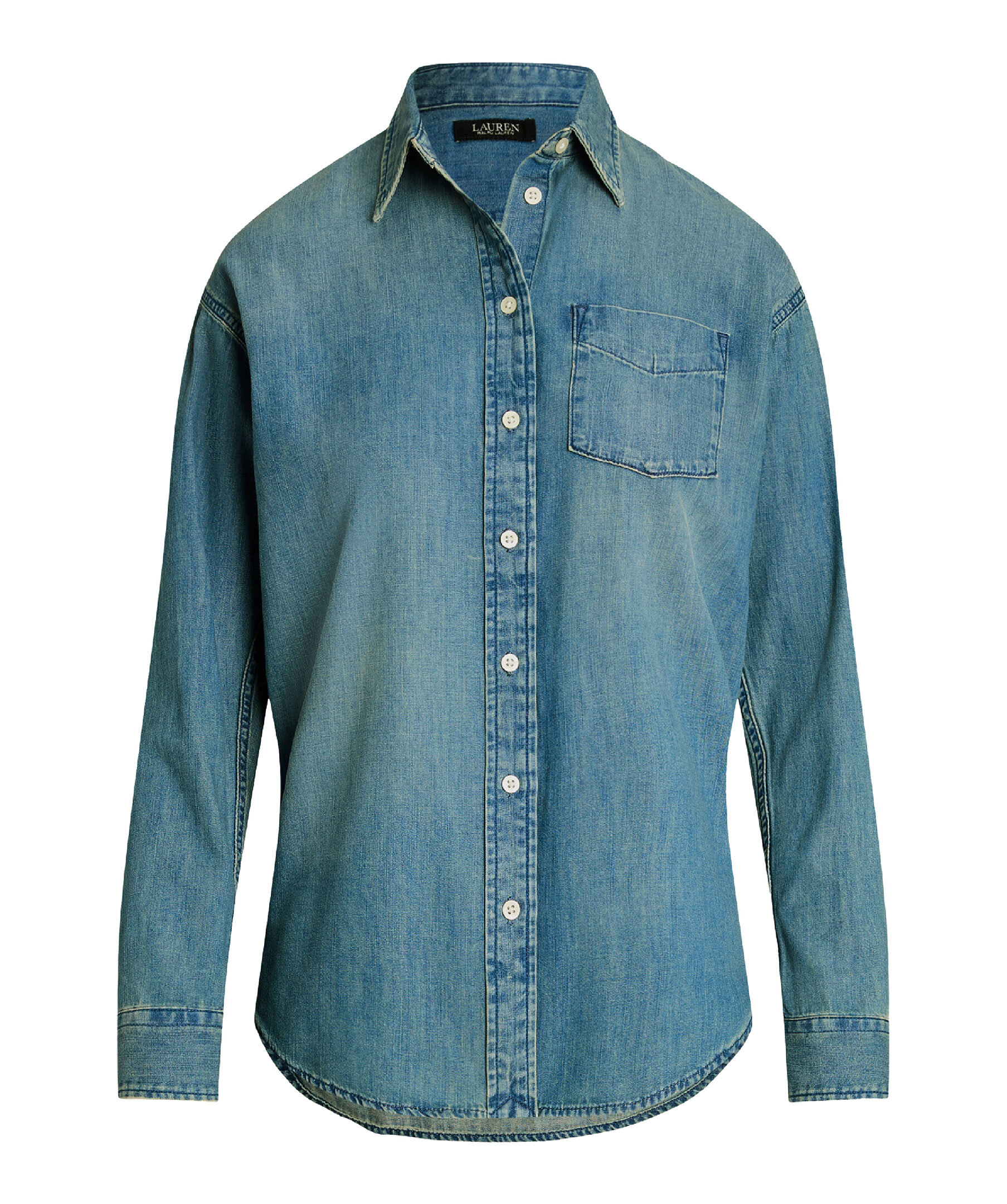 Blå denimskjorta från Lauren Ralph Lauren. Skjortan stängs med knappar framtill och har en bröstficka. Tillverkad i bomull.