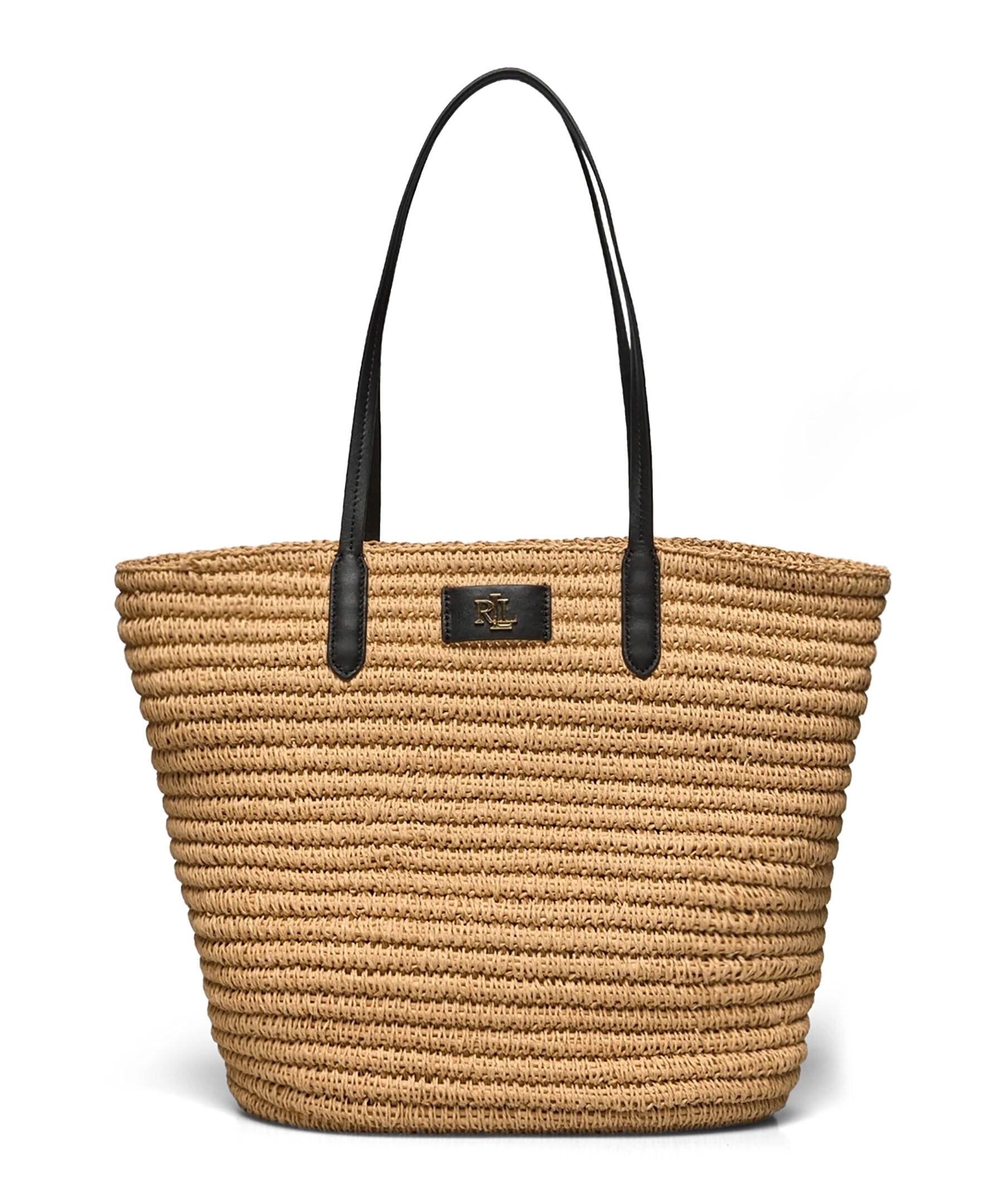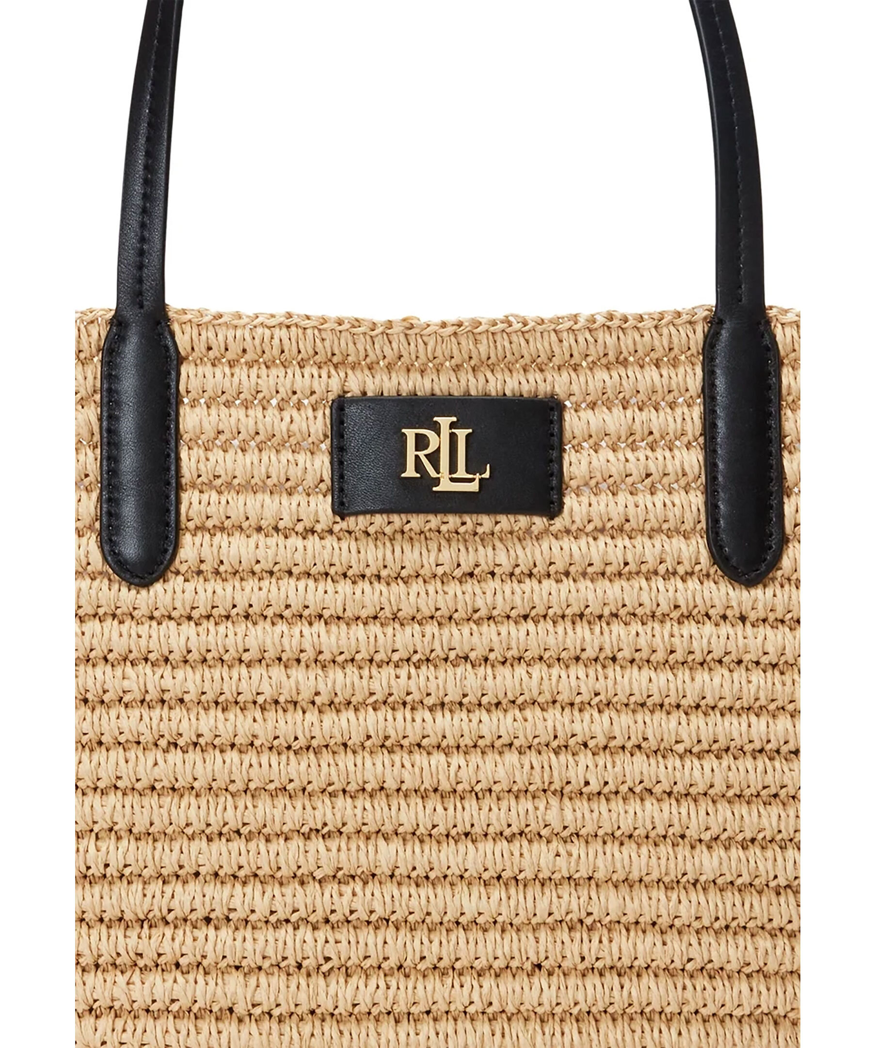 Stråväska i totemodell från Lauren Ralph Lauren. Patch i läder med guldfärgad logotyp i metall. Smala handtag i svart läder. Väskans mått: B 43 cm H 29 cm D 14 cm.